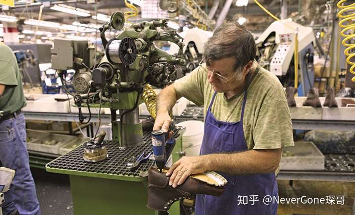 可能你要问那到底哪里用到了手工,答案是选皮、下料、锰鞋、绷楦、修整、钉子固定后跟等等这些过程,但其中有些也是需要机器的辅助才能完成的。
