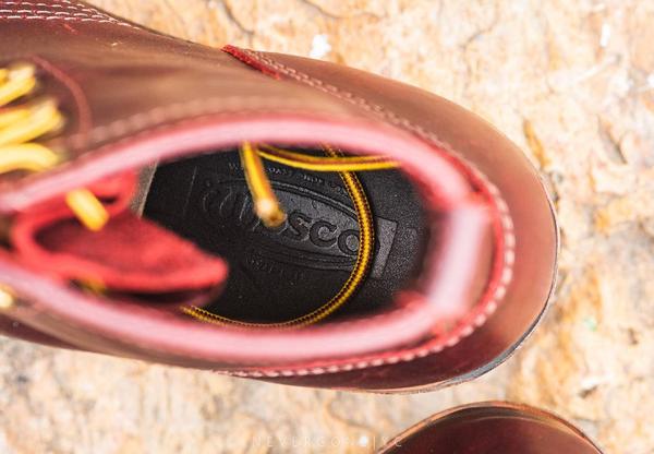 这双用的是透染的酒红色Domain油皮,可以看到鞋舌反面十分的红