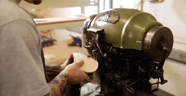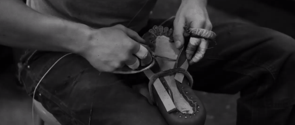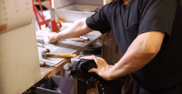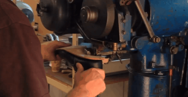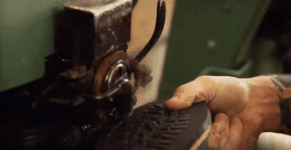 Wesco的机缝Stitchdown比较简单,这里用几个动图展示一下核心的几个步骤就很清楚了(视频截取自油管MTN Shop) 先是机器绷楦