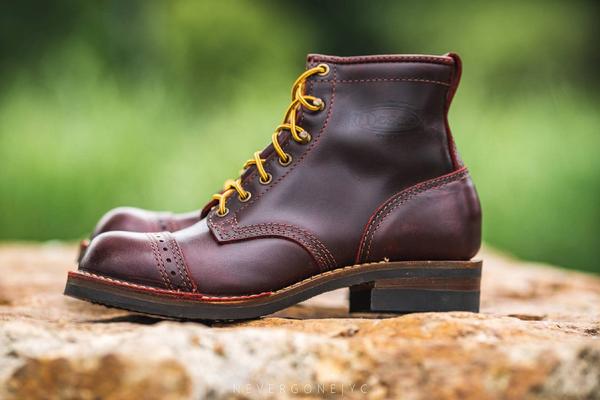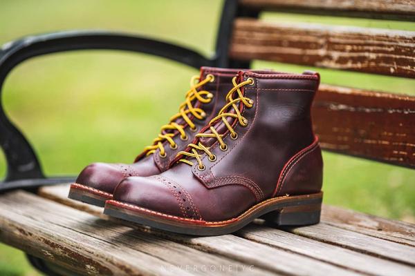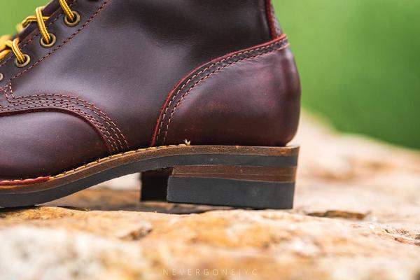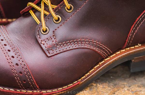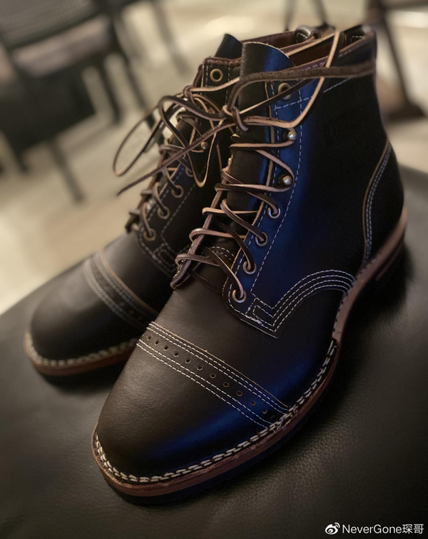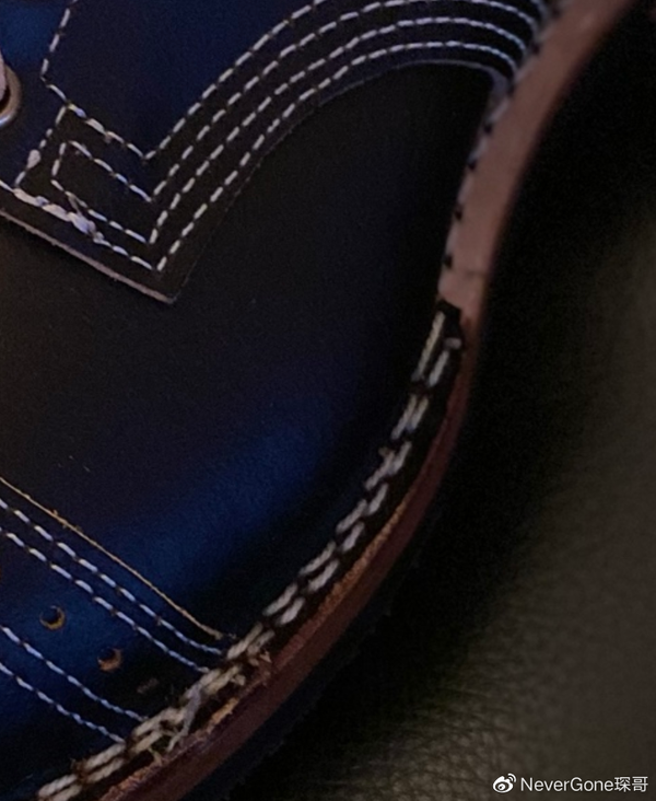 雕花鞋头,两道双线的Cap,这双的单外线对于Wesco来说算缝的可以了,比我在网上见到的那些好很多