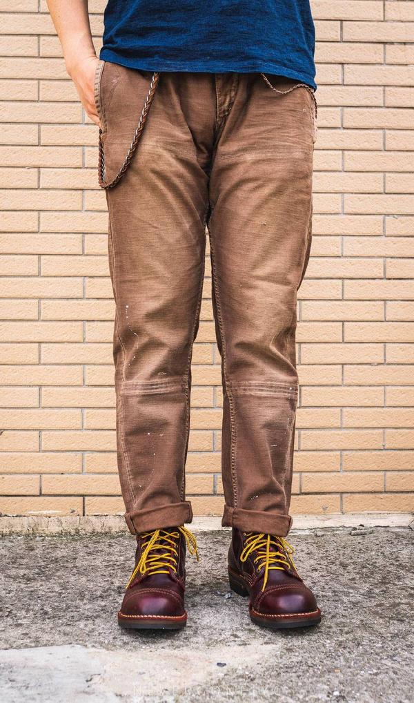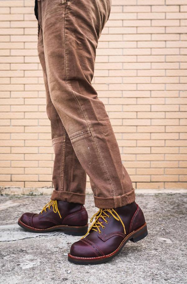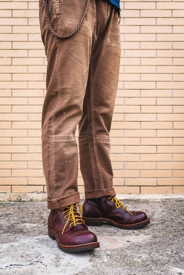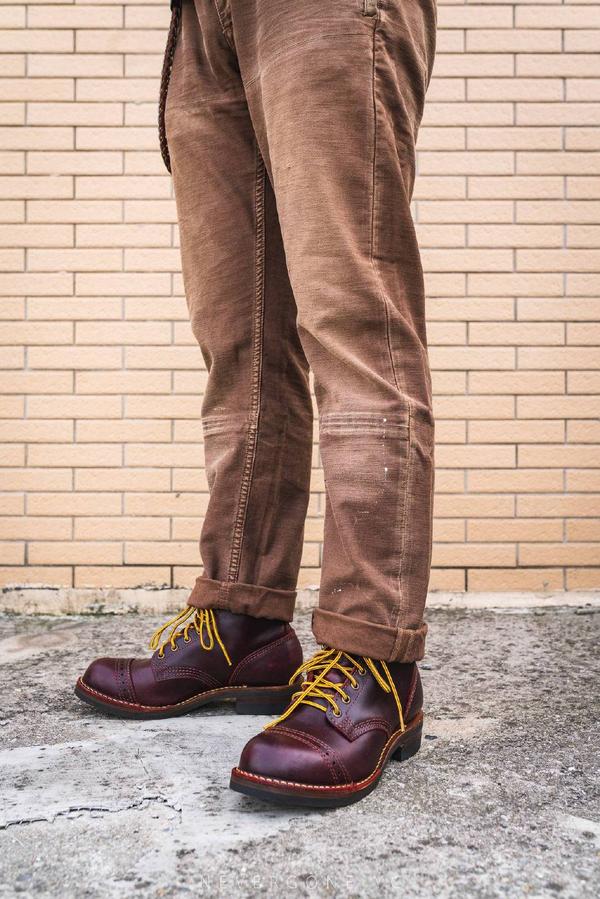 基情上脚,这双是8E,大小还挺合适的,前掌空间足够。穿上的感觉就是包裹感挺强,尤其是后跟的包裹感,比Viberg 2030更强。再就是虽然Wesco没有小白那样明显的足弓支撑,但在足弓部位还是有明显凸起的,我是正常足弓非扁平足,穿上能感到明显的支撑。 裤子是之前发过的Prps工装裤