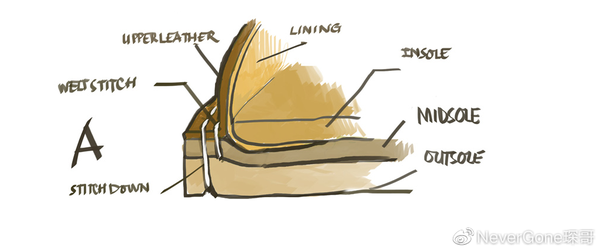 Wesco的stitchdown和Viberg一样,还是这张熟悉的结构图: