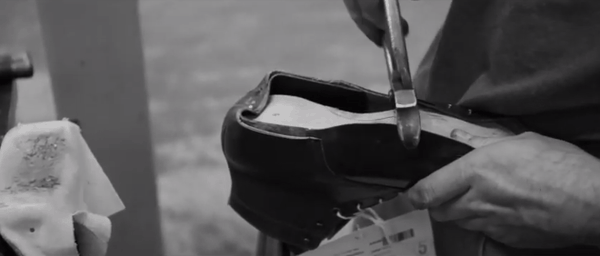 缝完之后把鞋面外翻,再把半圈沿条折过来,装上底,最后机缝外线,由此形成了小白标志性的外观(值得一提的是,和小白颇有渊源的Nick’s Boots也是一样的做法,Nick’s的命名就很简单粗暴了,直接叫hand welting手缝沿条。这种做法还可以叫Norwegian welt挪威缝沿条、rolled welt卷折沿条)
