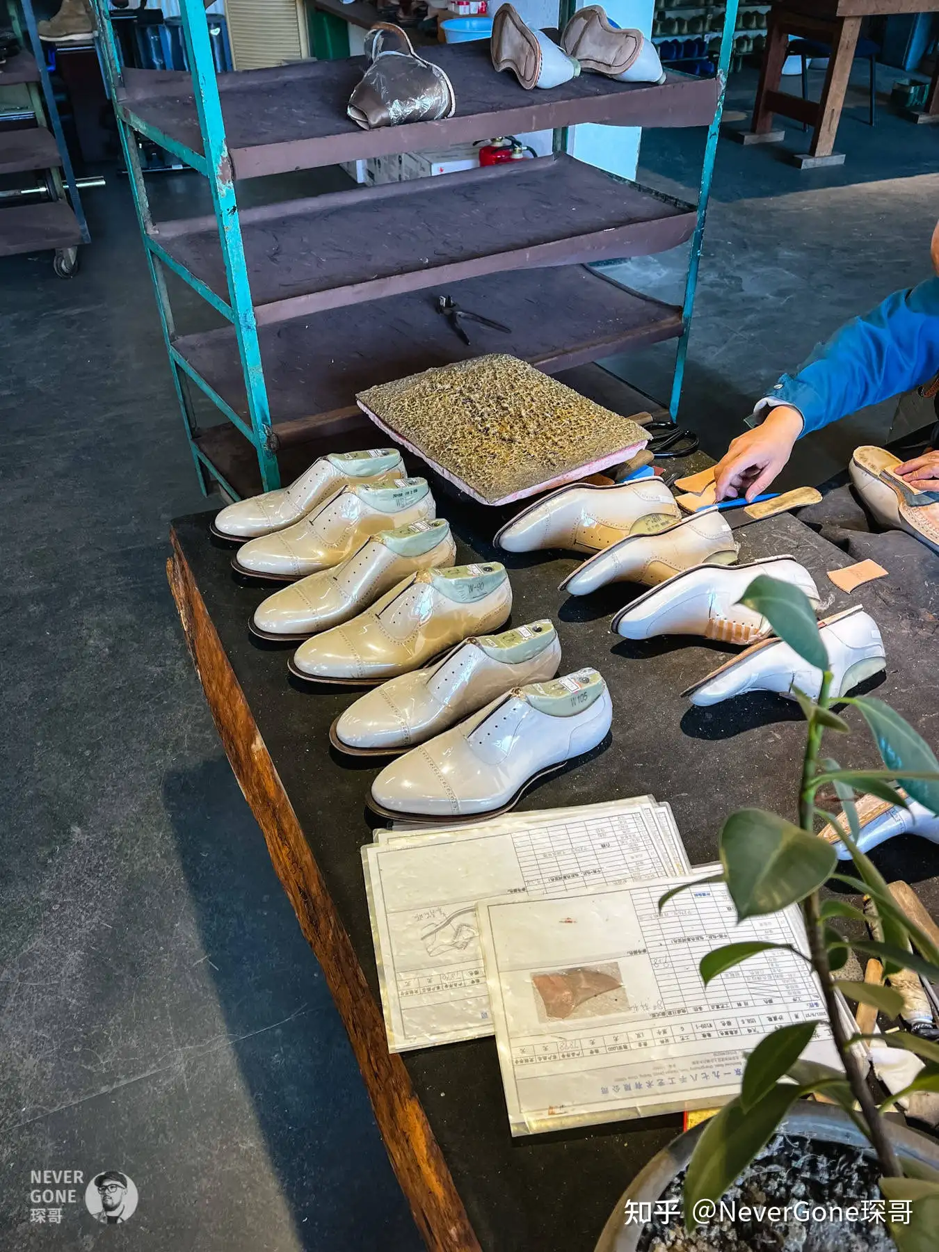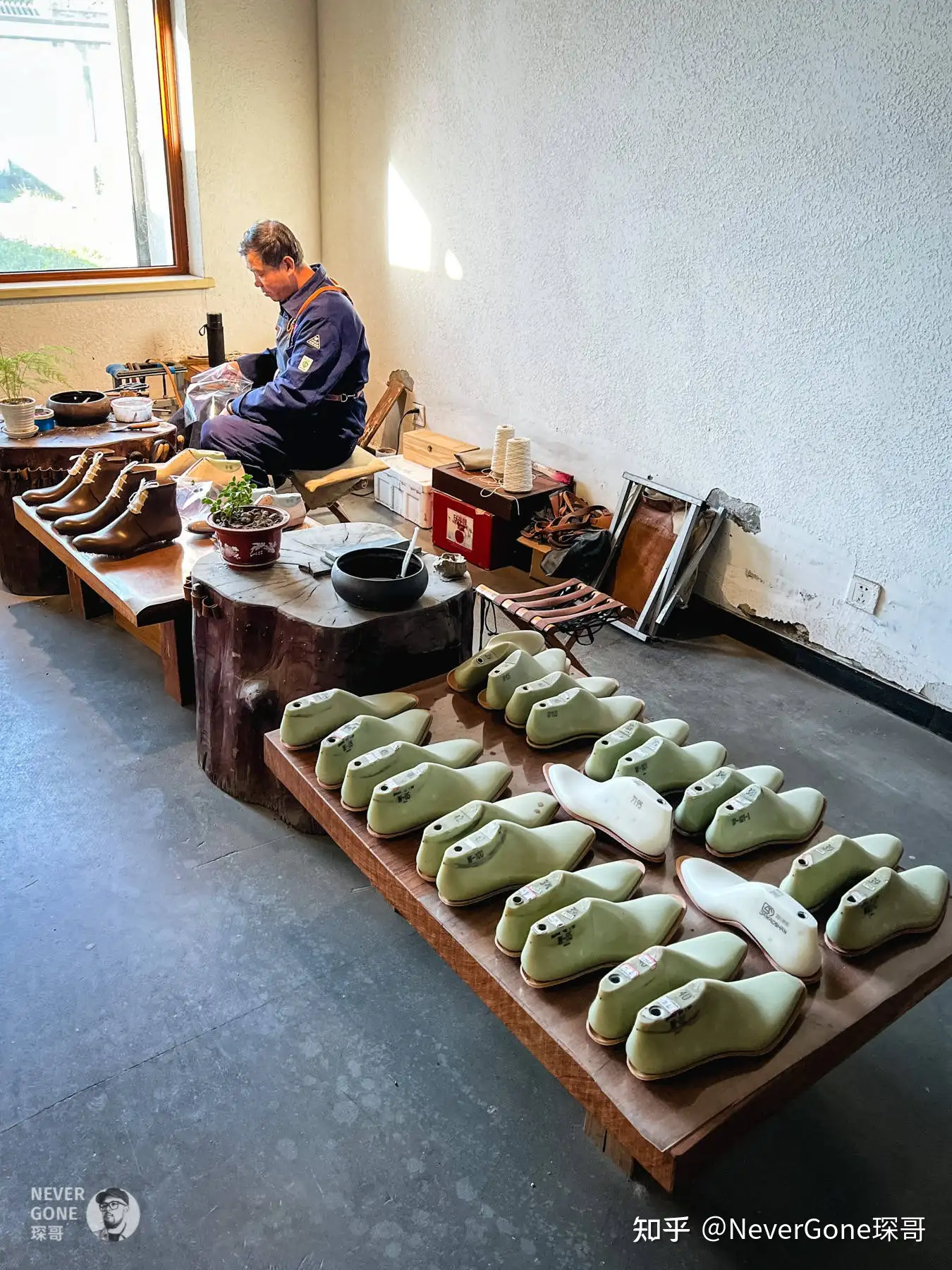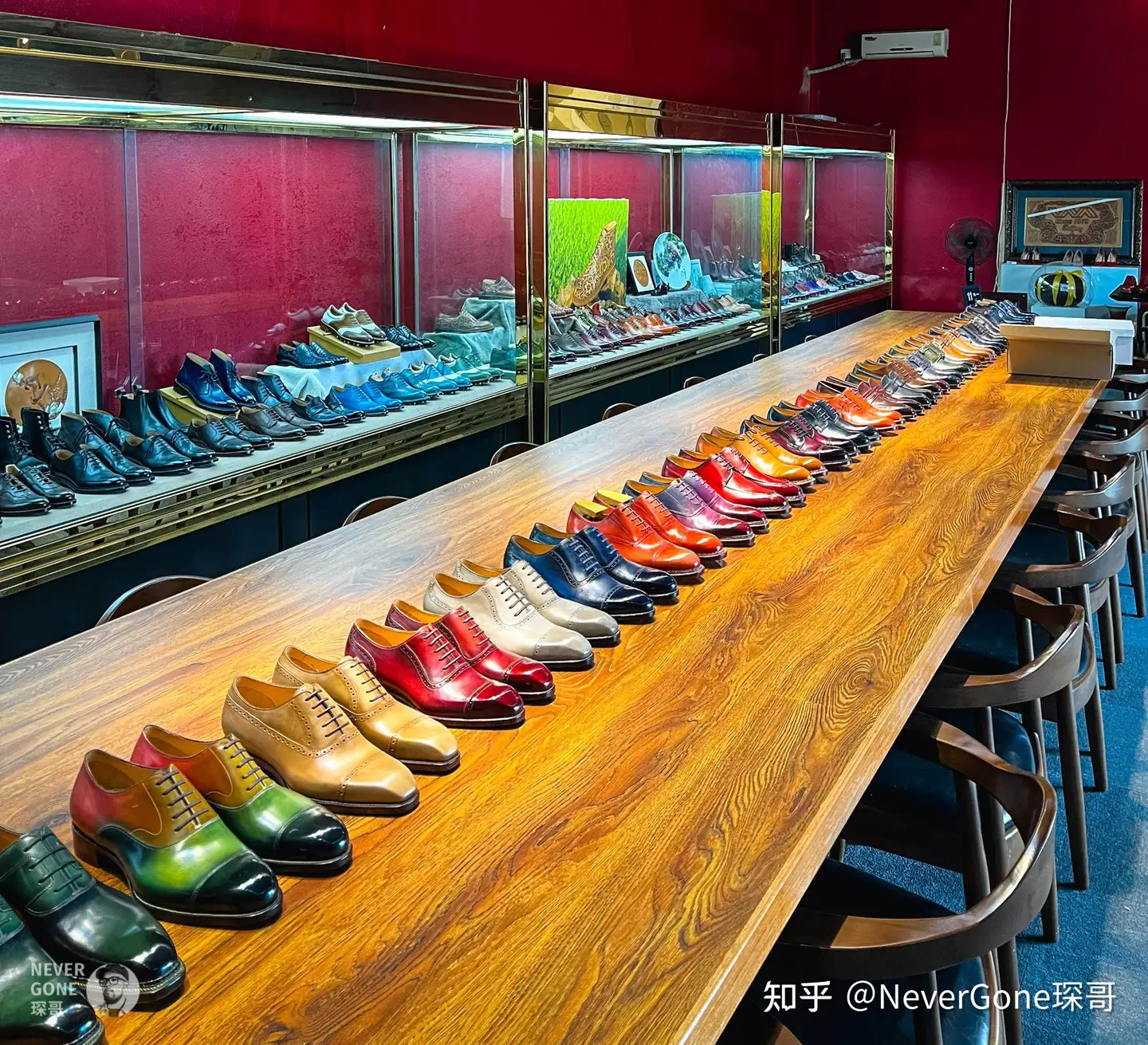 以上就是非常简略的展示了一双鞋的制作流程,实际上,像1978这种手工程度非常高的鞋,做一双是相当耗时的,再加上1978很喜欢用挪威缝,就更耗时了。他们有个陈列厅,里面摆放着各种鞋,很壮观