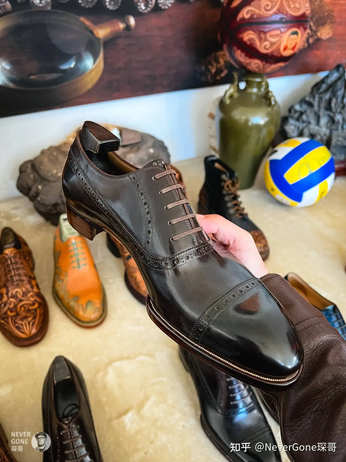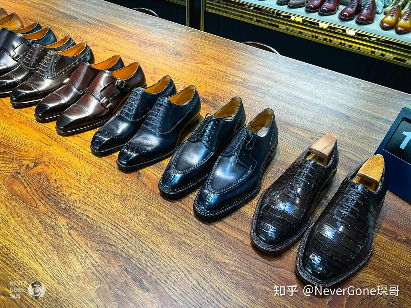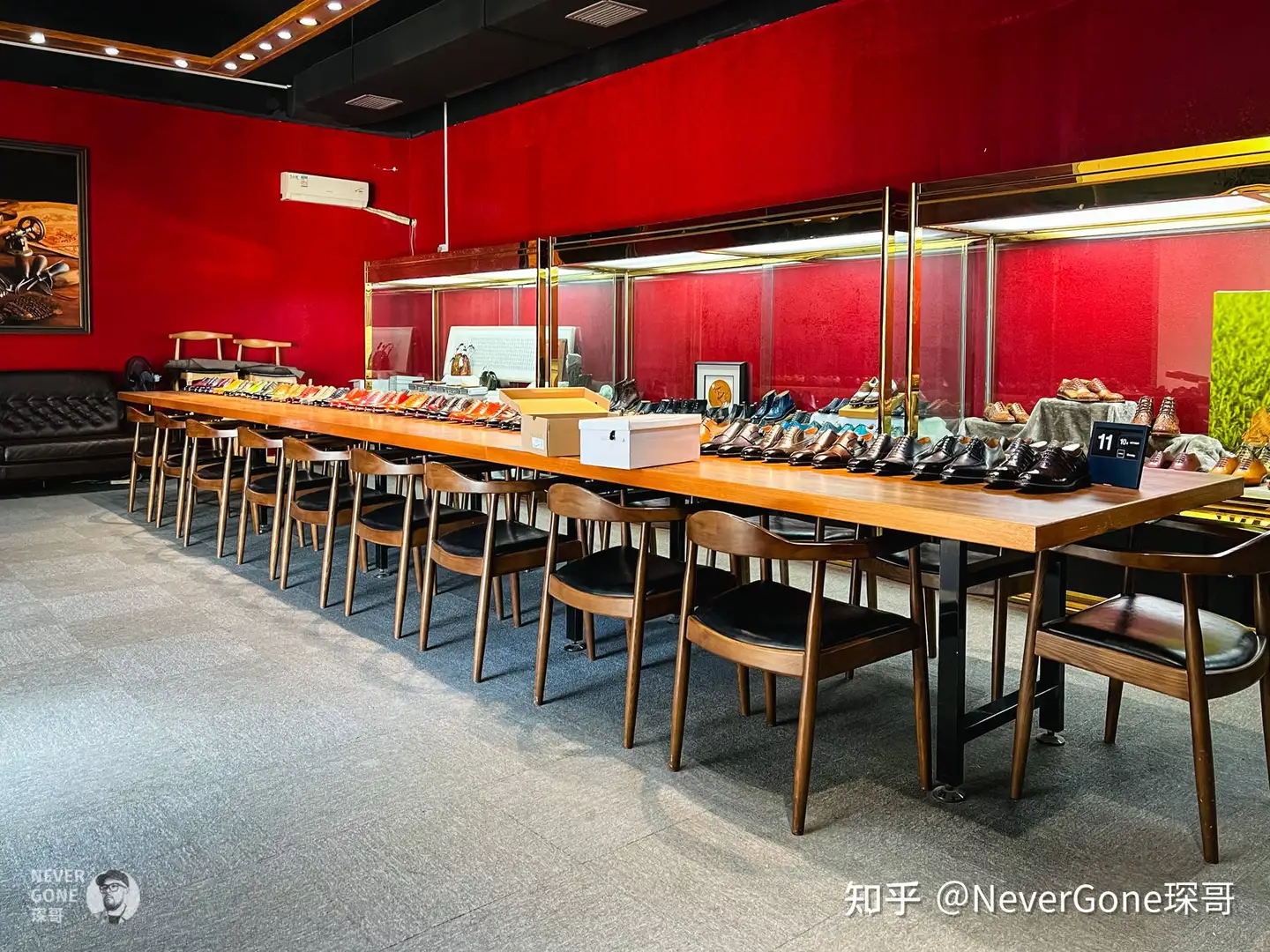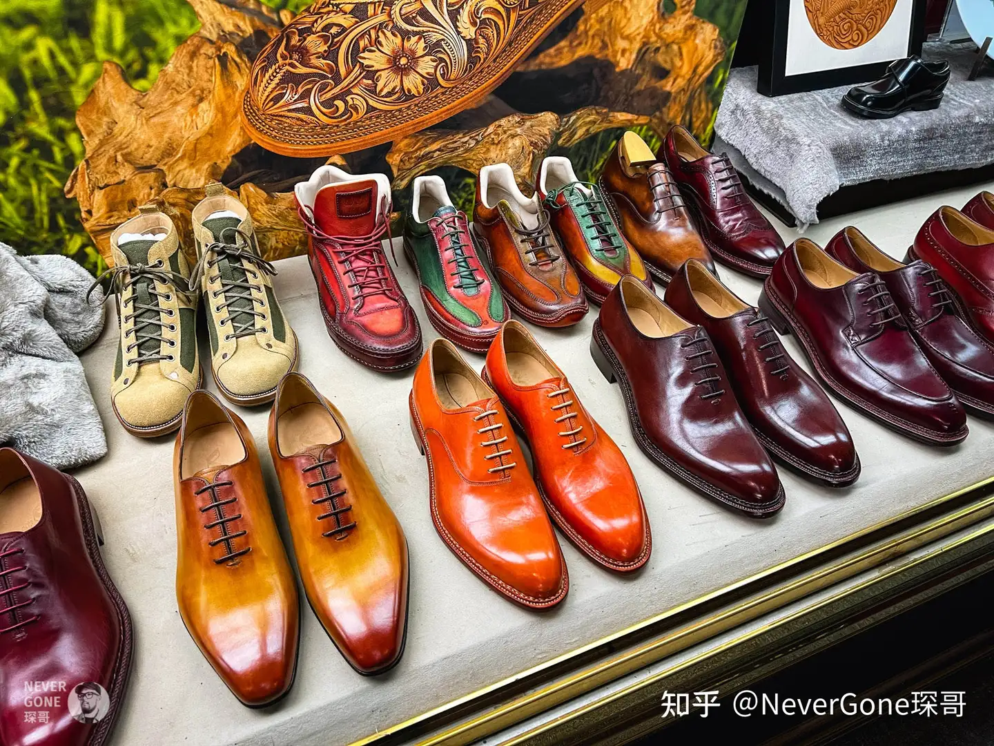 以上就是非常简略的展示了一双鞋的制作流程,实际上,像1978这种手工程度非常高的鞋,做一双是相当耗时的,再加上1978很喜欢用挪威缝,就更耗时了。他们有个陈列厅,里面摆放着各种鞋,很壮观