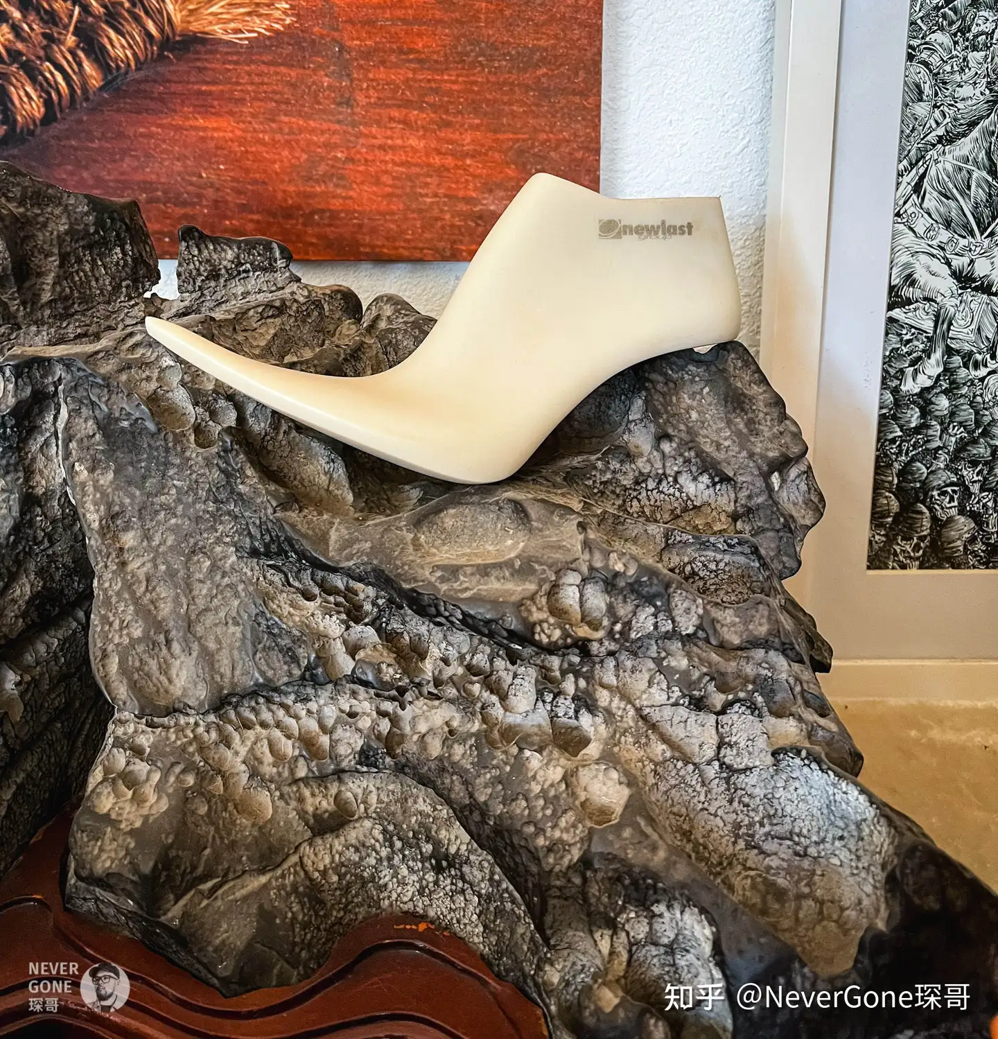 把中底钉到鞋楦上,用胶布缠起来定型完就是这样了,可以看到足弓很明显,配合填充物能实现很贴合很有支撑感的脚感