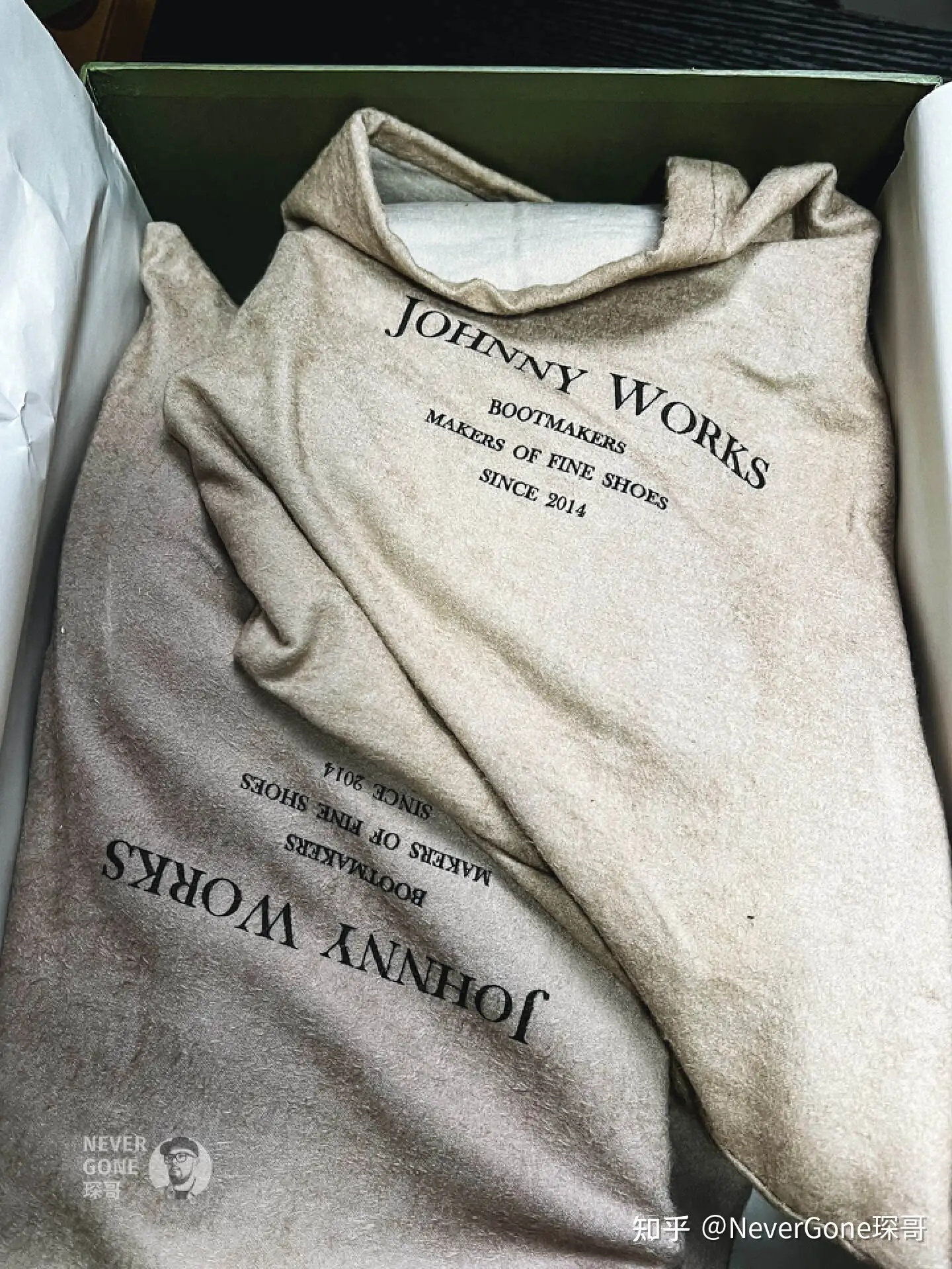 强尼的包装在国产里属于相当用心的,鞋盒、布袋都很有质感