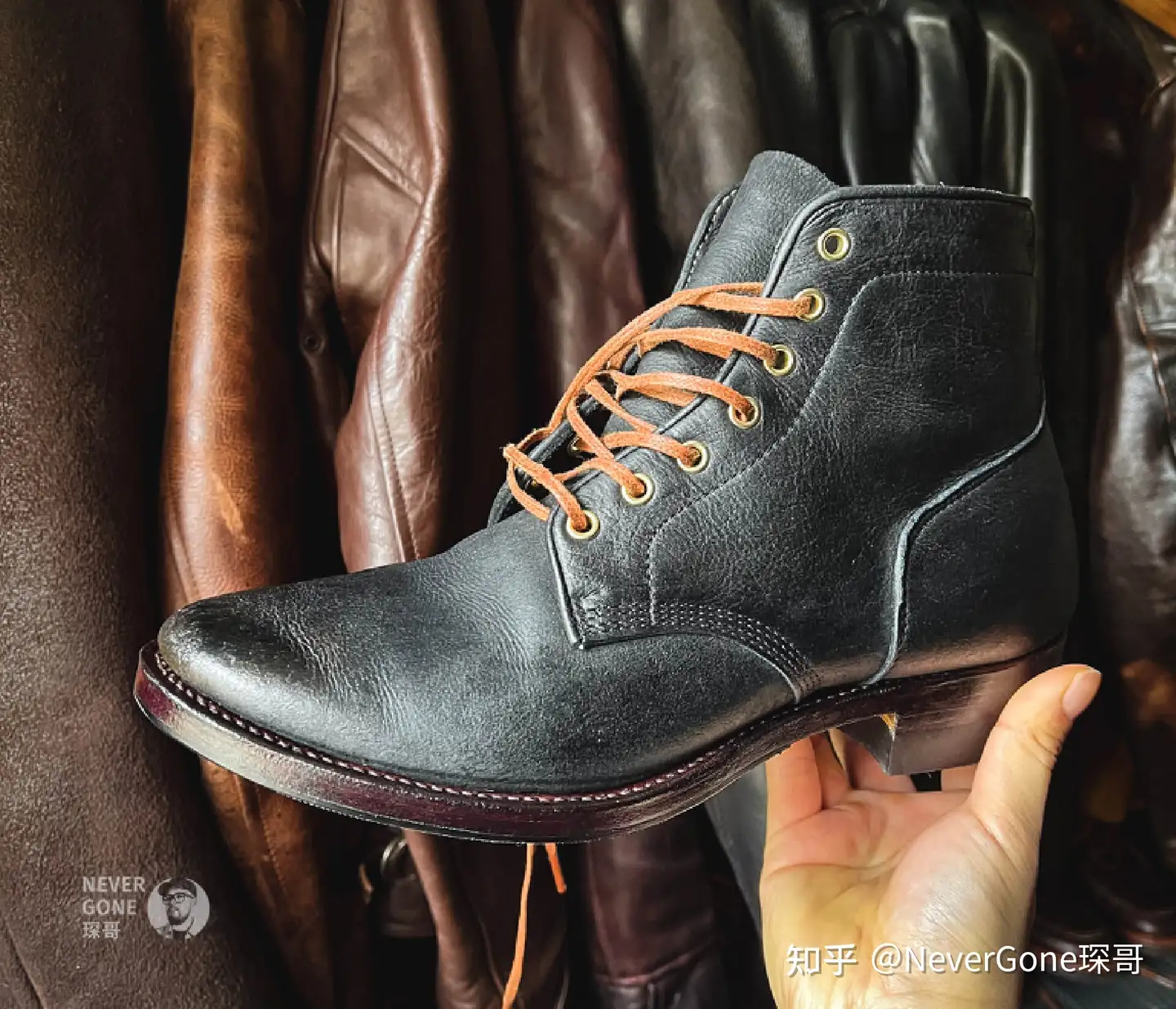 楦型的话属于主观,如果觉得不好看我也不会买,大家自己看图就可以了。水洗马皮就是这种见仁见智的独特质感了,我个人挺喜欢