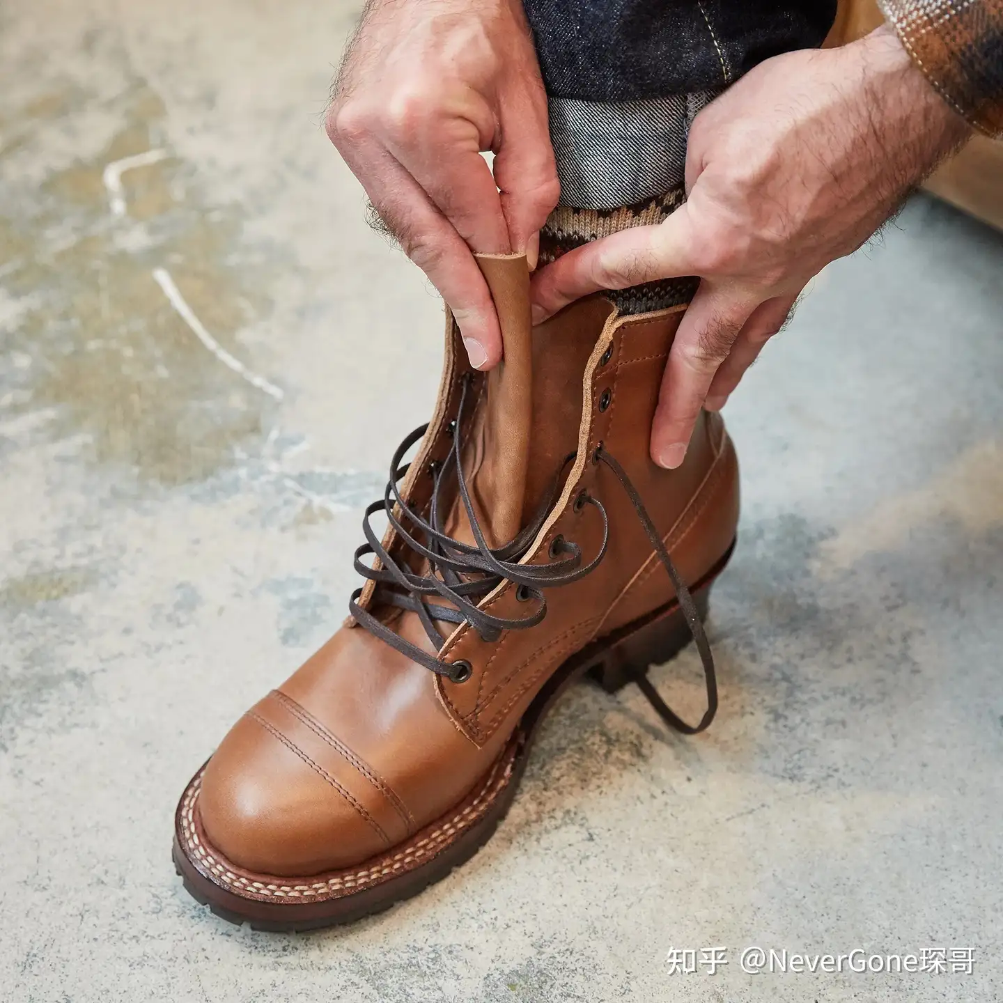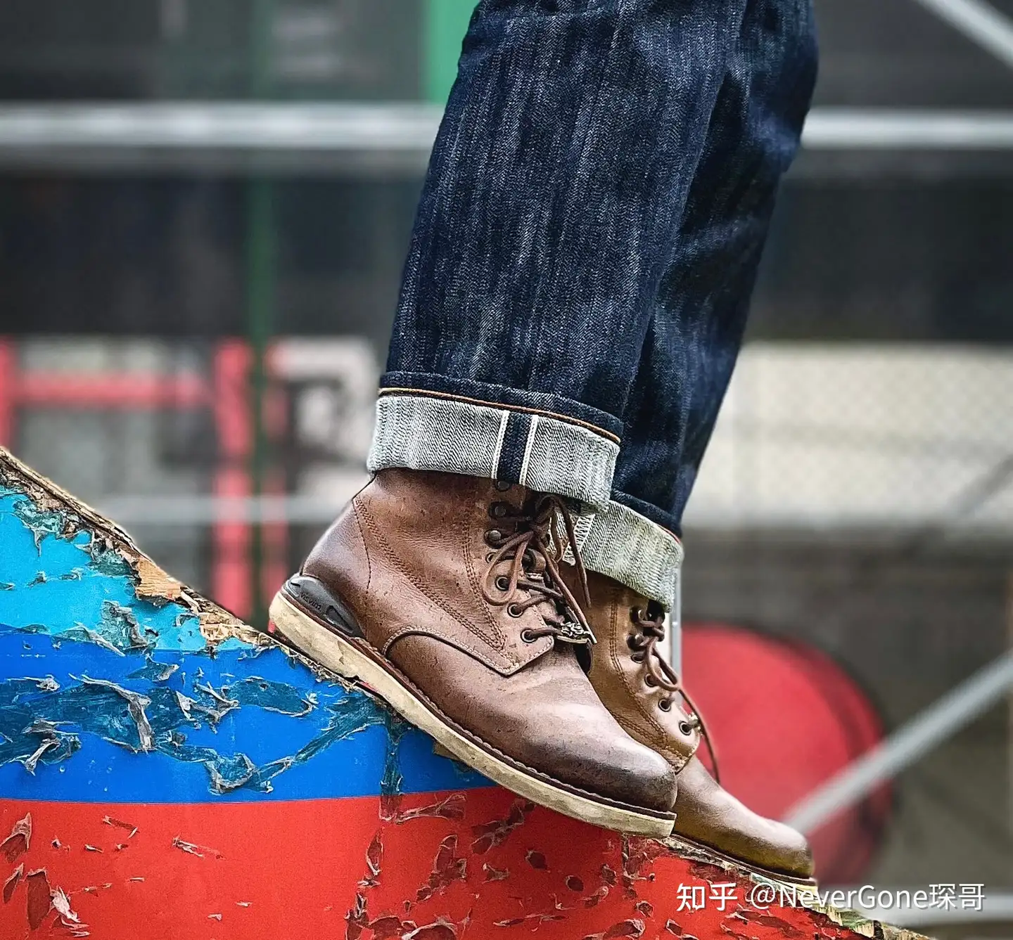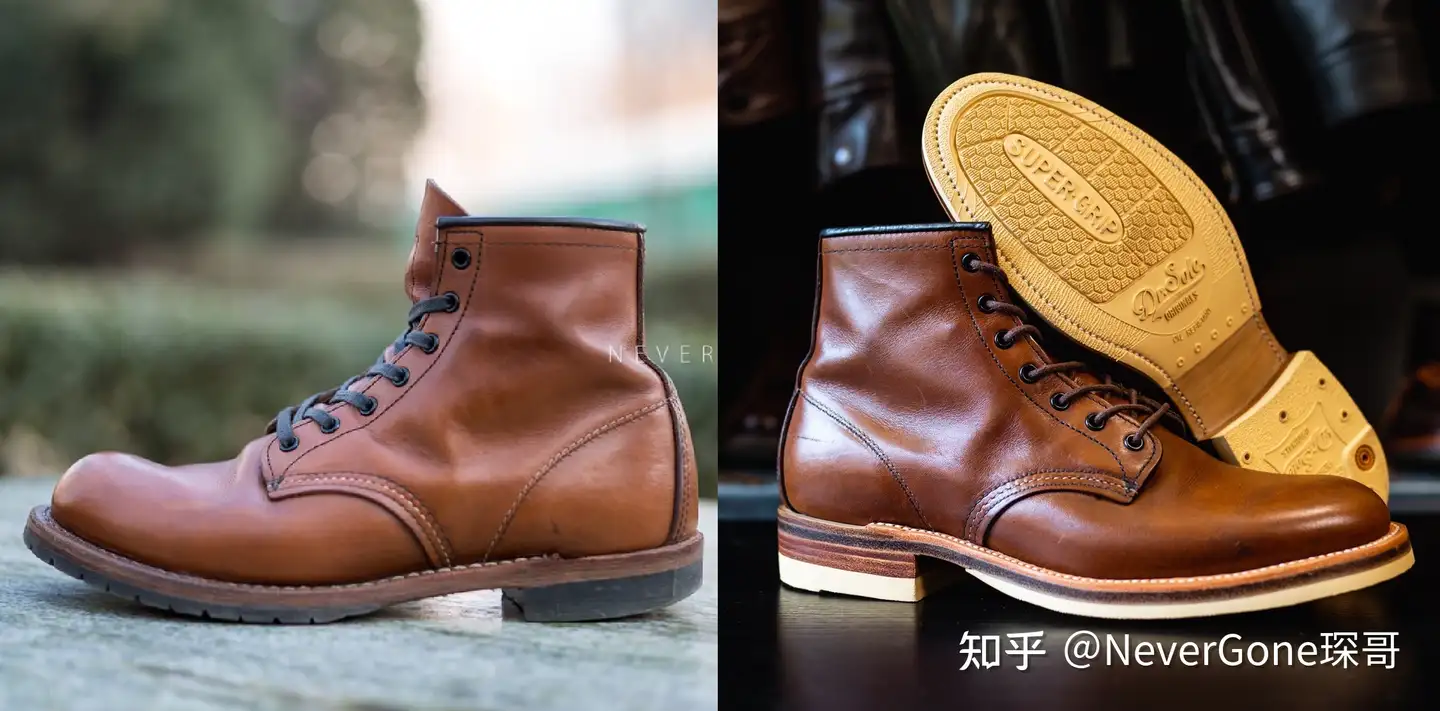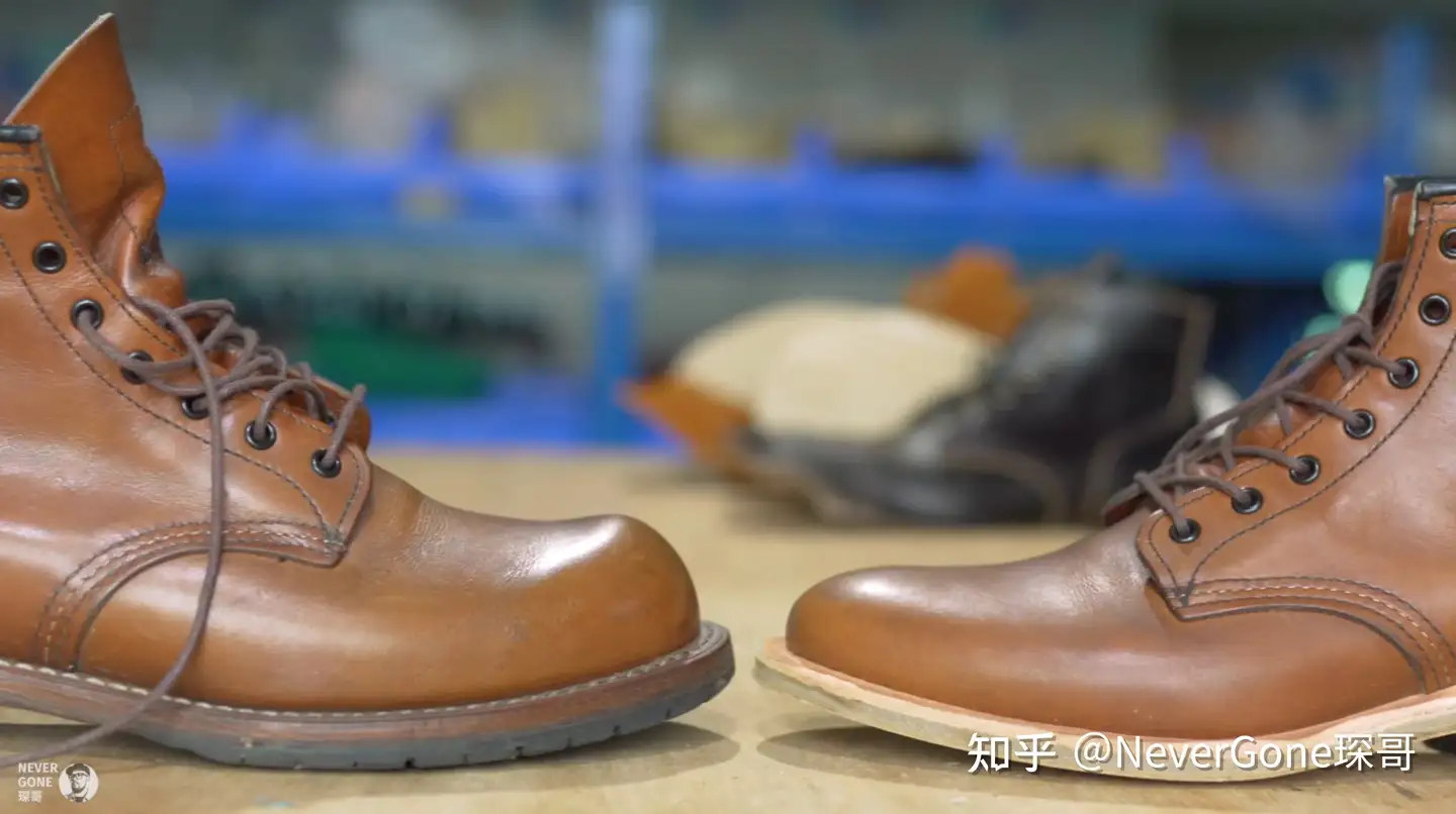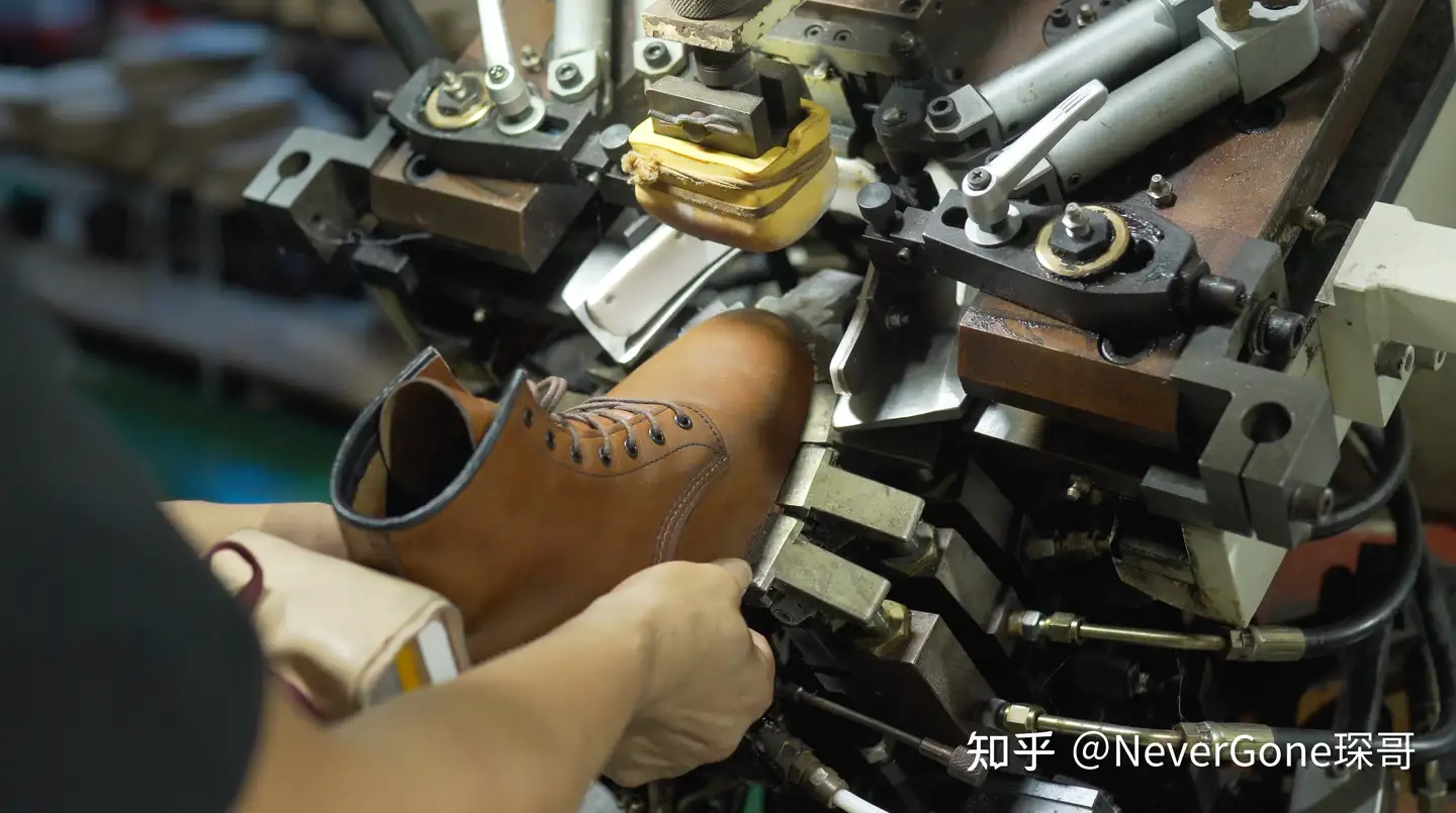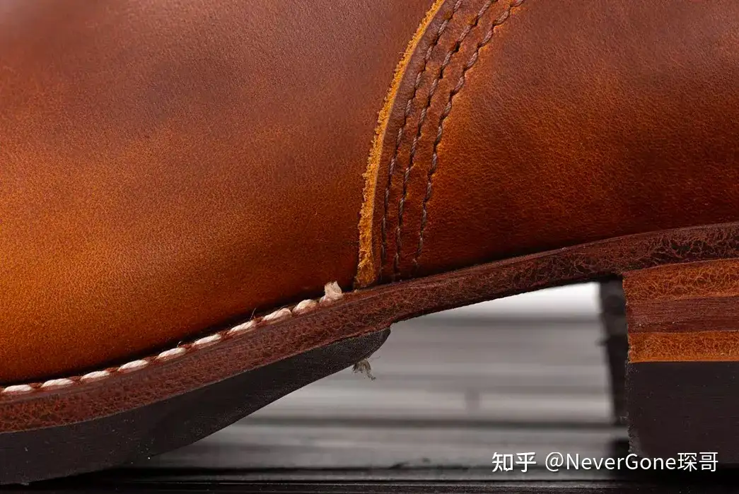 接着还有带装饰线的高边沿条,导致远看像是沿条挪威缝的,但其实仍然是固特异结构,代表款式有Red Wing 1907和Alden Tanker的部分配置