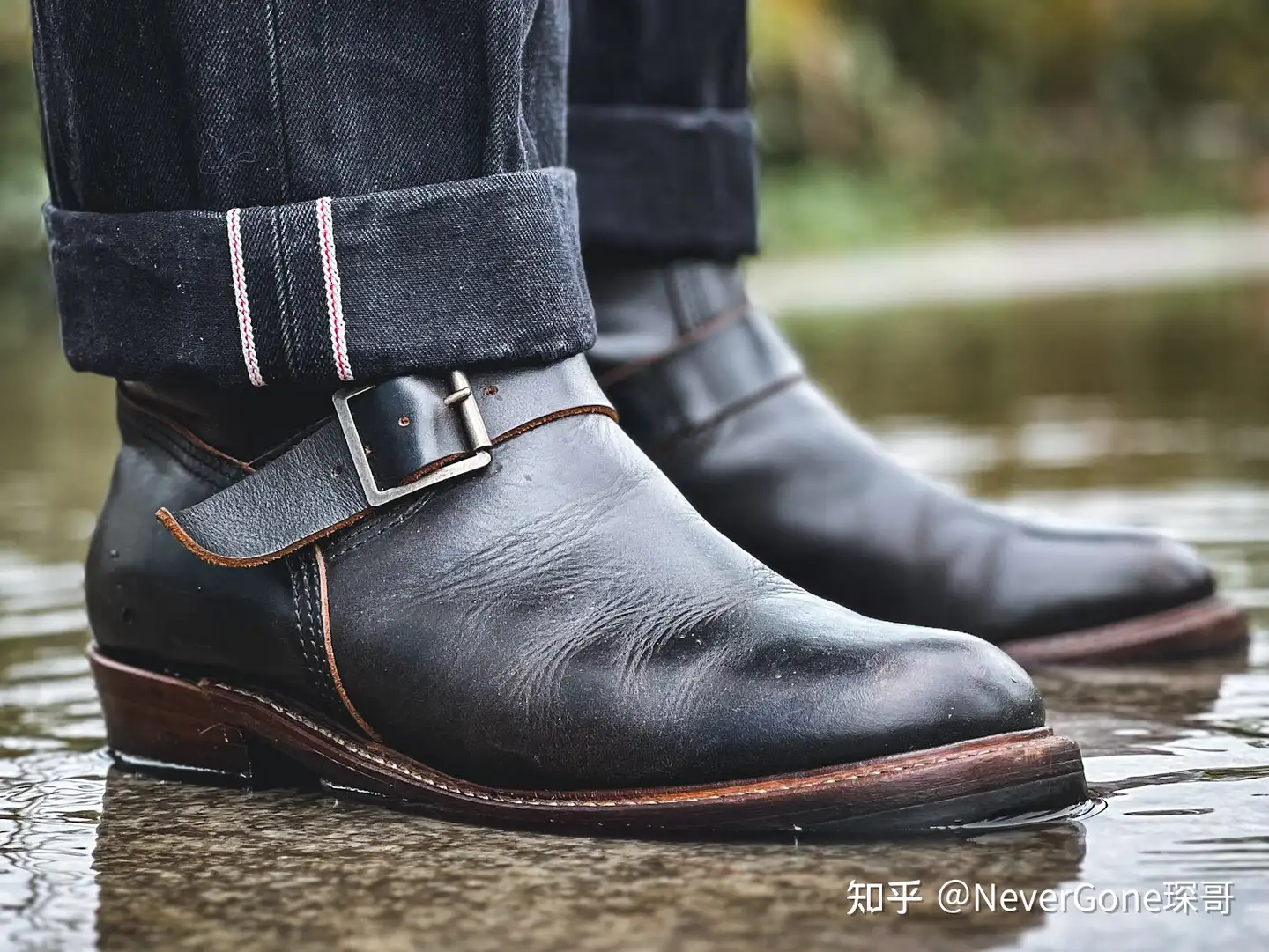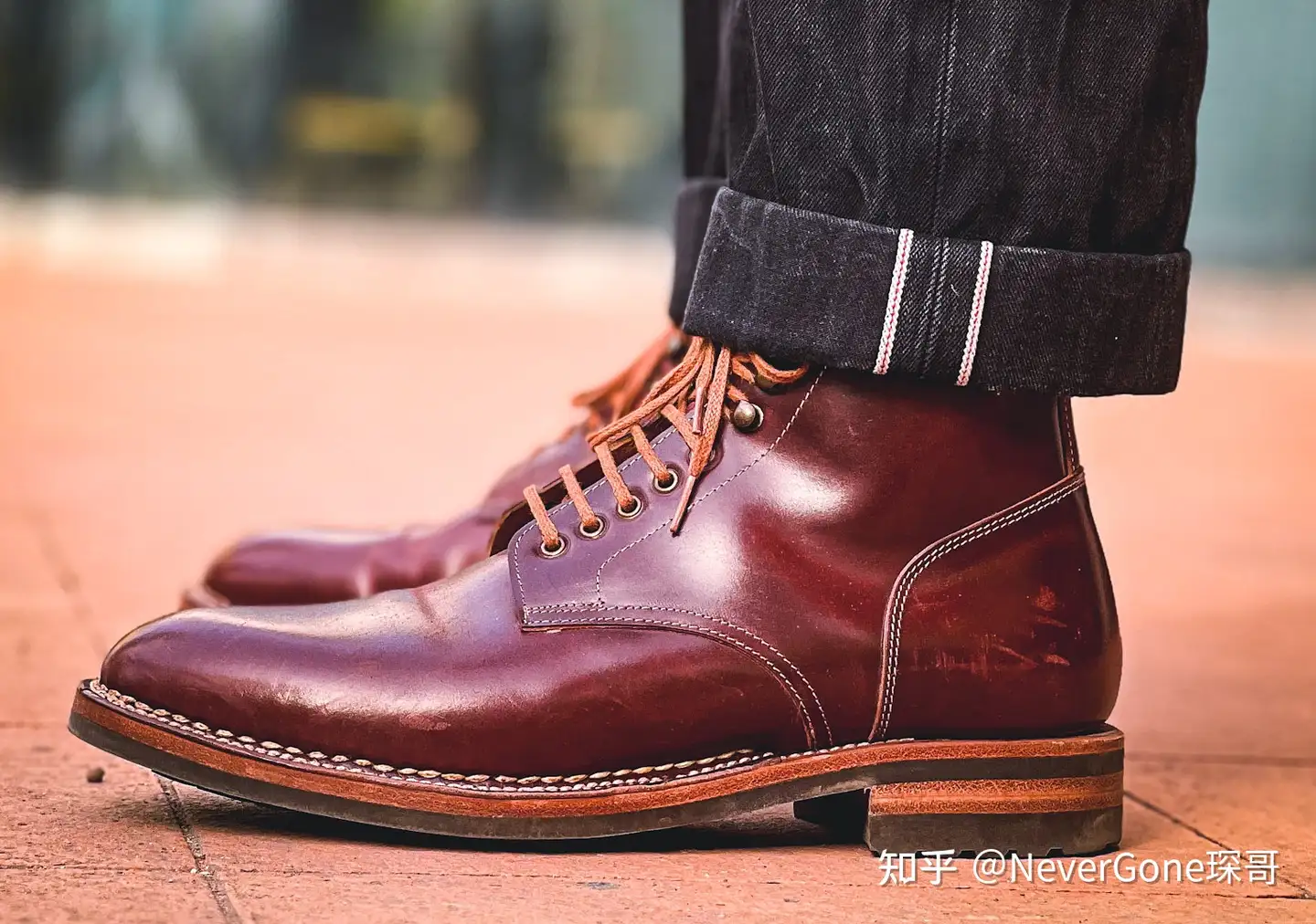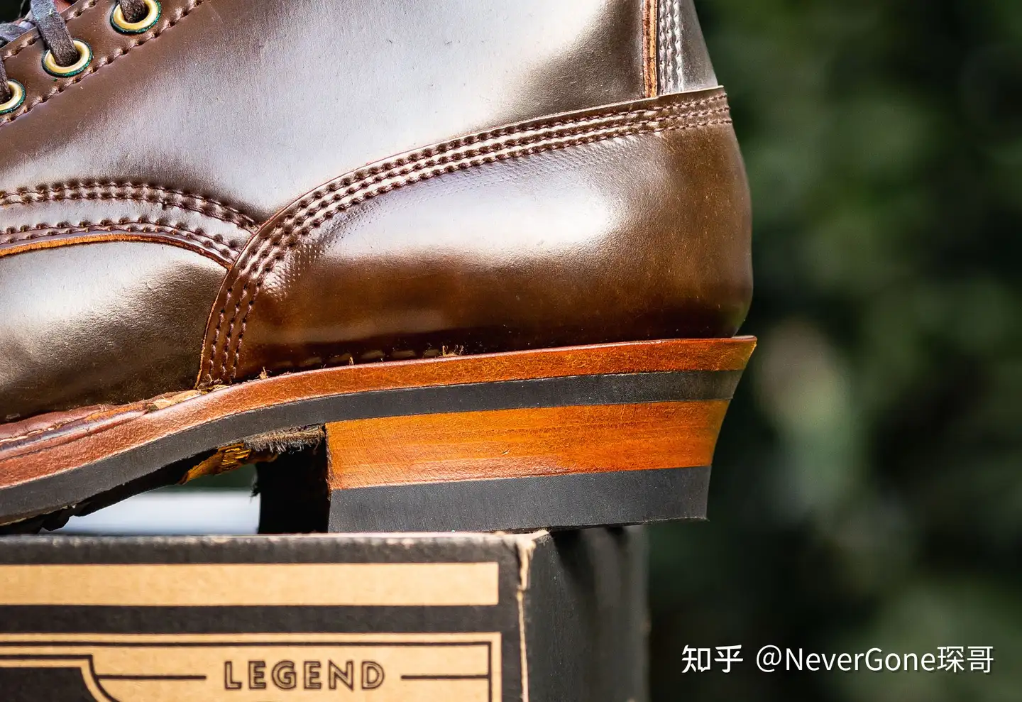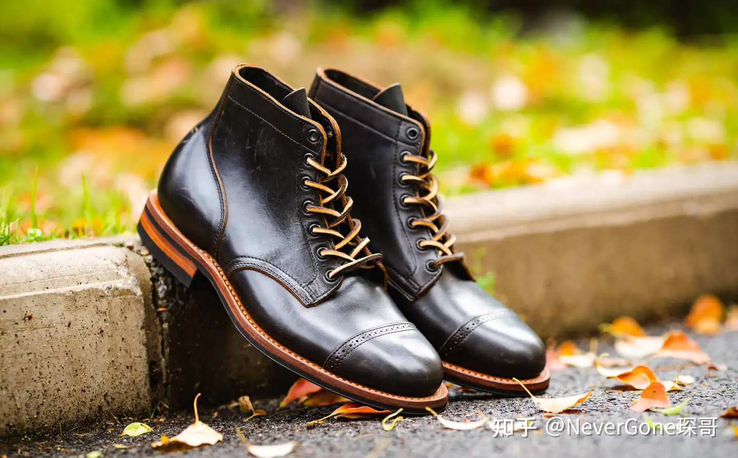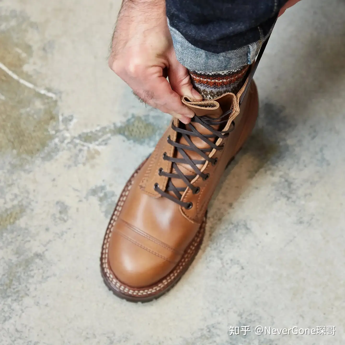 接着还有带装饰线的高边沿条,导致远看像是沿条挪威缝的,但其实仍然是固特异结构,代表款式有Red Wing 1907和Alden Tanker的部分配置