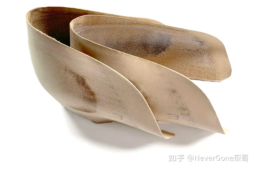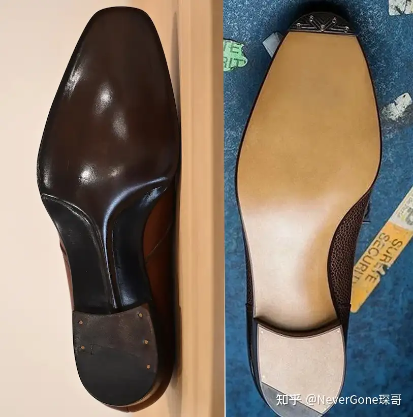 鞋腰。人们普遍审美认为一定的收腰会带来更优雅的美感。所以高端鞋(当然也包括定制鞋)往往具有更极端的轮廓 :琴底。