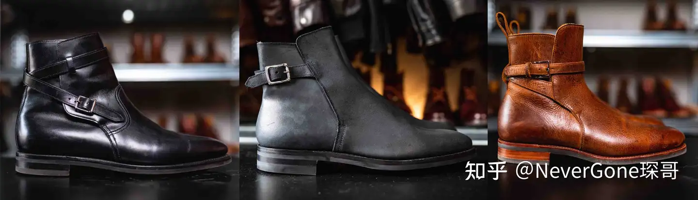 德比。与牛津(Oxford)或巴莫尔(Balmoral)截然相反,德比的系带系统是敞开的,也就是开放式鞋耳结构(也称为外耳鞋)。一般来说,正式程度不及牛津/巴莫尔,但对高脚背会更友好一点,有个细分类目Blucher,具体可以参考上面