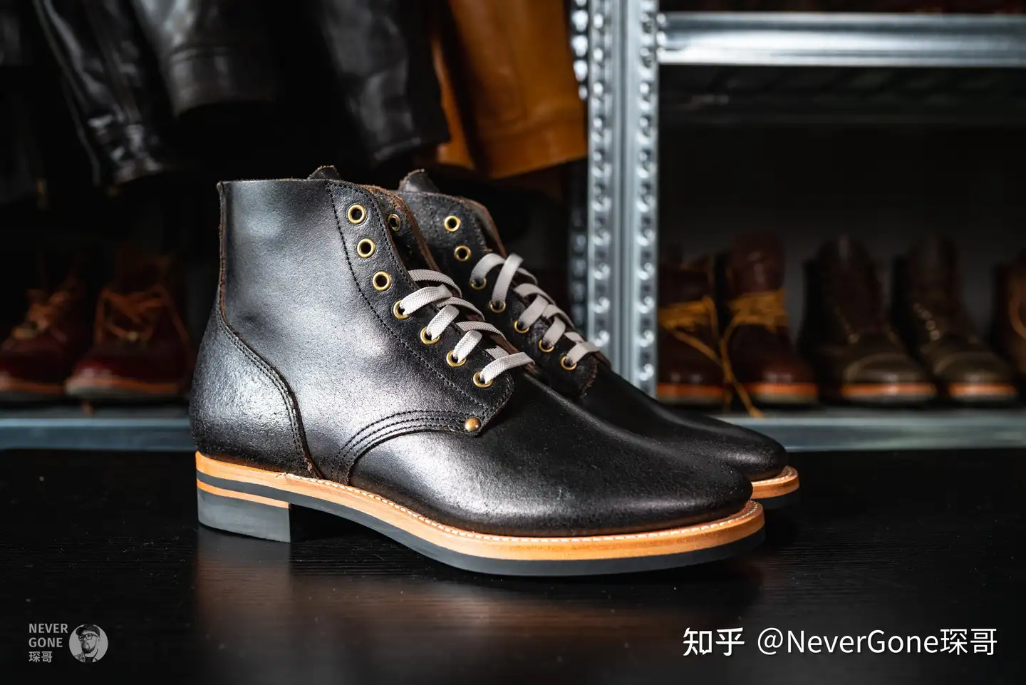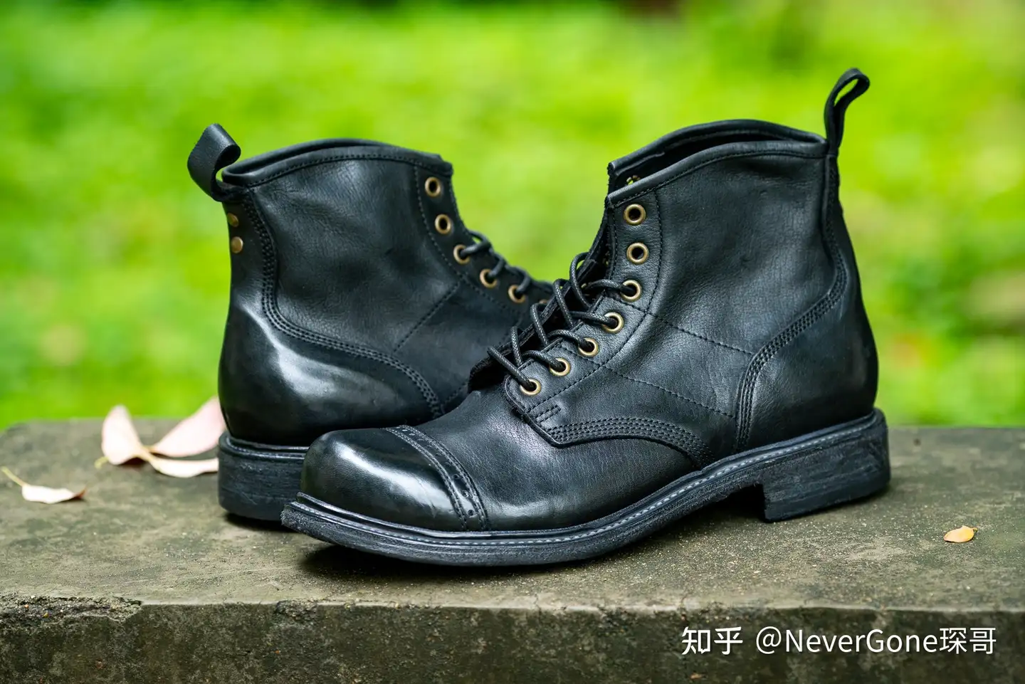 服务/服役靴。很经典的样式,很可能诞生于20世纪初,用于军事用途。属于德比靴的一种,后跟皮革裁片比较有标志性