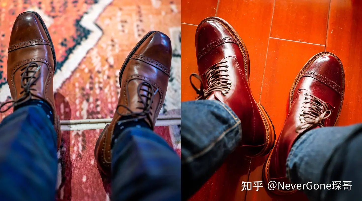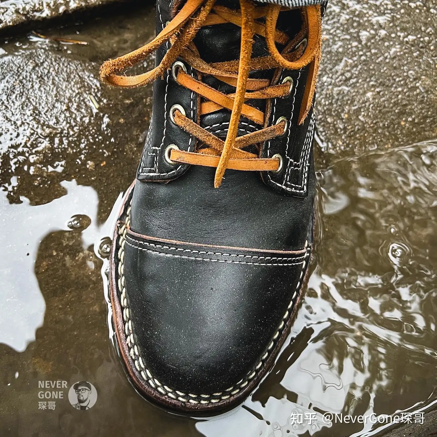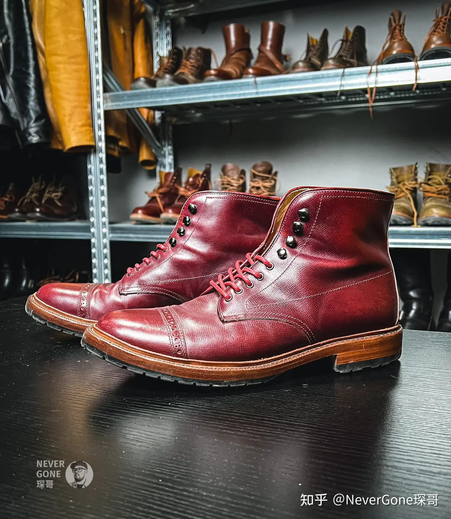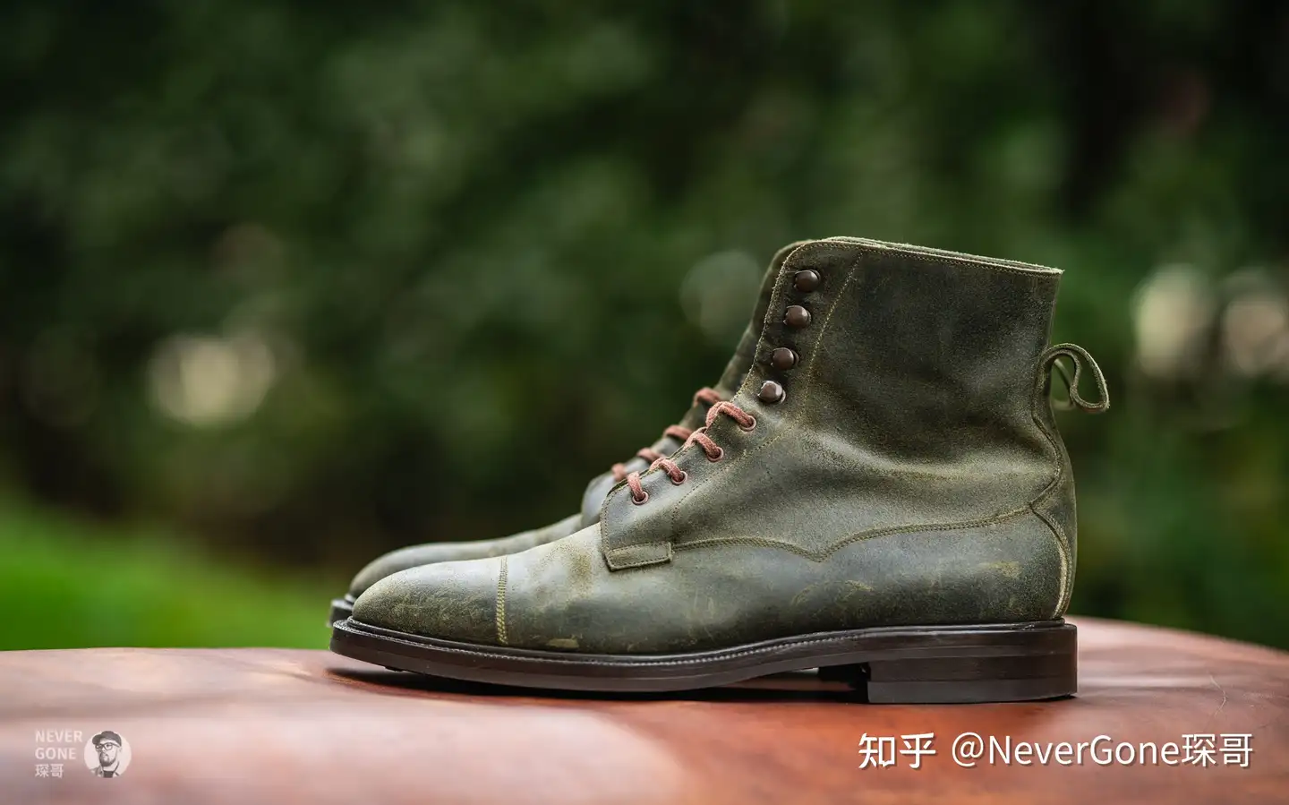 第二种是把粒面打磨掉一些再打蜡,比如Cfstead的Rambler和Waxy Commander,是保留了75%粒面部分。也有一些Nubuck等皮革会磨掉更多粒面