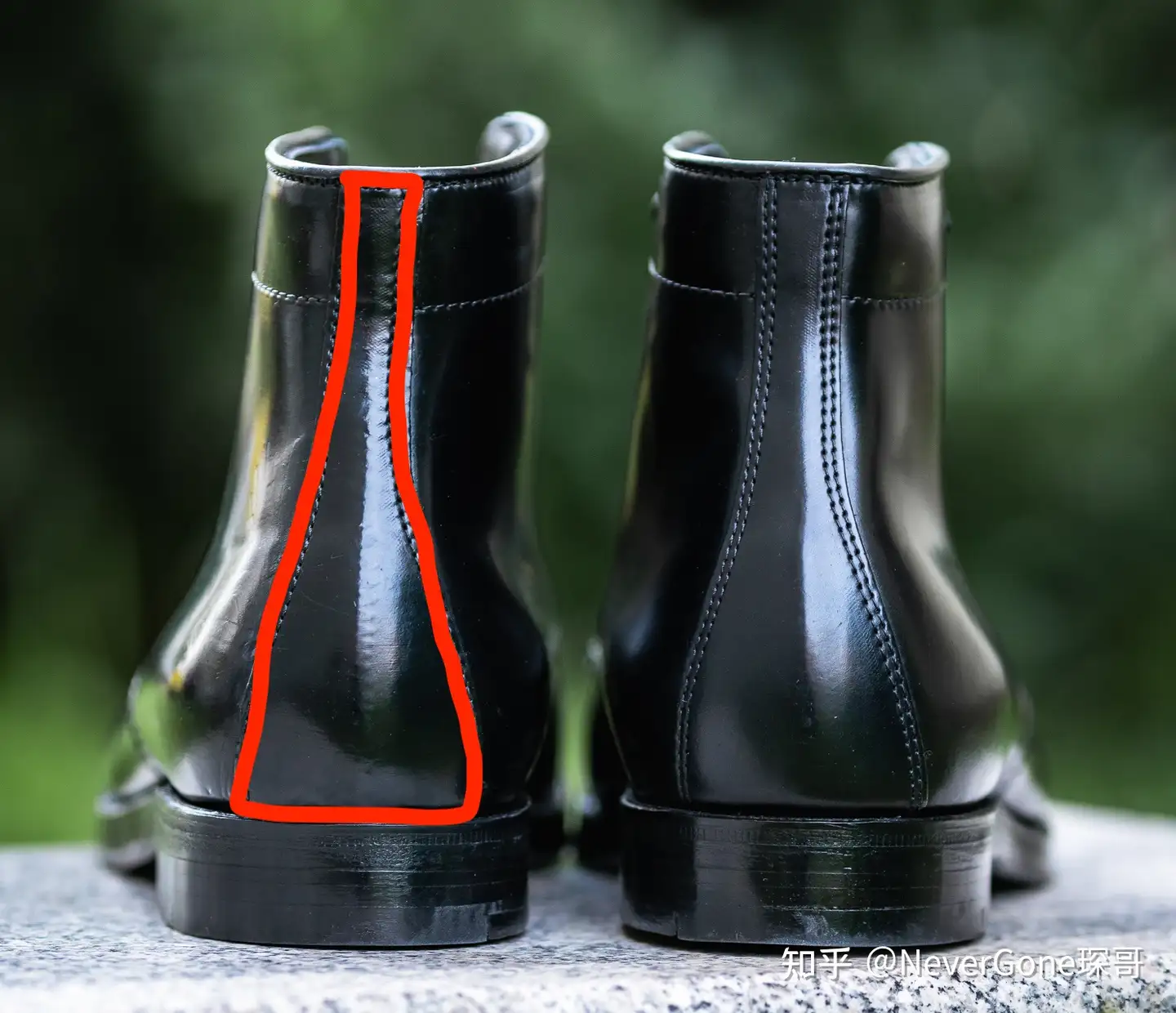 后缝线,指鞋子后面的缝线。通常是垂直的,几乎所有的鞋子都会在鞋面的这个部分缝合。