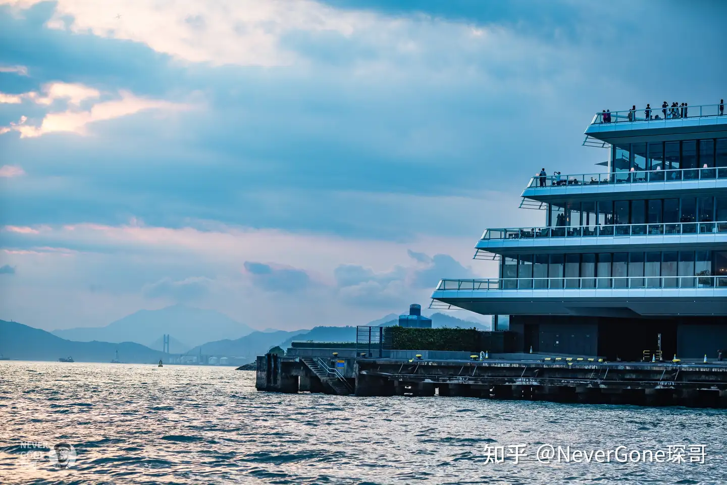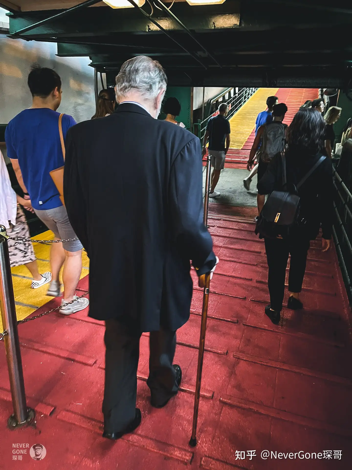 到尖沙咀码头了,出去的时候,前面有个拄拐杖的外国老爷爷