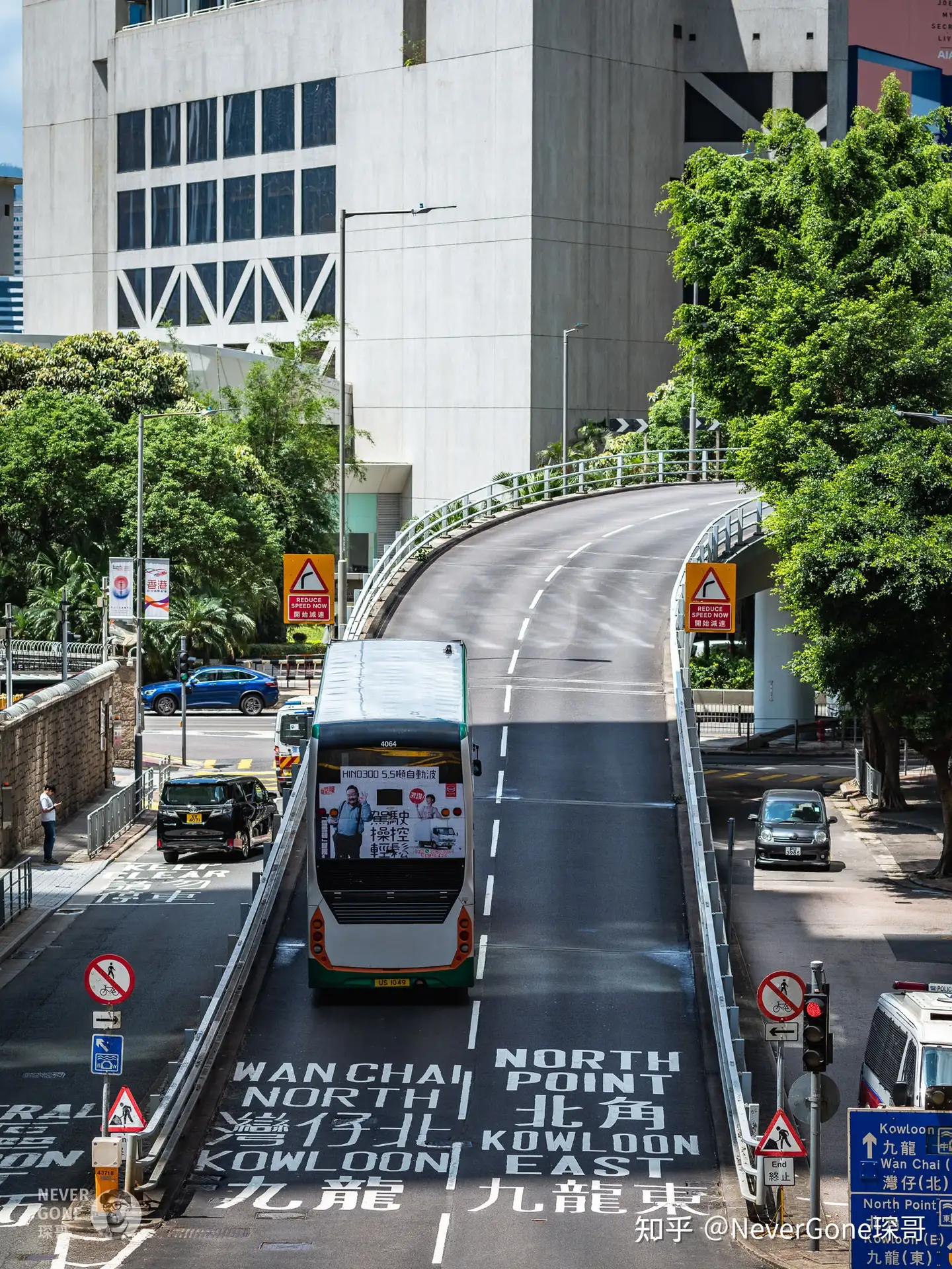 接下来就是在车上乱拍了,香港巴士比较高,带来不错的视野