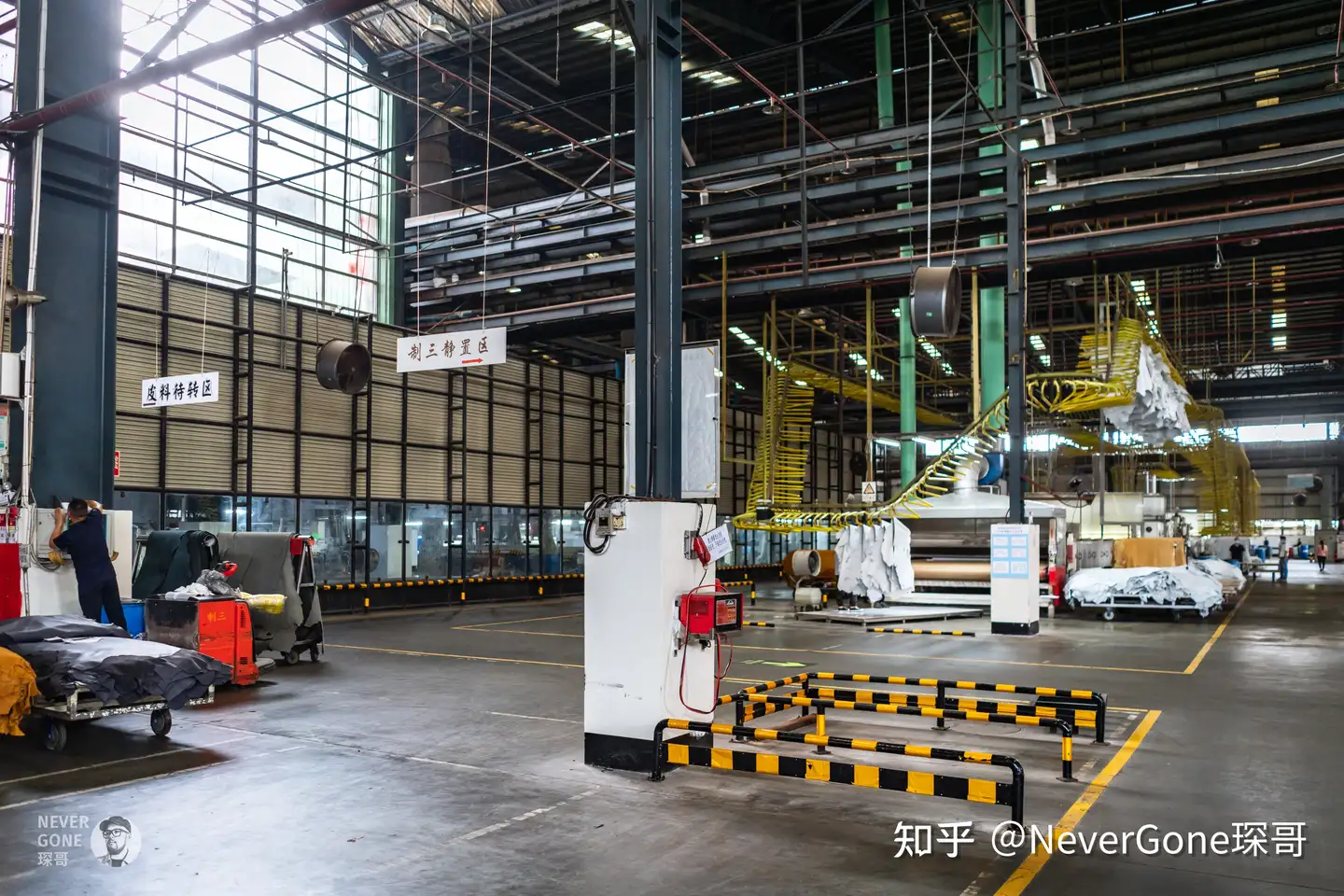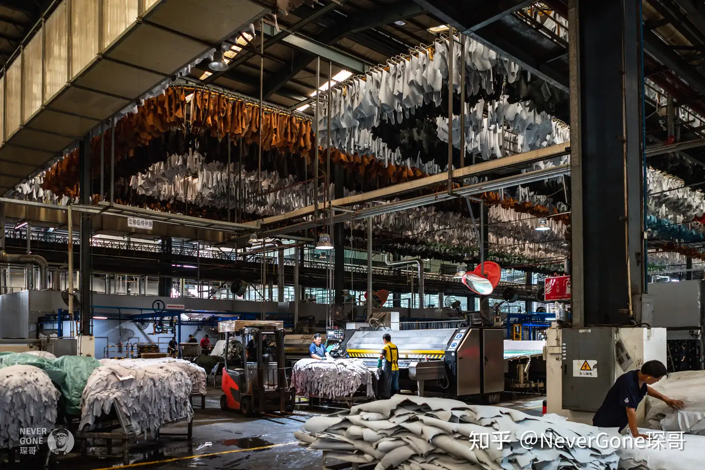 接着就去工厂里面了,一进去直接被漫天的皮料镇住,不愧是年产几千万平方英尺的超级大厂(1平方英尺≈0.093平方米)