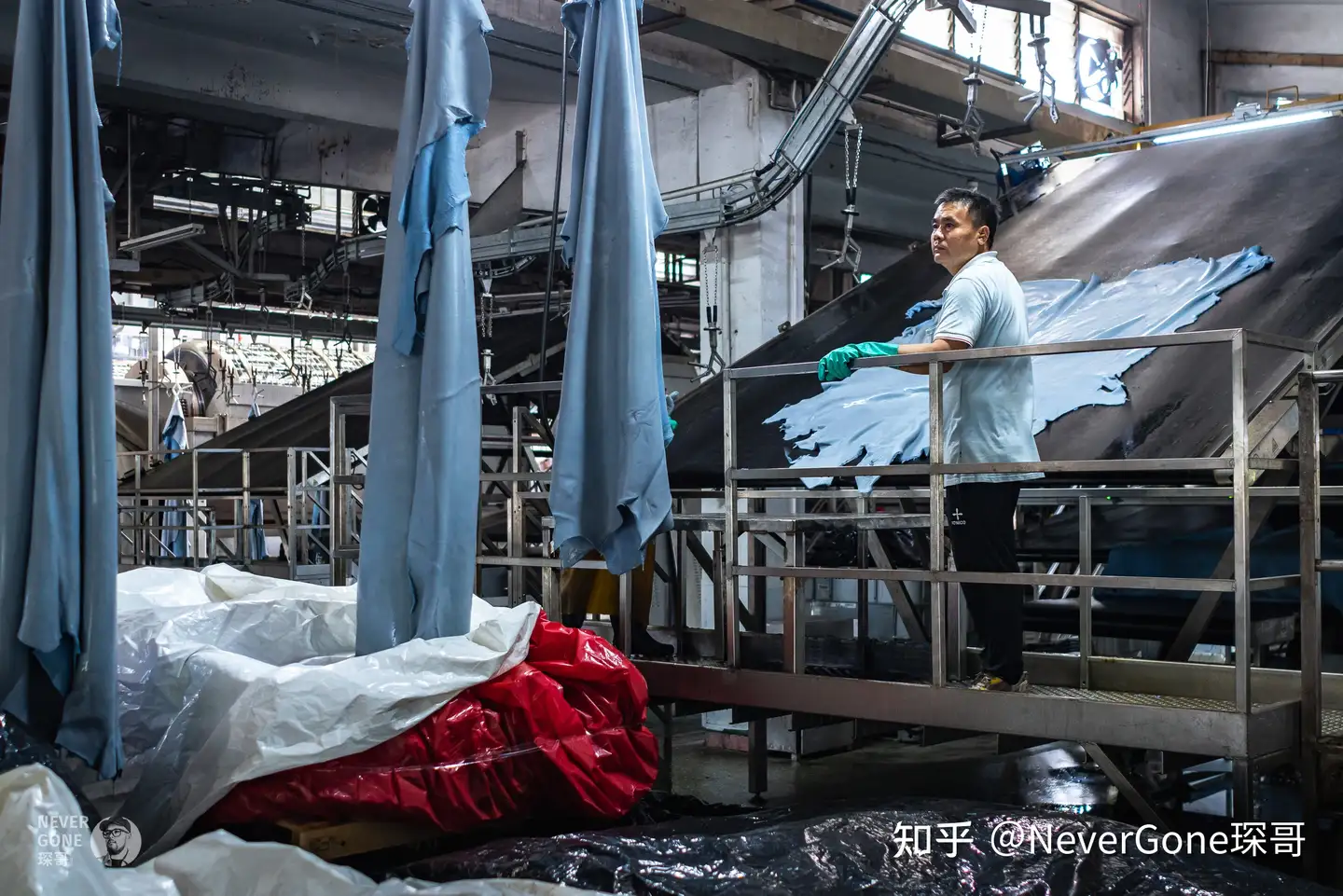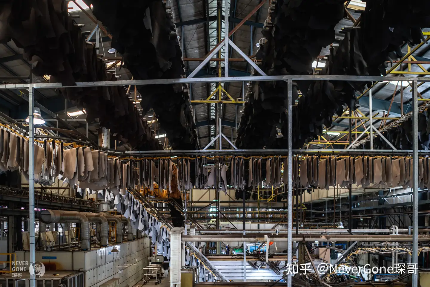 皮革生产的工序挺多的,大致可以分为生皮处理-铬鞣-蓝湿皮-分层-复鞣-干燥-回软-压平-表层染色-涂饰后处理等等