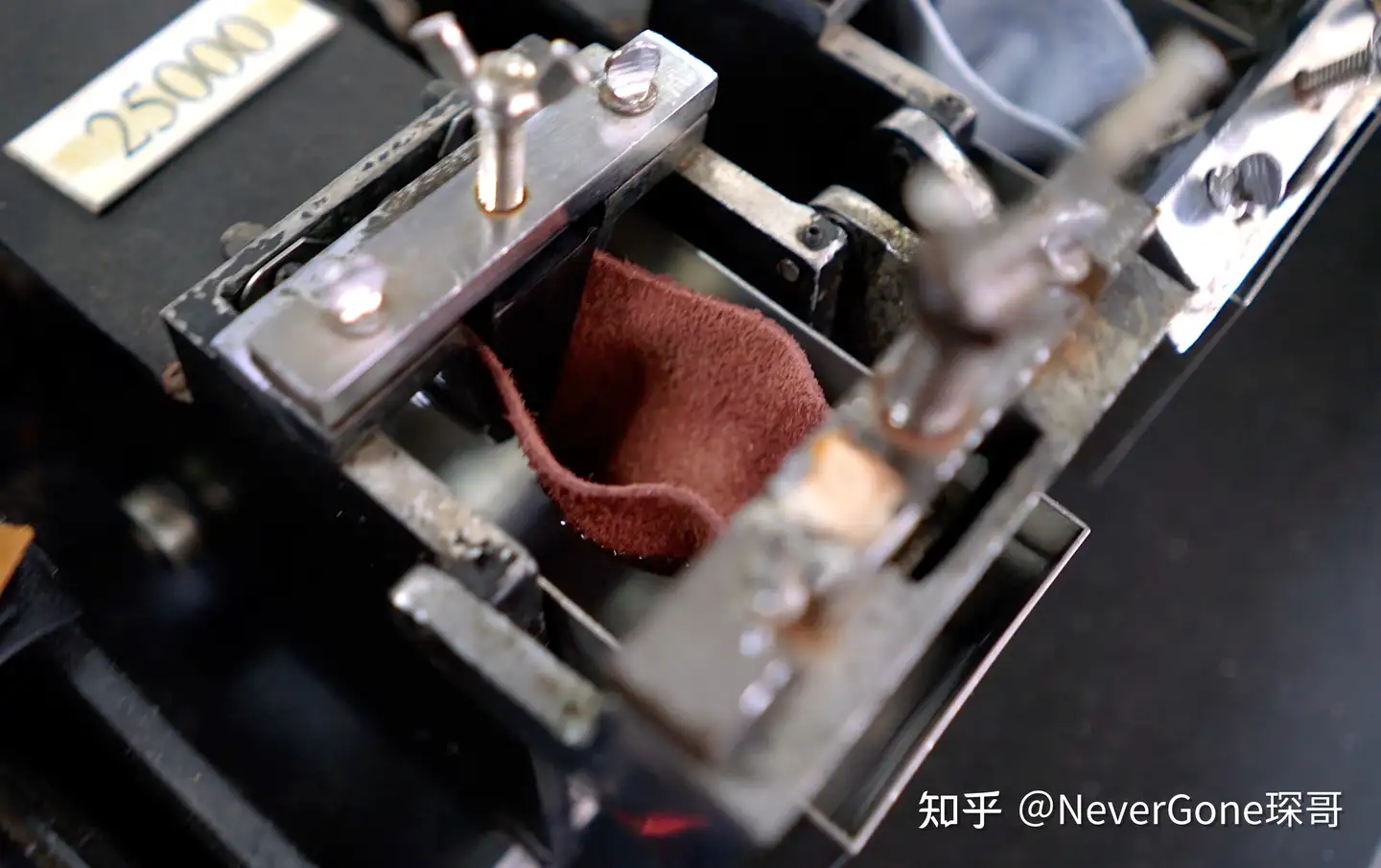 接着来到了实验室,这里负责研发与测试,研发的地方没法拍,所以拍了测试的。看到了很多测试操作,比如抗撕裂测试,选取特定部位的皮样把两端夹住,不断提升拉力直到拉断