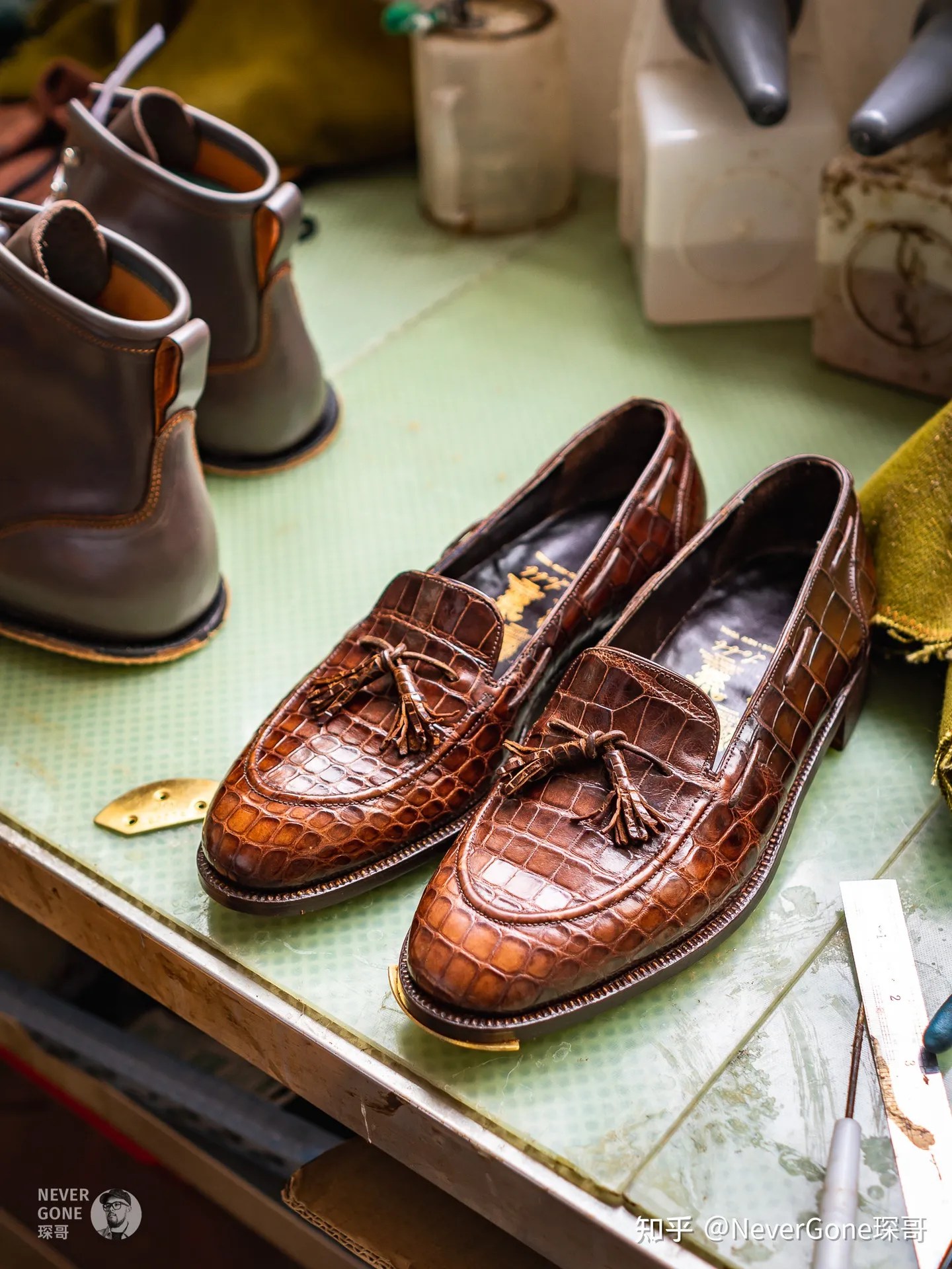 最吸引人的是这双伦敦John Lobb老店做的Bespoke鳄鱼