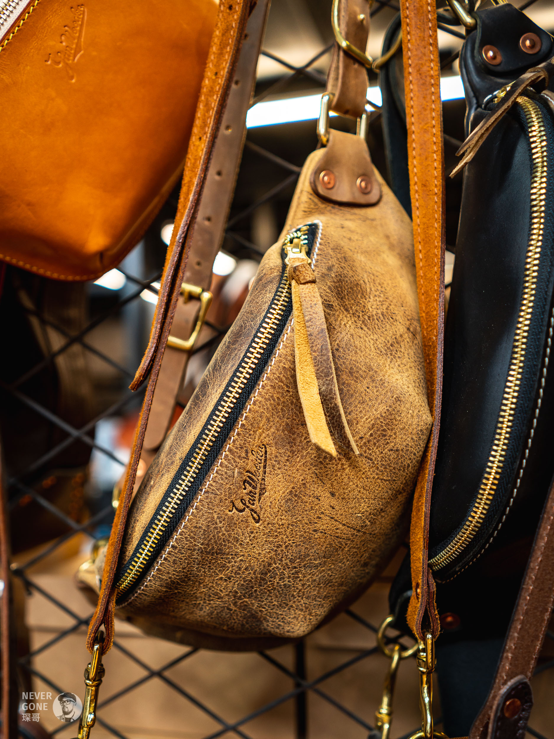 聊天的过程中,老板橙子君解释了一下品牌名字的内涵:“岩屋手造”这个名字乍听起来像是一个日本名字,也无法与手⼯皮具联系起来。但对橙子君来说,“岩屋不仅是一个小众品牌,更特指的是一种精神状态。无论生活在都市也好,流浪于野也好,我希望它是回归世界的本源,既有回归自然的寓意,也代表了有棱⻆不妥协的态度。”