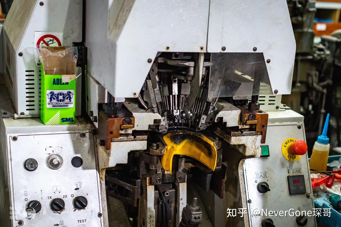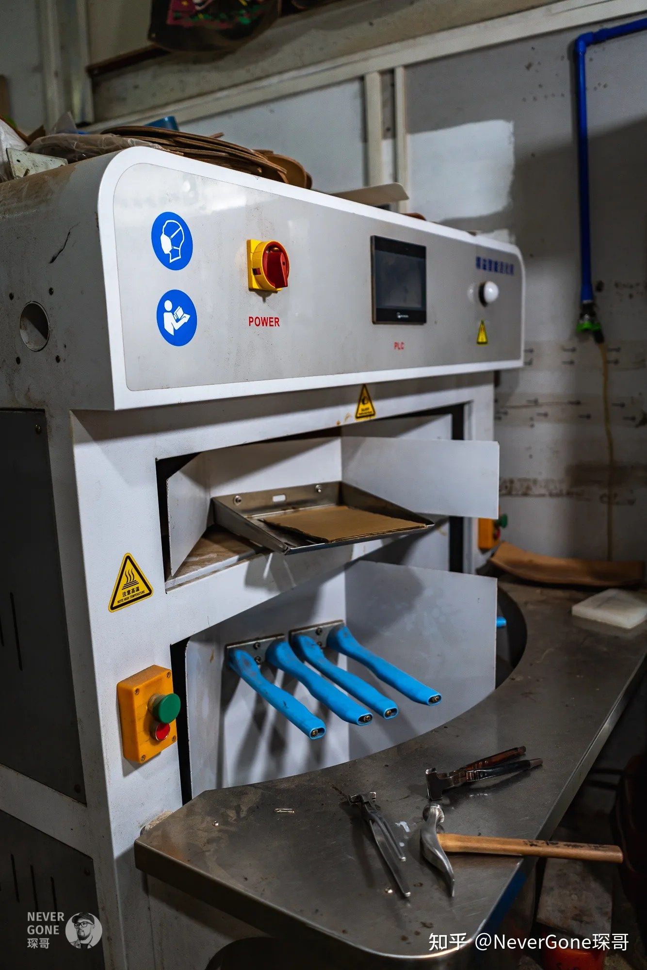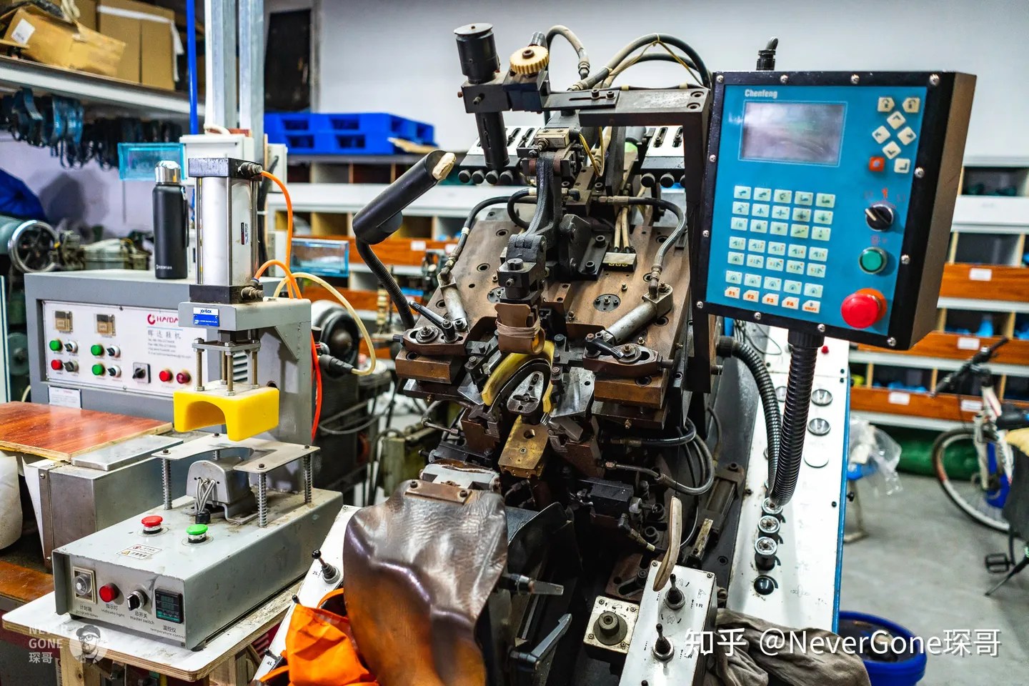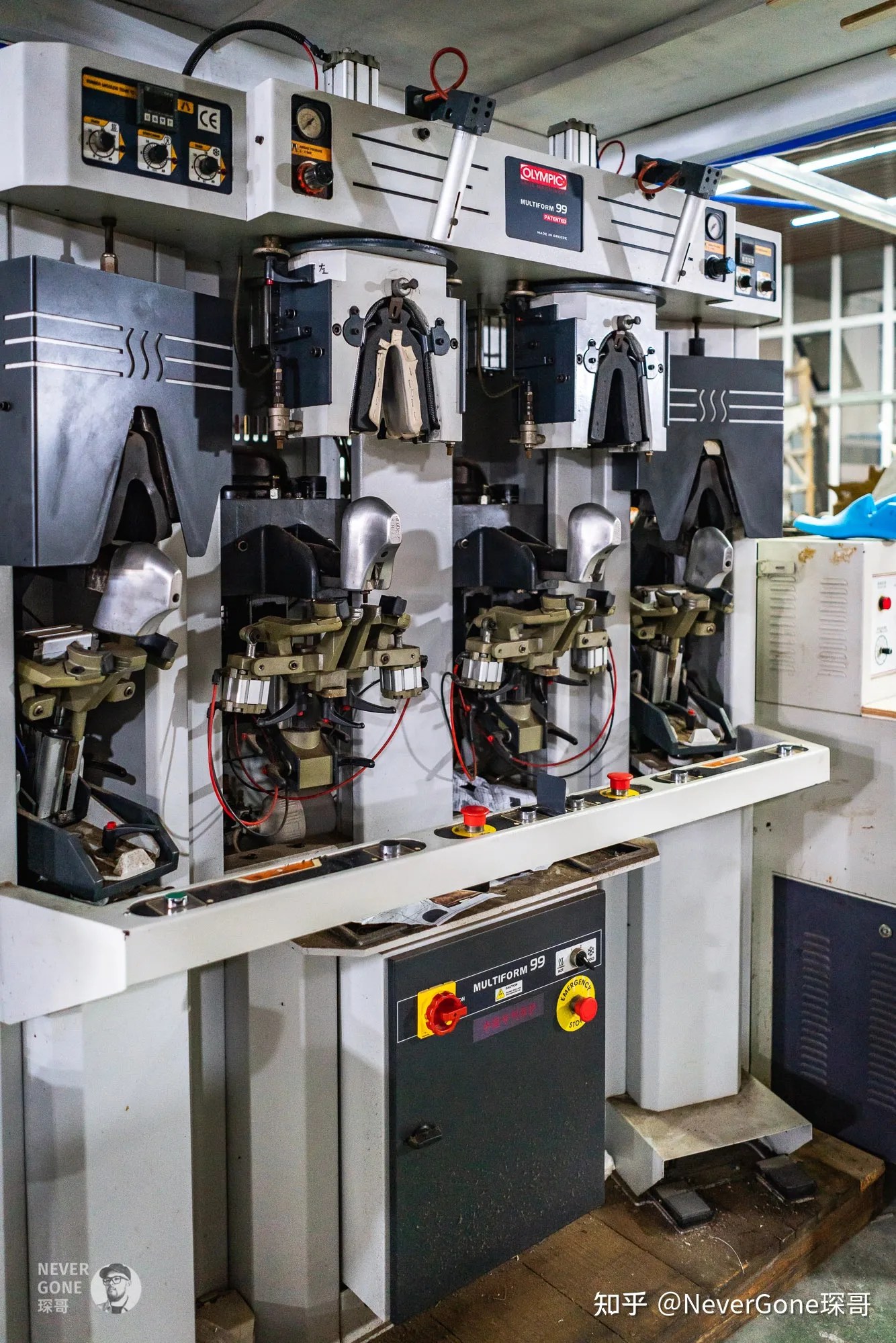 强尼的机器种类非常丰富,各种定型机,外线机、后踵定型机、打钉机、压底机、沿条机等可以说是一应俱全。整体来看,强尼的底部流程占地很大,流程清晰、各种机器种类齐全、师傅们分工明确。