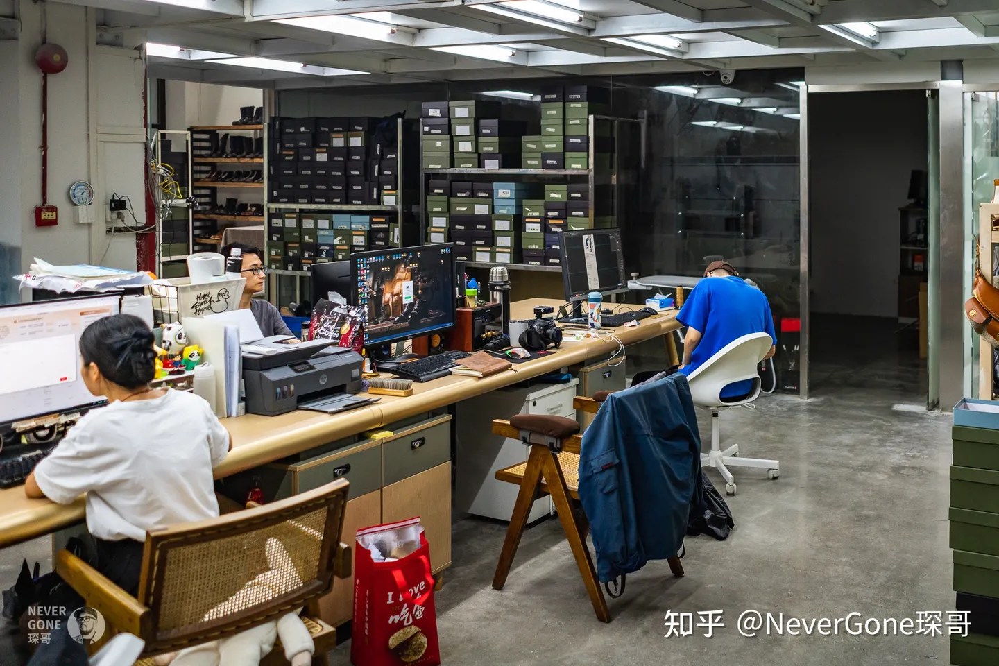 首先来到办公区,一进去就是一面超大鞋墙,鞋架上陈列着各种强尼的样品以及主理人的私人藏品,十分壮观,比我的大多了