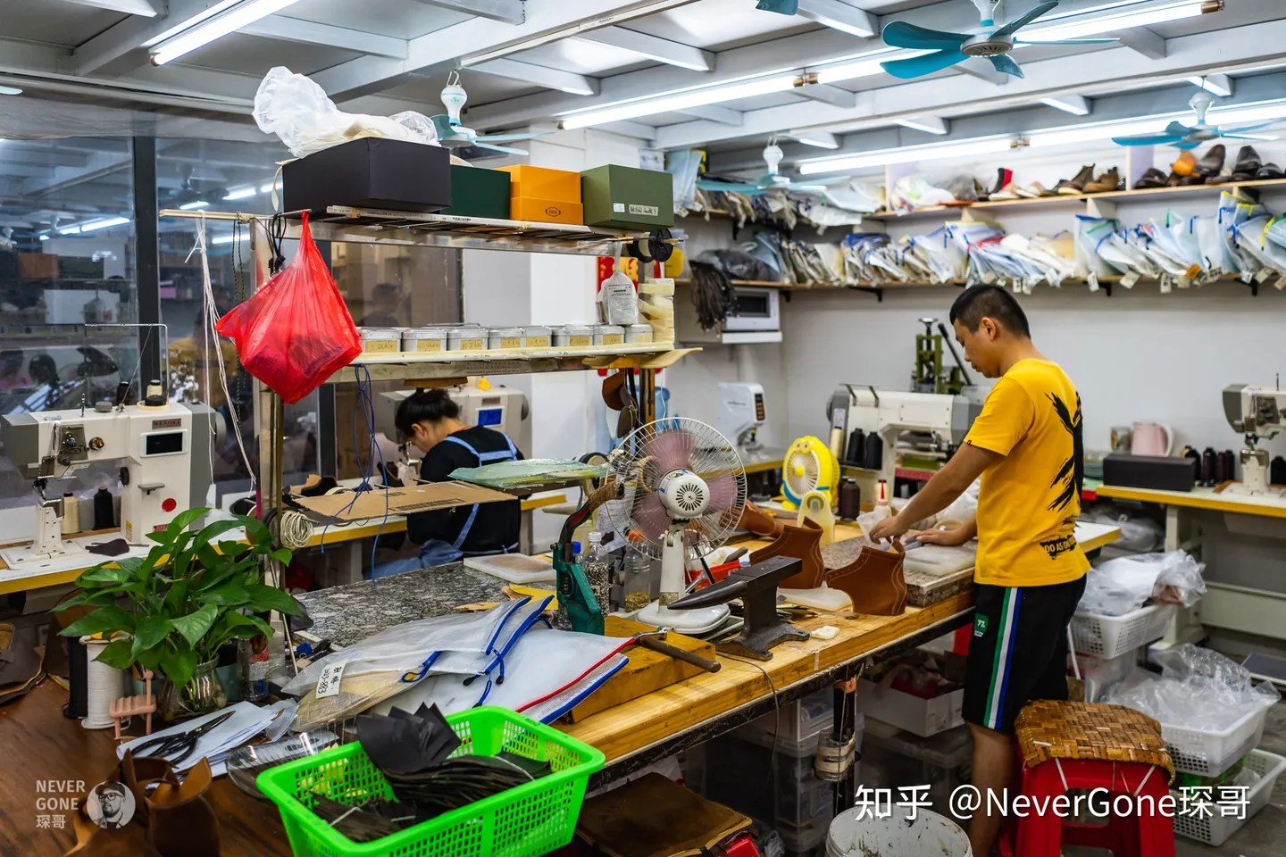 皮料区下来就是鞋面生产部门,鞋面区整体工作环境很棒,井井有条,分工明确,而且可以吹到空调。