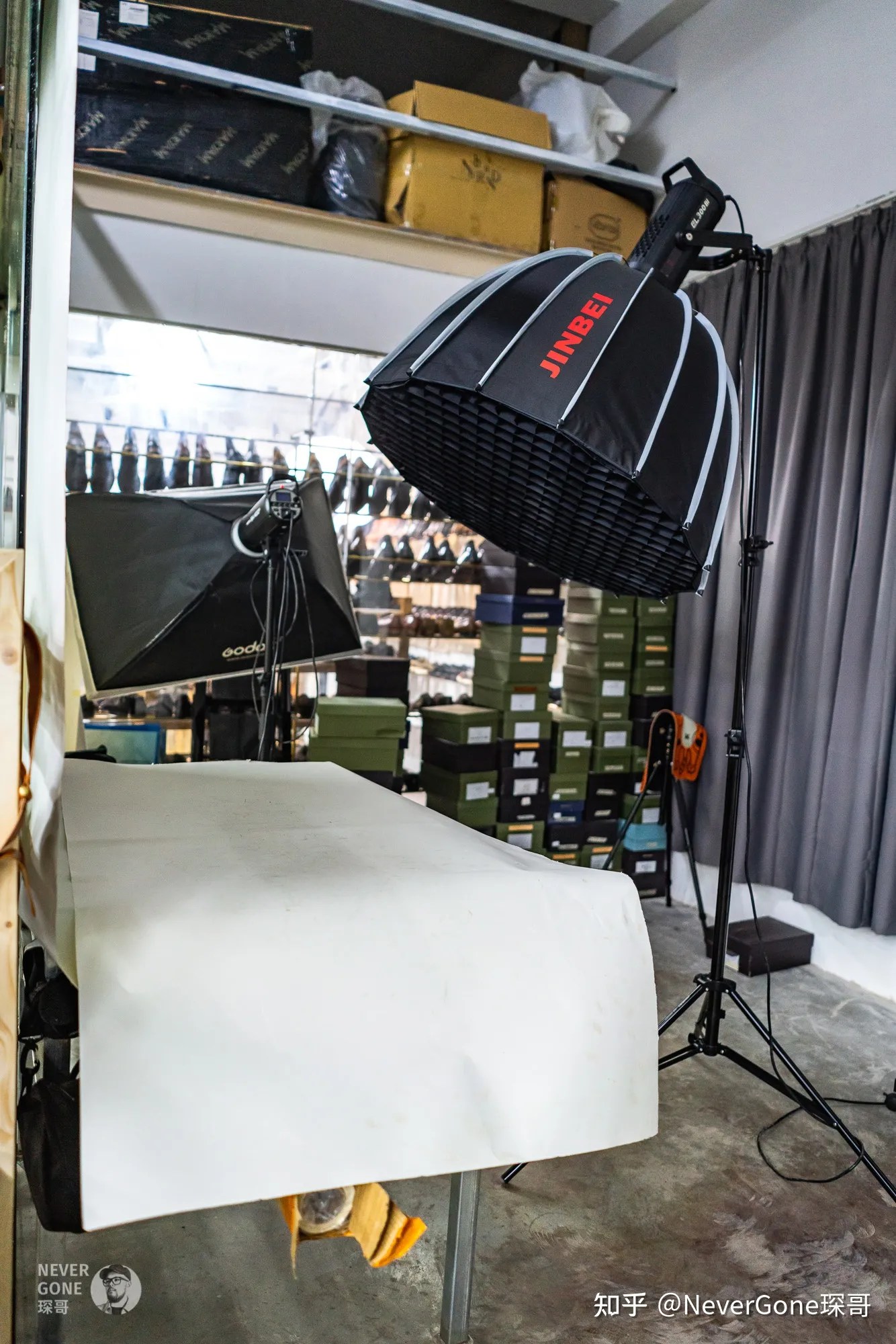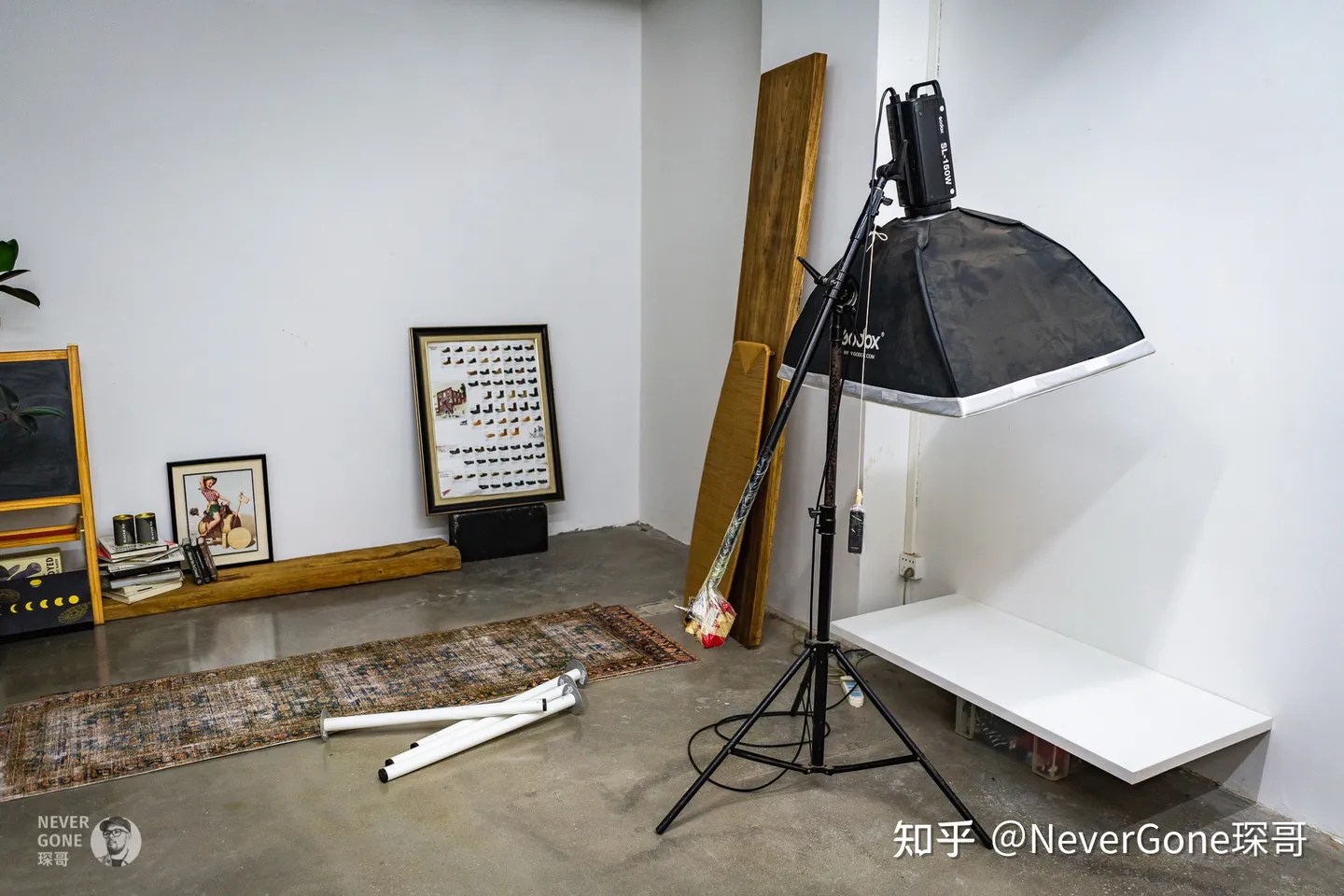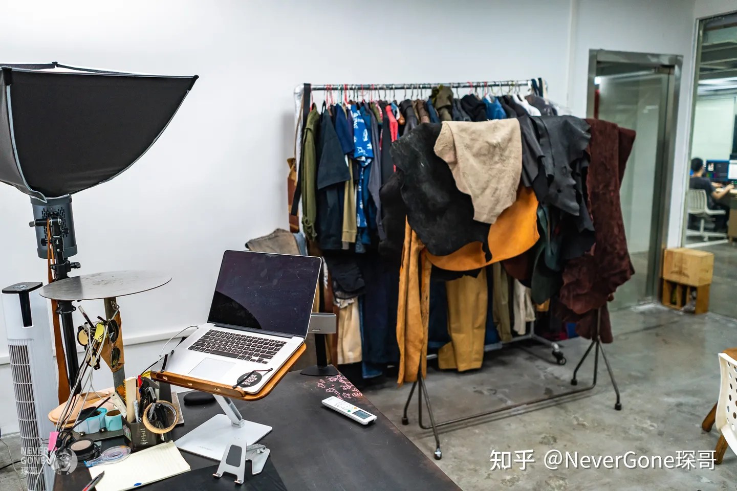 位于办公区的后方是拍摄区,拍摄区有各式的灯光以及拍摄道具等。可以看得出来强尼这几年对视觉方面的投入以及产品视觉效果的升级。
