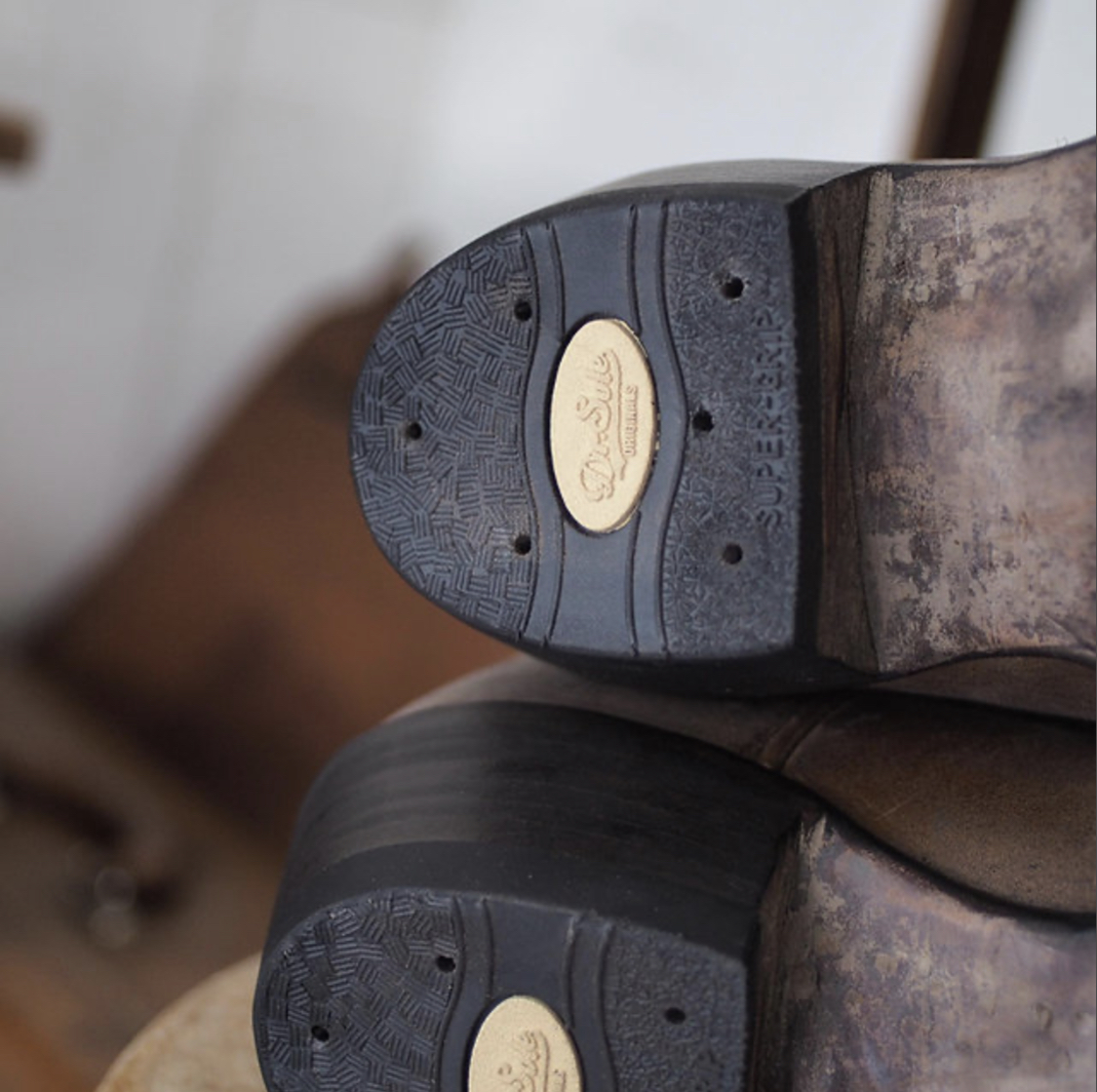 还有下面这个鞋跟。这是近期Dr. Sole专门给美式Cowboy Boots开发的鞋跟,灵感来源是主理人阿咏(Lin)所搜藏的古董牛仔鞋跟。这类型的鞋跟在工装靴市场实属少见,玩家们以后换后跟又有新选择了