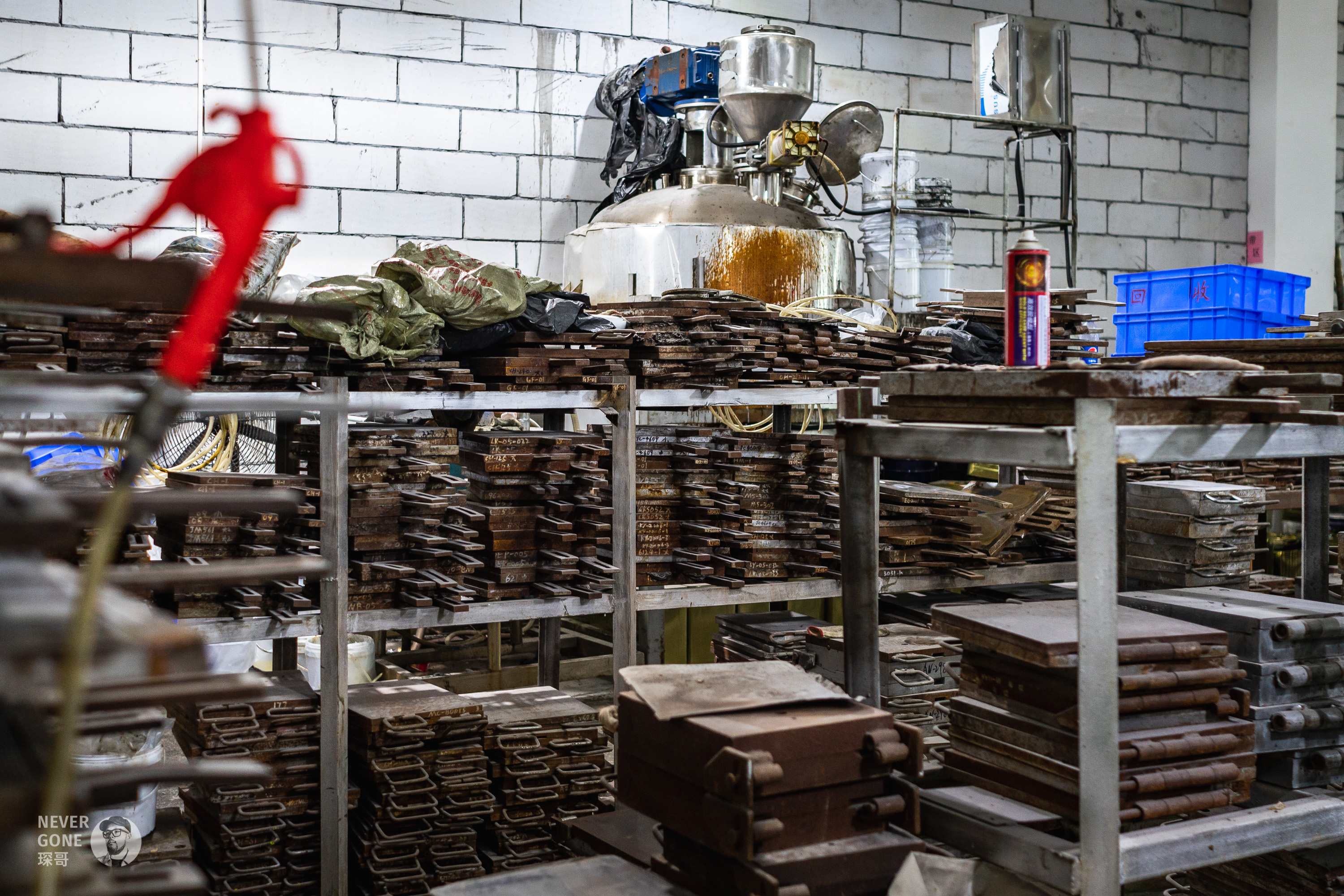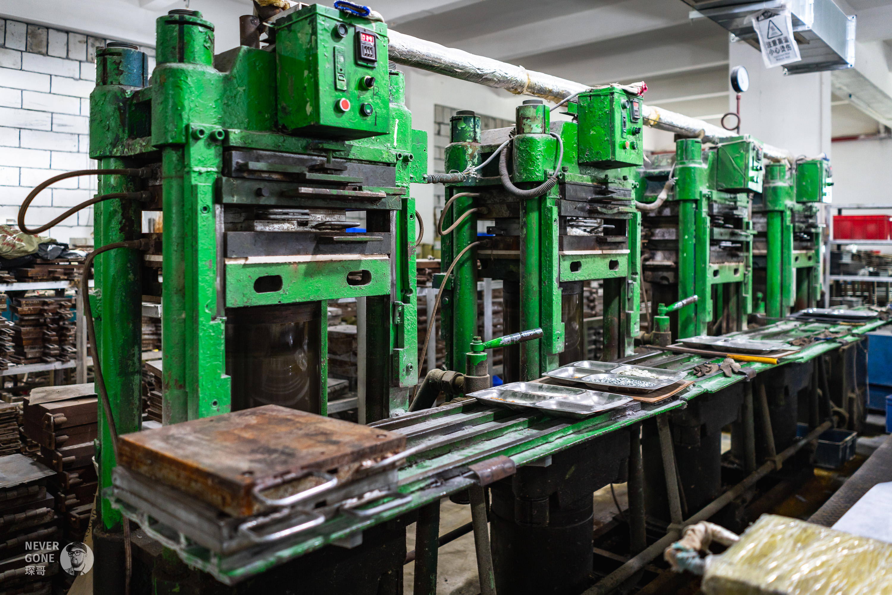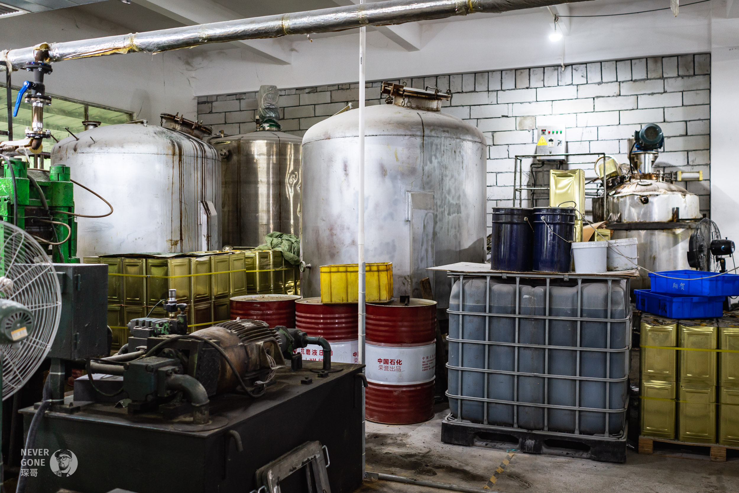 首先来到一楼,大致看了一下生产过程。其实橡胶产品的生产流程是比较简易直观的,没有靴子那么复杂,主要就是把各种原材料熬成半固体,然后倒入模具,等待一定时间,就做成橡胶底了