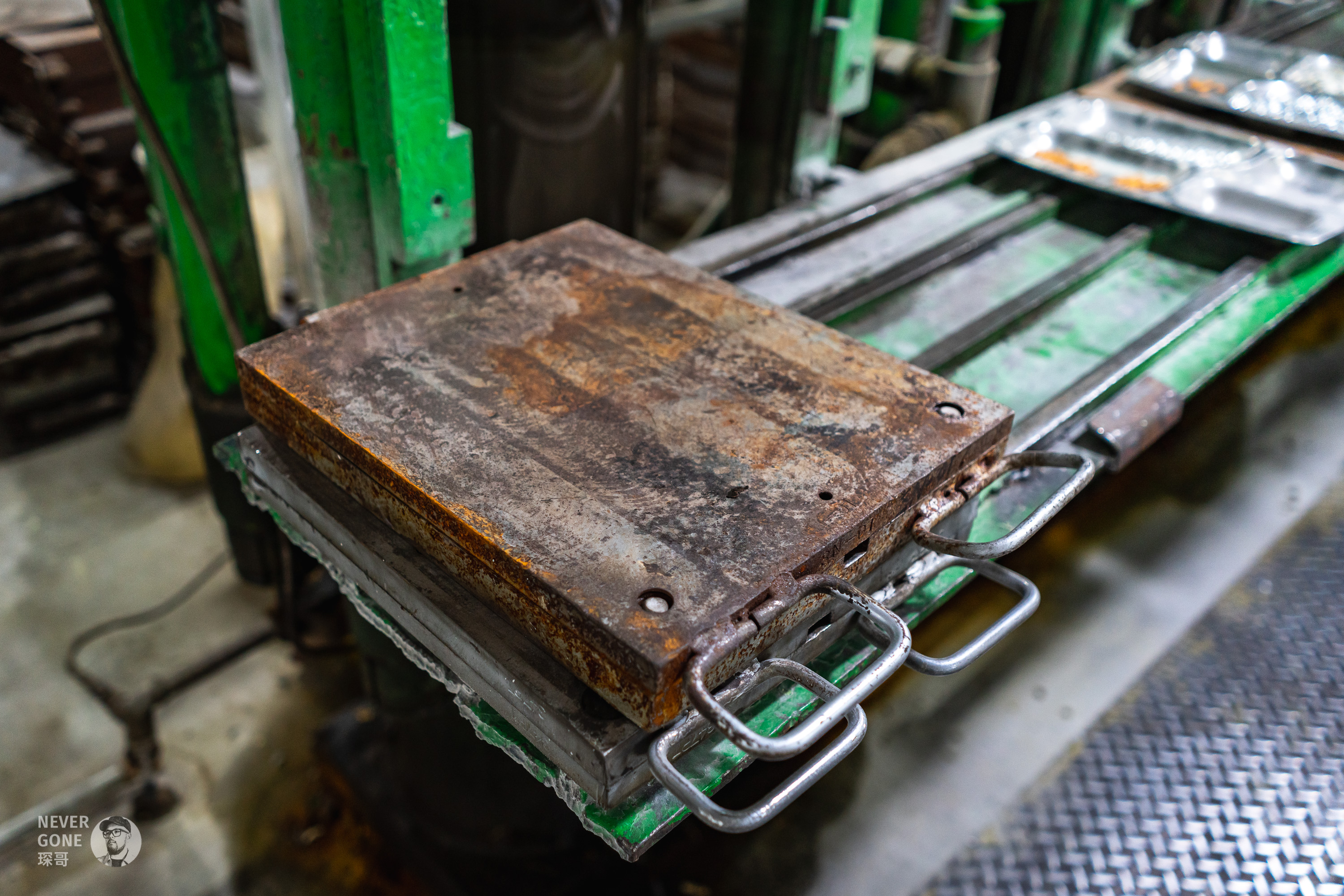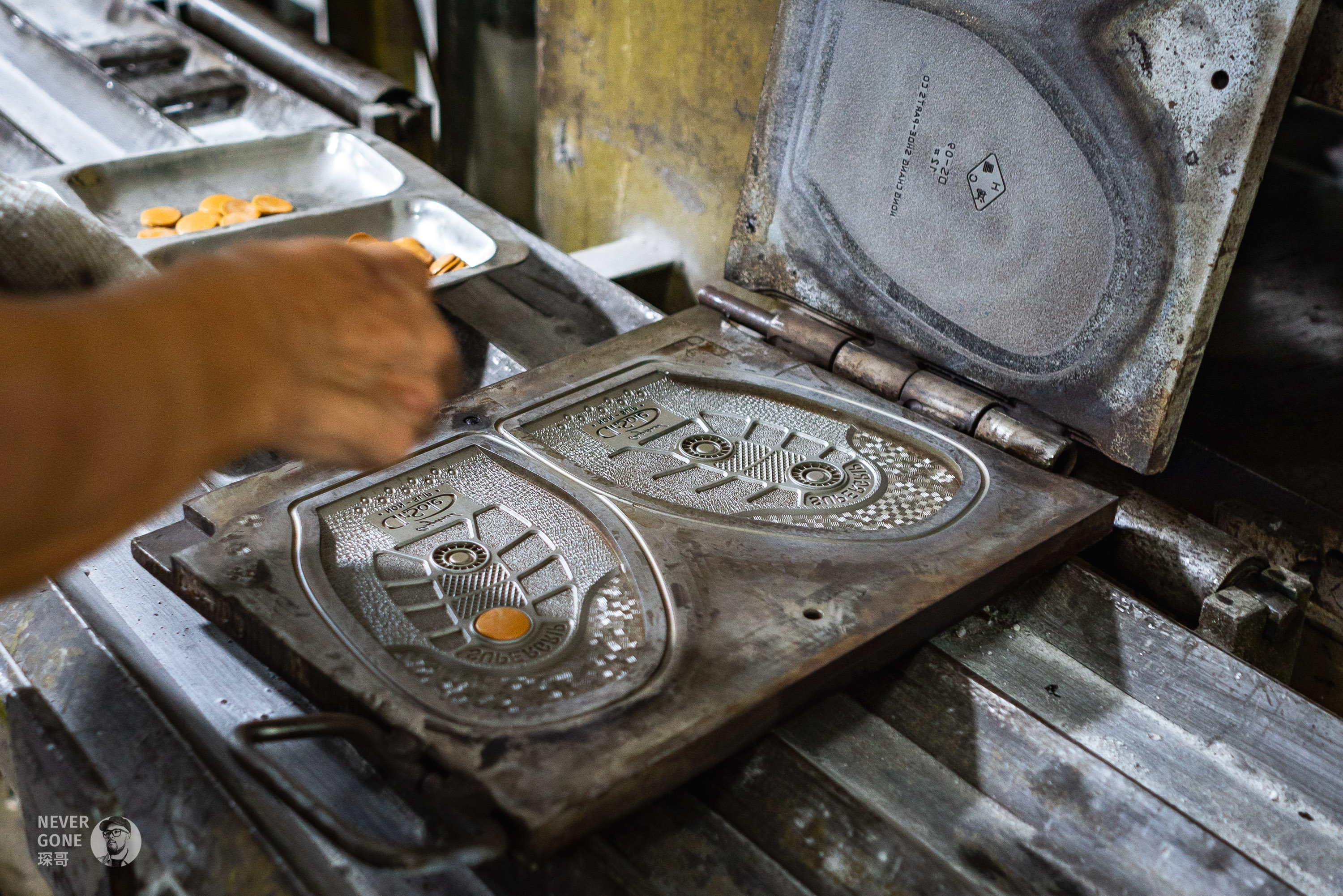 把混合物放入模具,再把模具放入下图这个绿色的机器加热一段时间,打开就是热腾腾新鲜出炉的Dr.Sole鞋底了