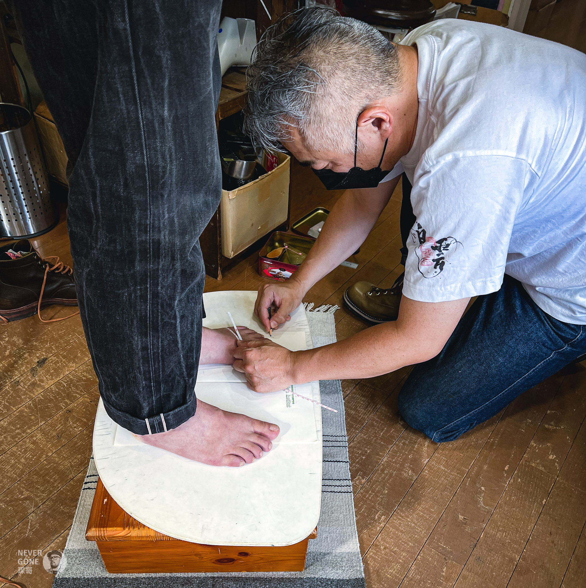 我之前一直在幻想白云能不能来料加工做双Kudu,我还想过人肉带一卷Kudu过去让他做。现在好了,他直接就可以做Kudu。于是,我冲了,体验到了日本贵式量脚与穿鞋服务