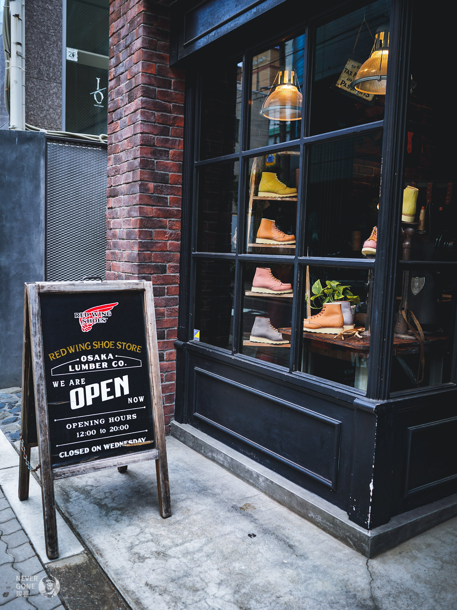 接着来到Red Wing Japan大阪店,外墙和两侧招牌很有感觉