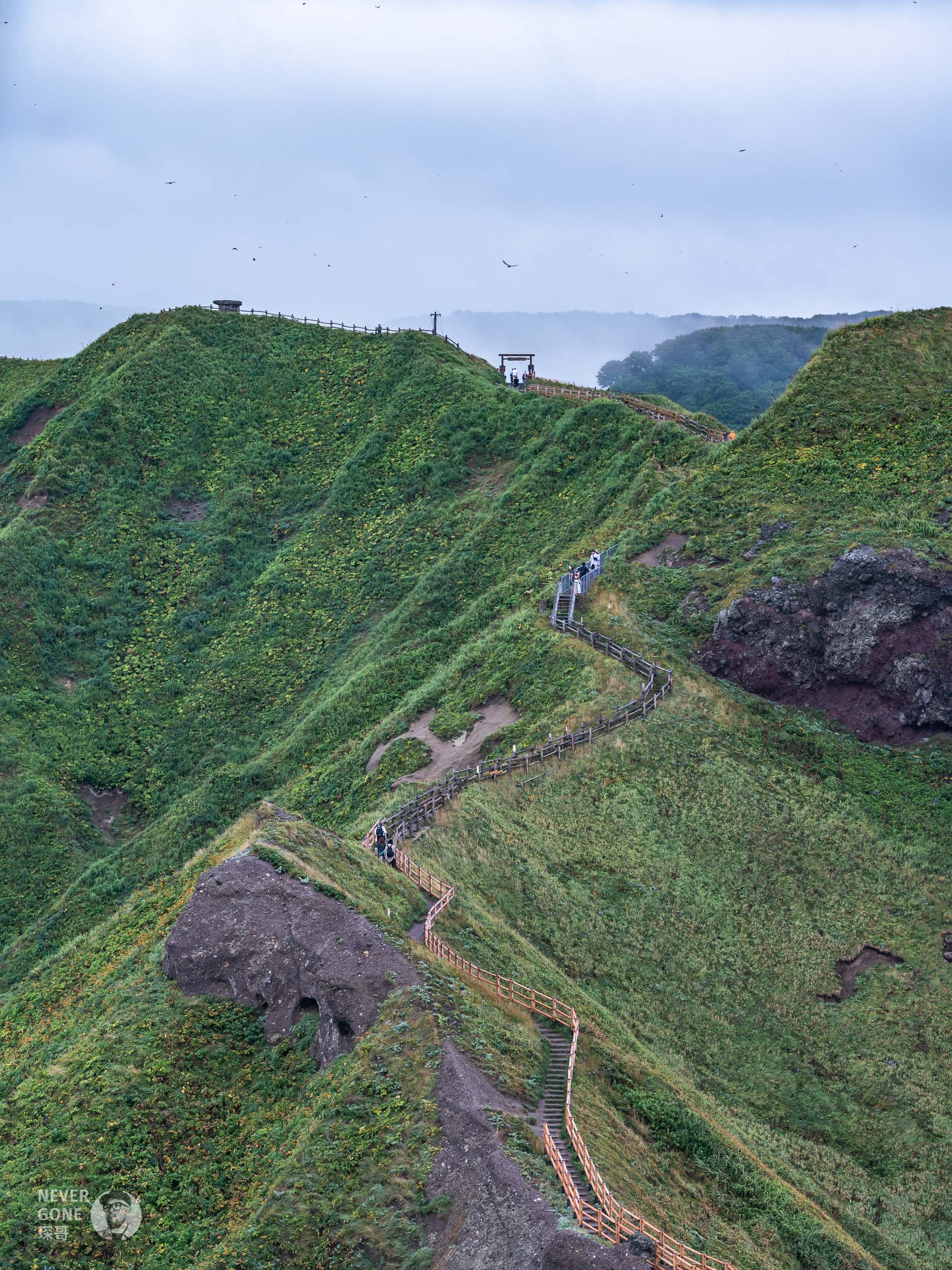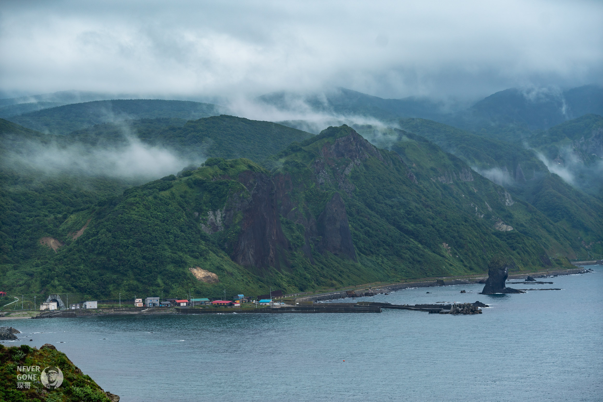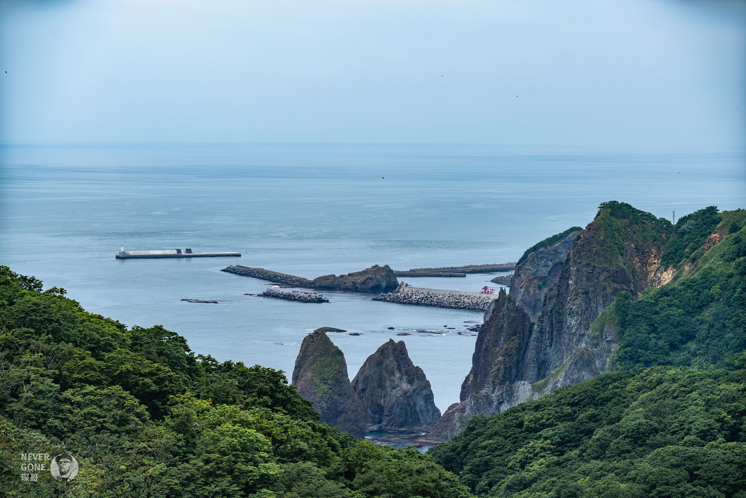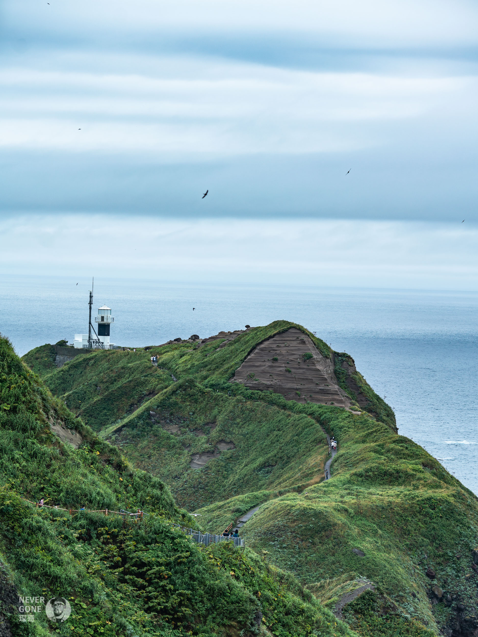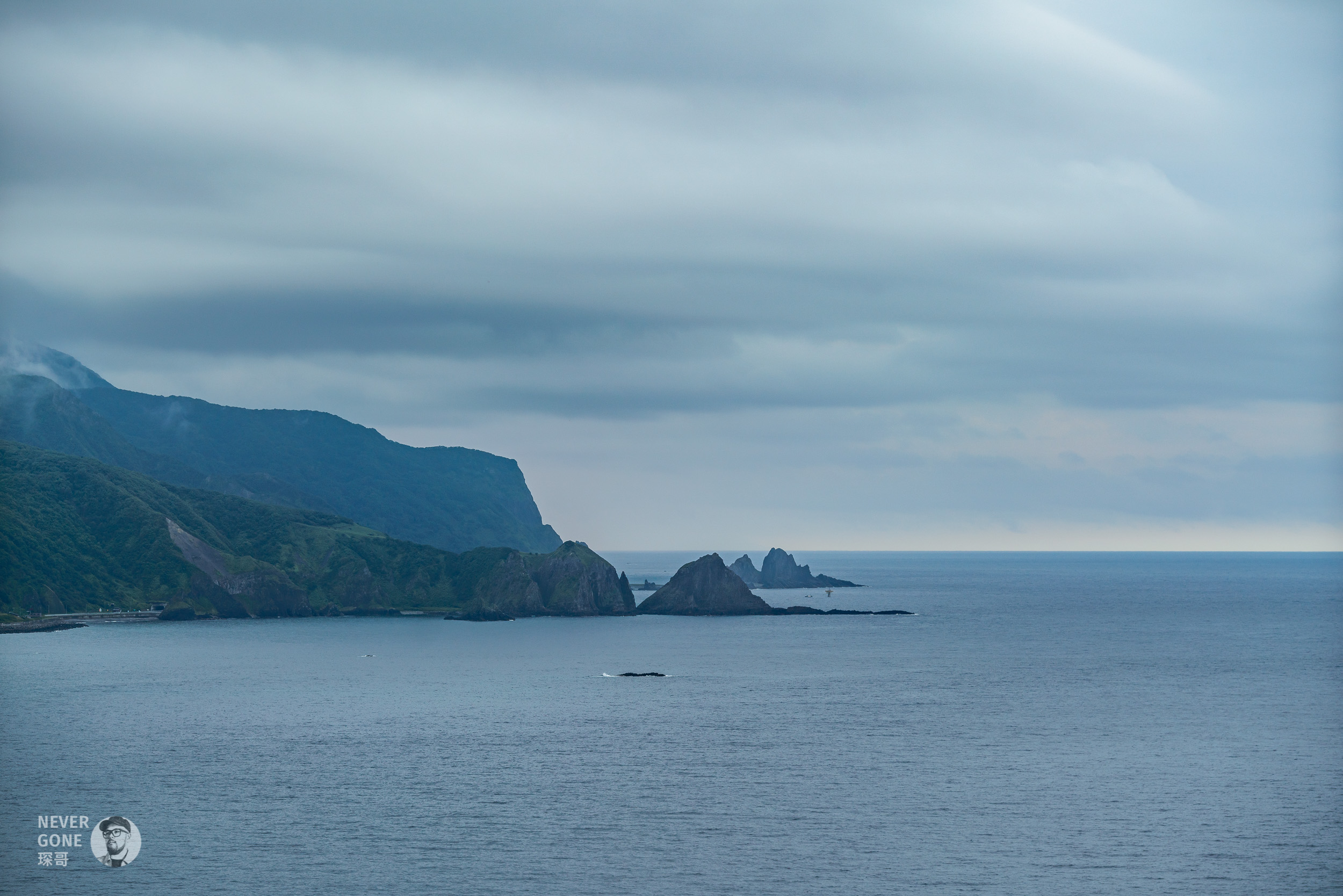 地球岬是位于北海道绘鞆半岛最南端向海洋突出的海岬,天气好的时候能看得很远,视觉化“地球是圆的”。可惜北海道这几天多云下雨,看起来不太明显