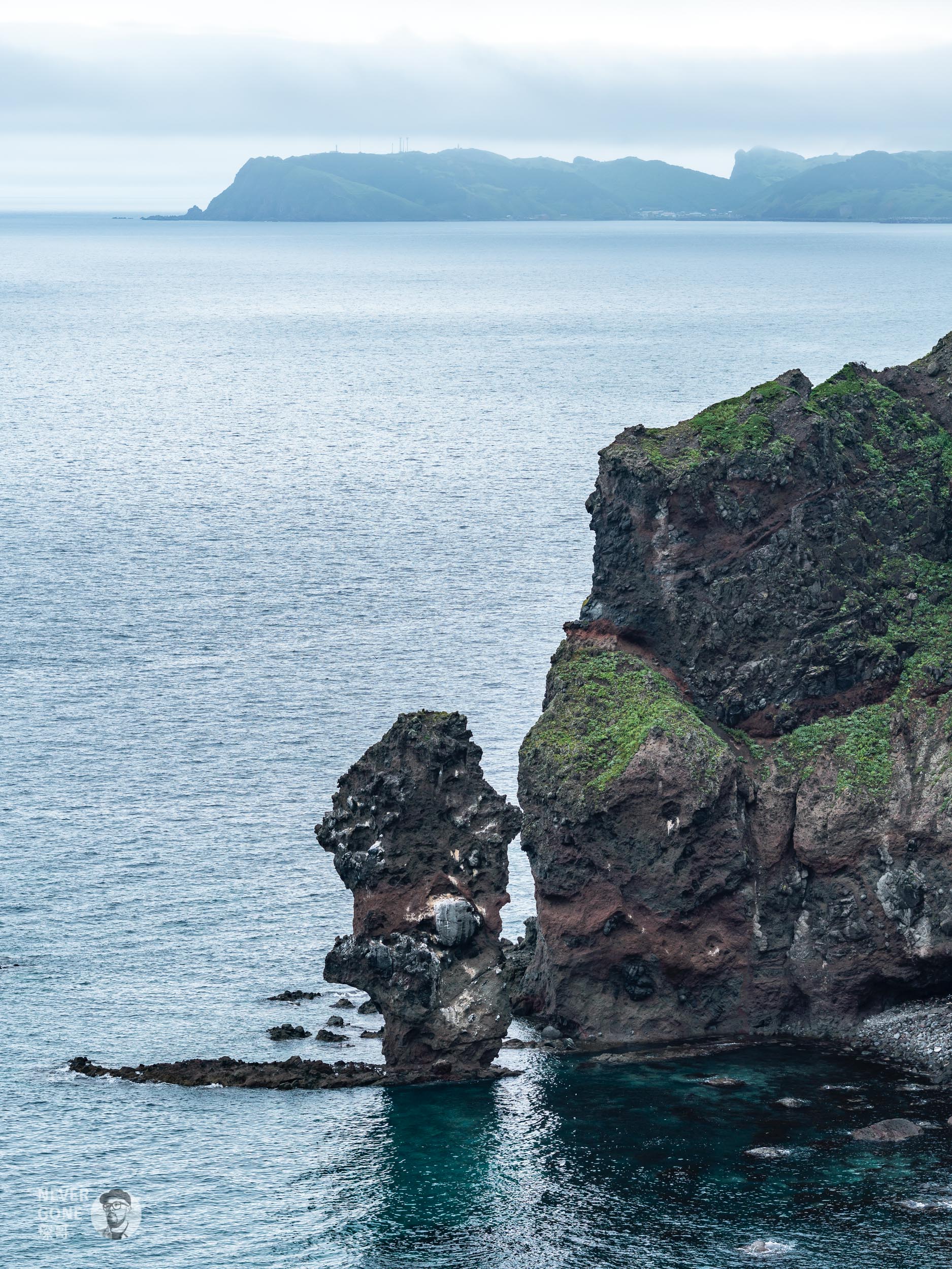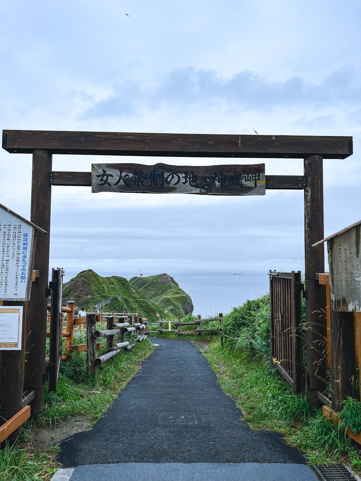 神威岬只有夏季风小的时候会开放大门。这个“女人禁止の地”牌匾背后有一个传说:先前此处原住民首领的女儿被心爱的男人抛弃后,一路追到了神威岬。看着自己心爱的人坐船离开,她留下了一个诅咒“但凡过往的日本船中乘有女性,一定会翻船沉没”。说完便跳入大海,化身为神威岩