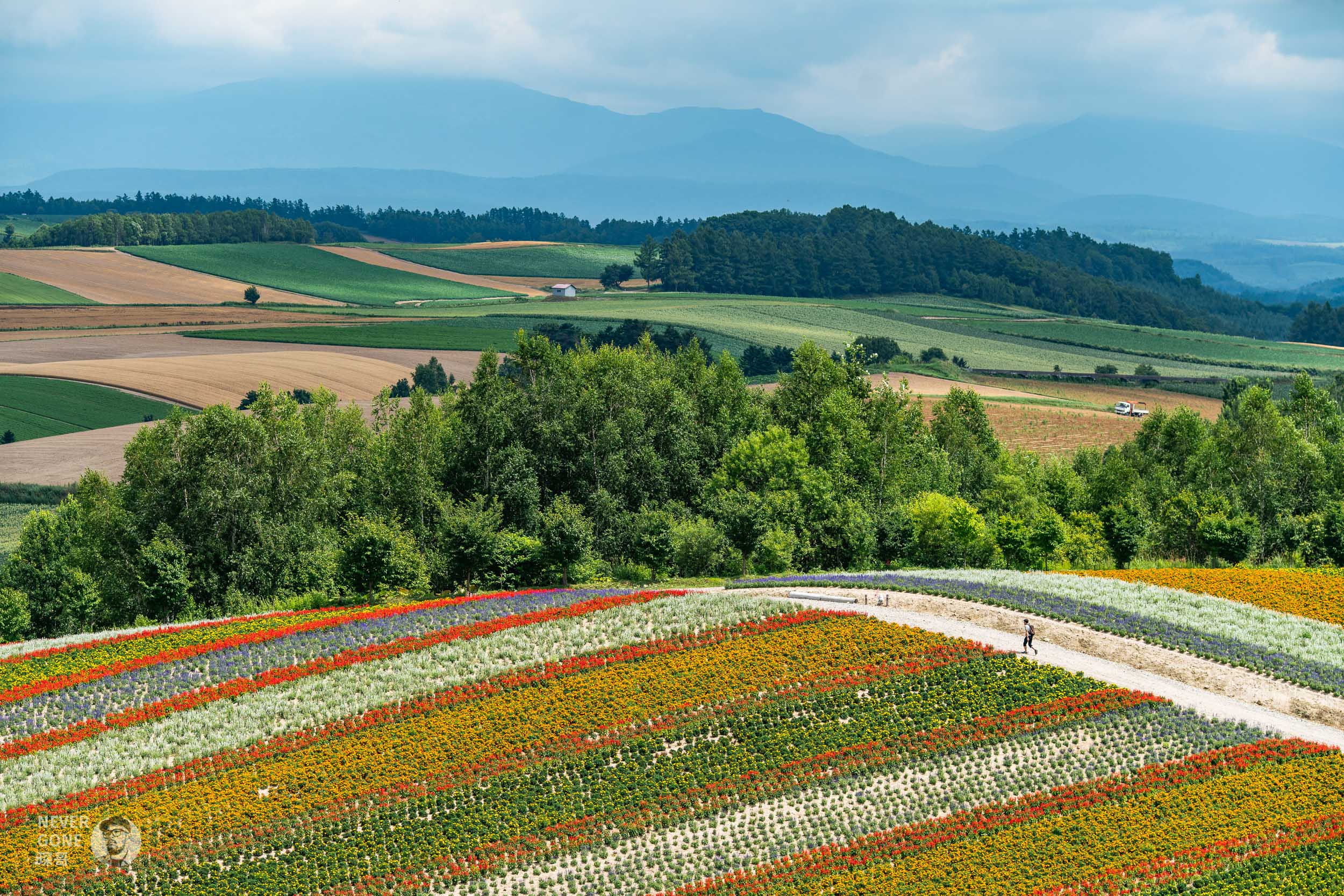 接着前往富良野很出名的富田农场,路上继续感受北海道乡村风光