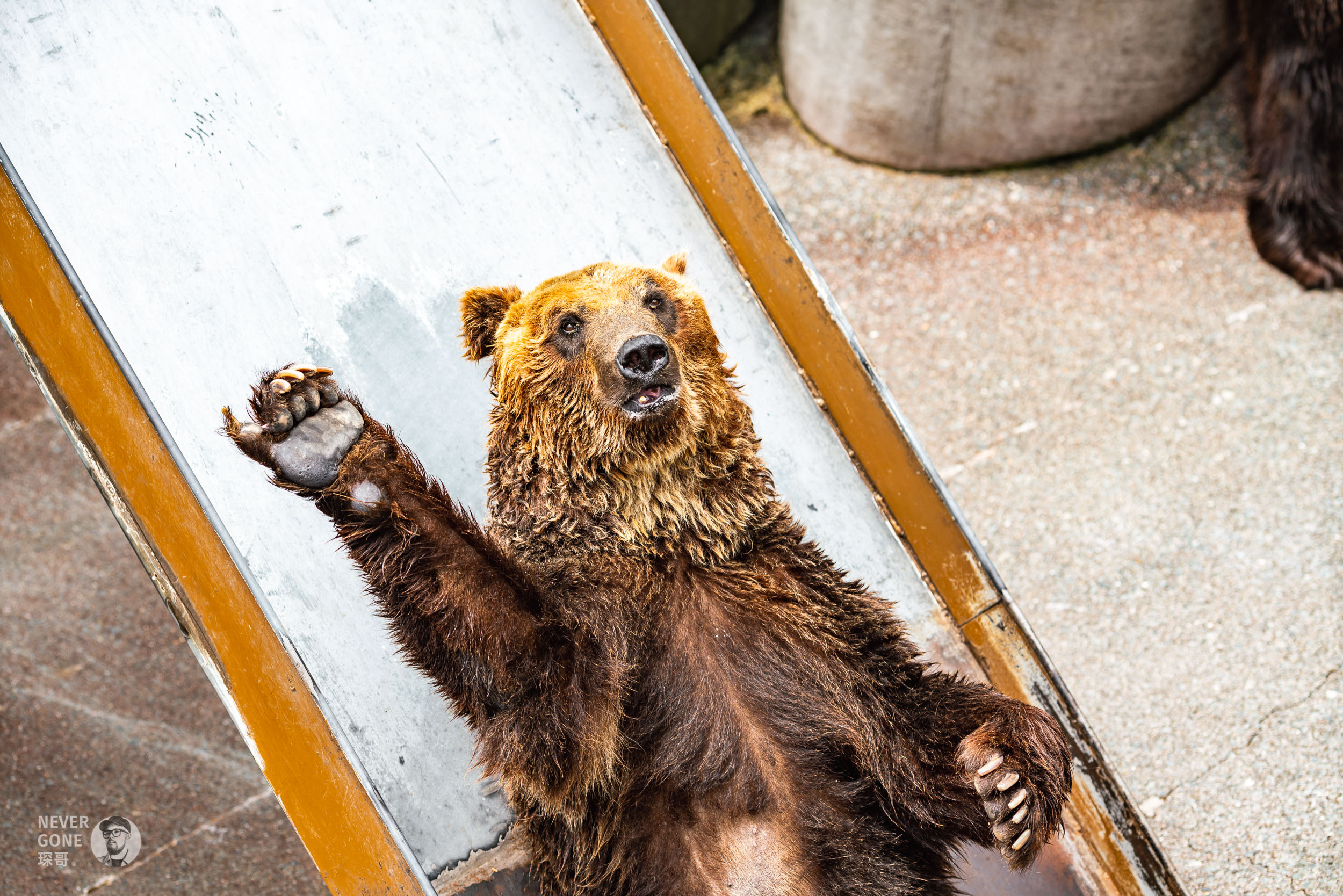 山下有个熊牧场,进去买饼干喂熊了,这熊掌暗示Give me 5