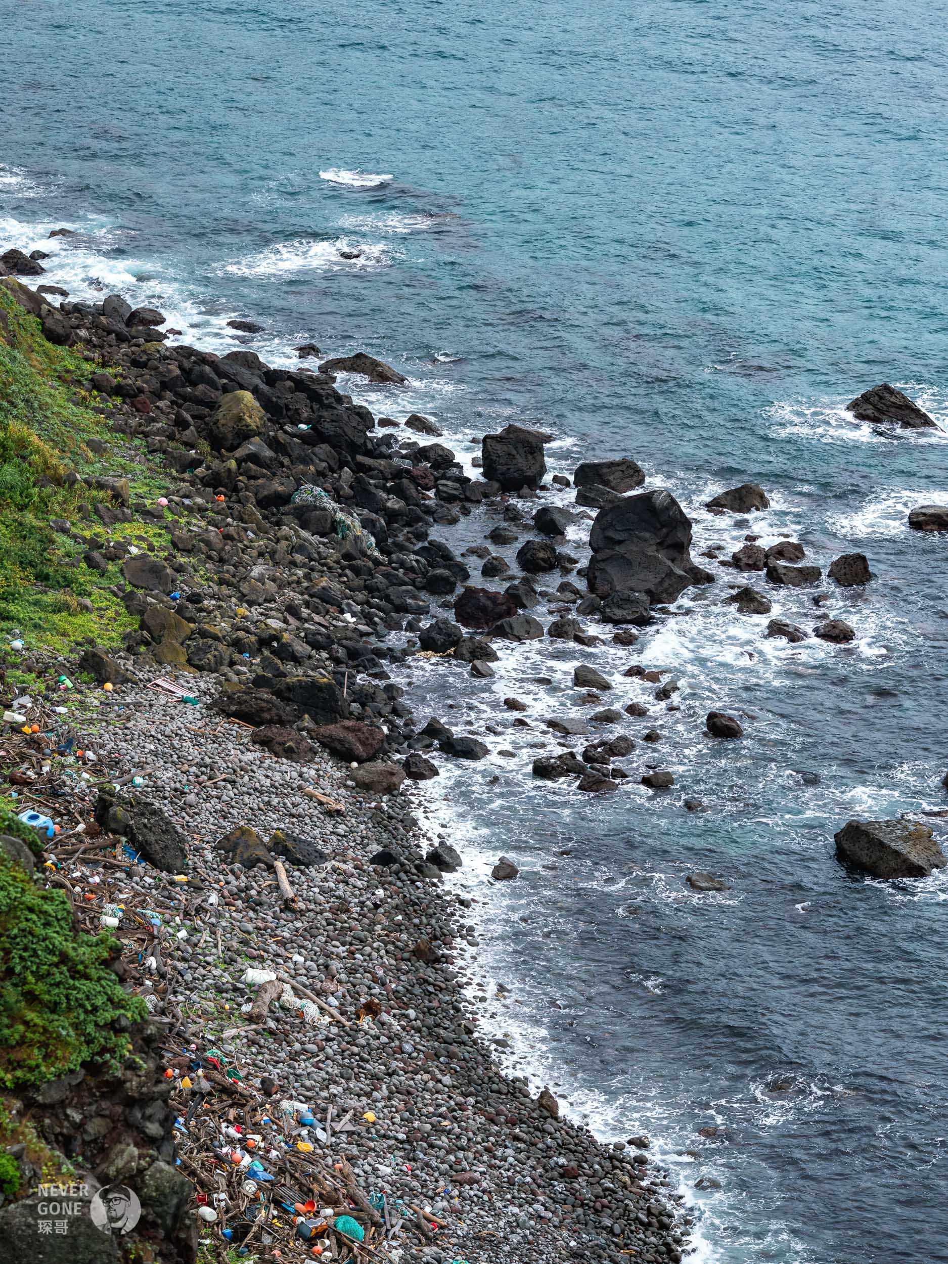 岸边垃圾不少,与之前干净的日本形成了一种反差