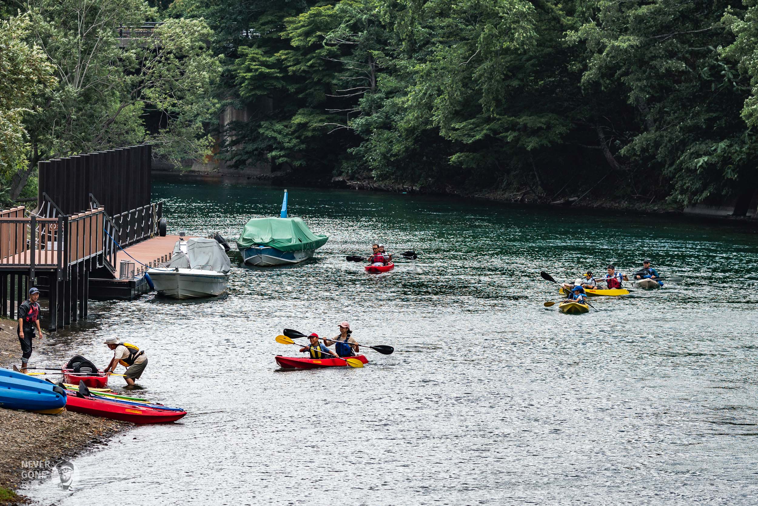 接着下山,碰到湖边玩皮划艇的家长孩子们