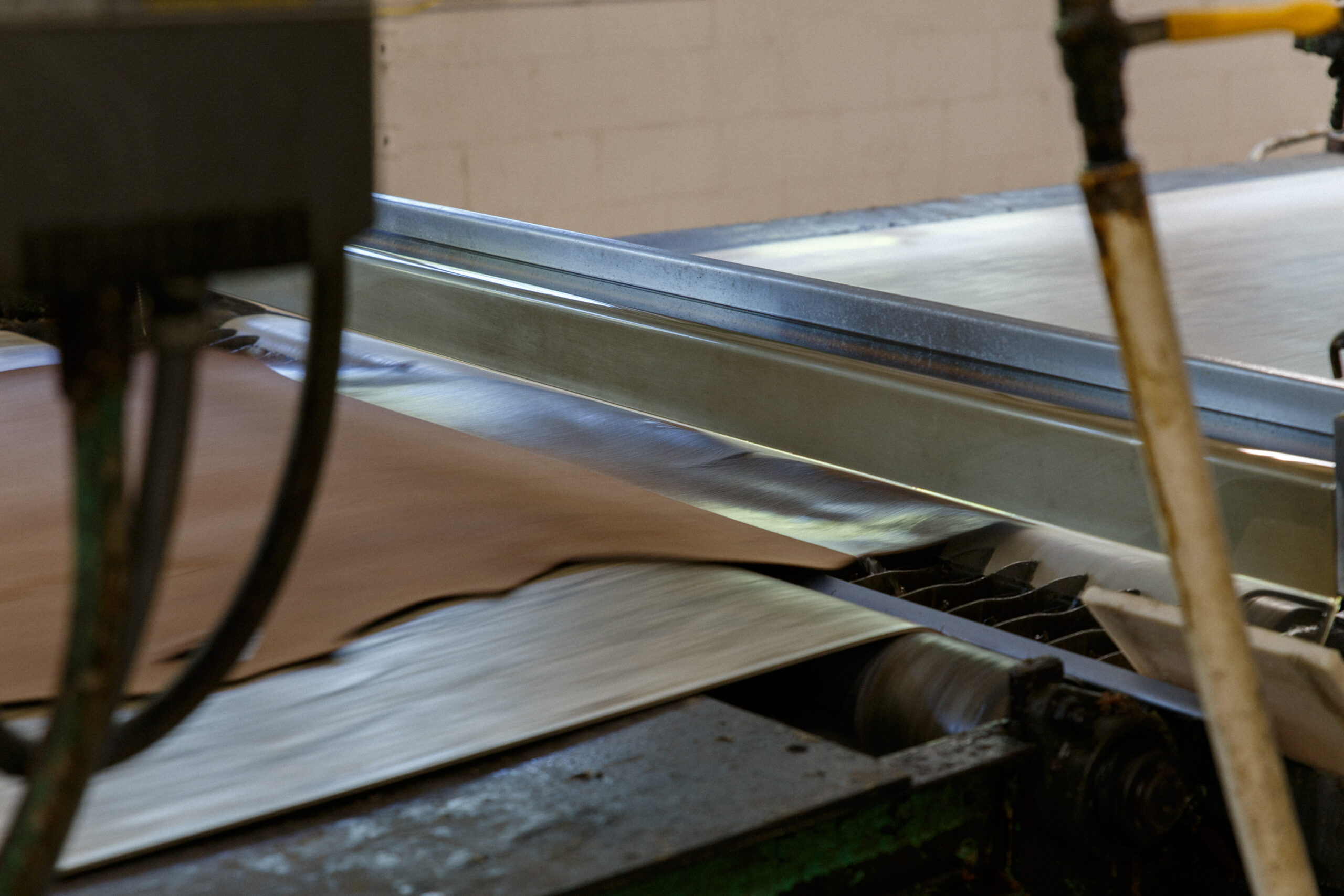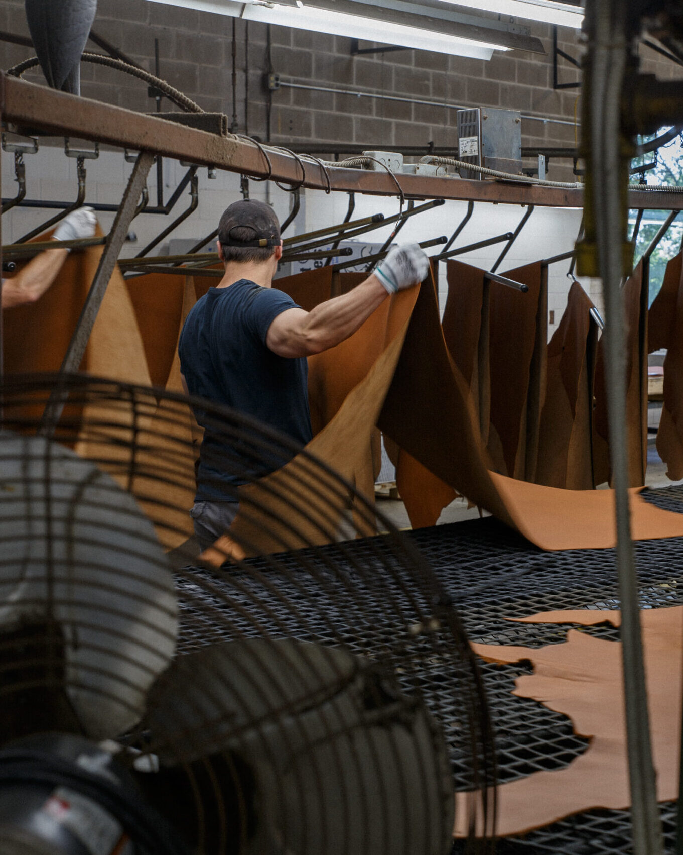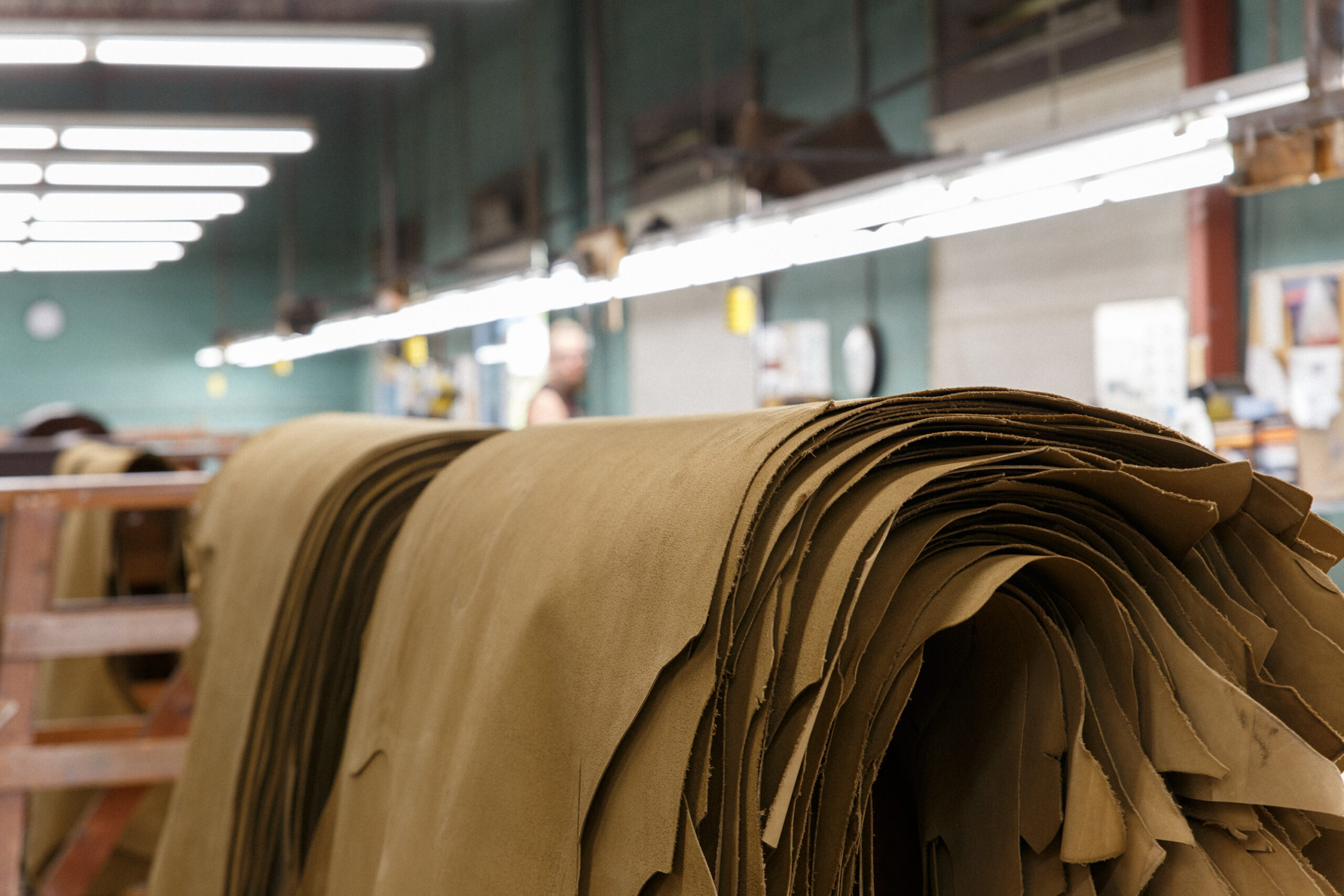 S.B. Foot 每年生产大约 1200 万平方英尺的皮革。考虑到制革工作的重复性和艰苦性,几乎很难相信这一产量。每天需要搬运几十甚至上百张整面的皮革,每一步都要对产品进行细致的检查。我们在那里看到的大多数人都在默默地专注而坚定地工作,与我们交谈过的人似乎都对他们所帮助创造的成果感到无比自豪。