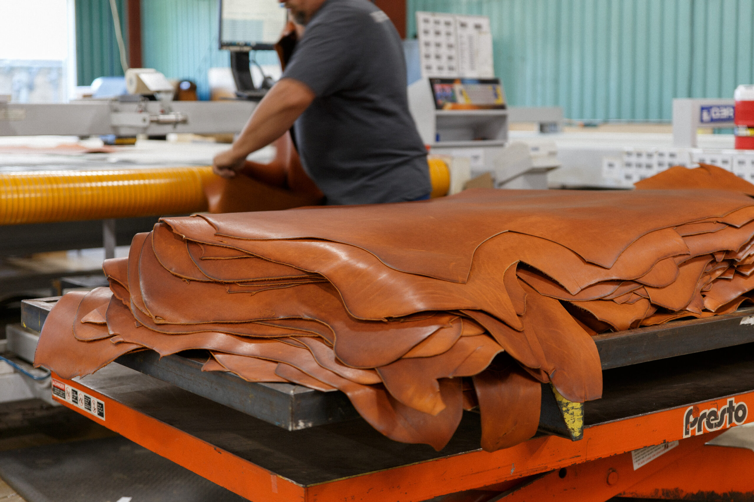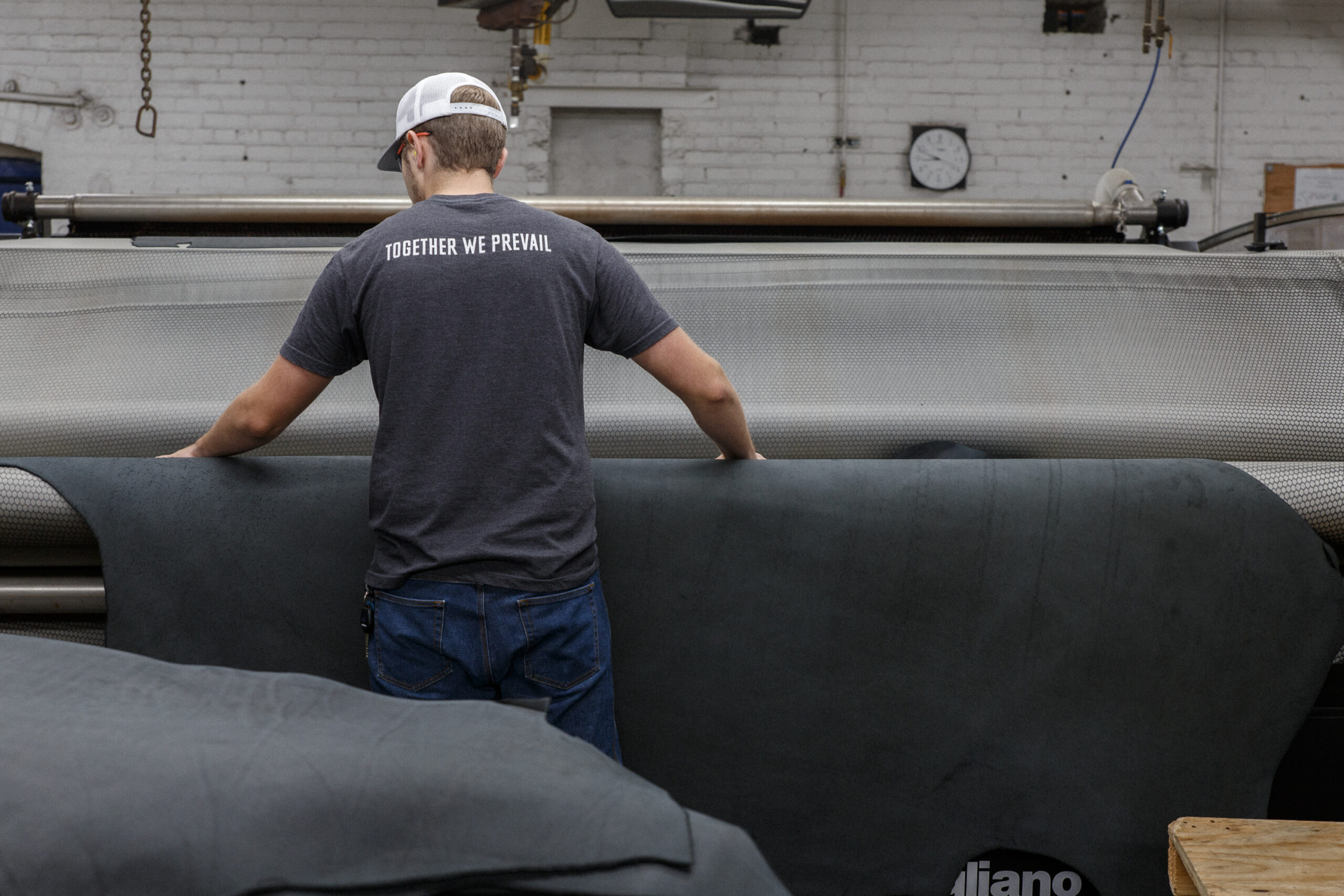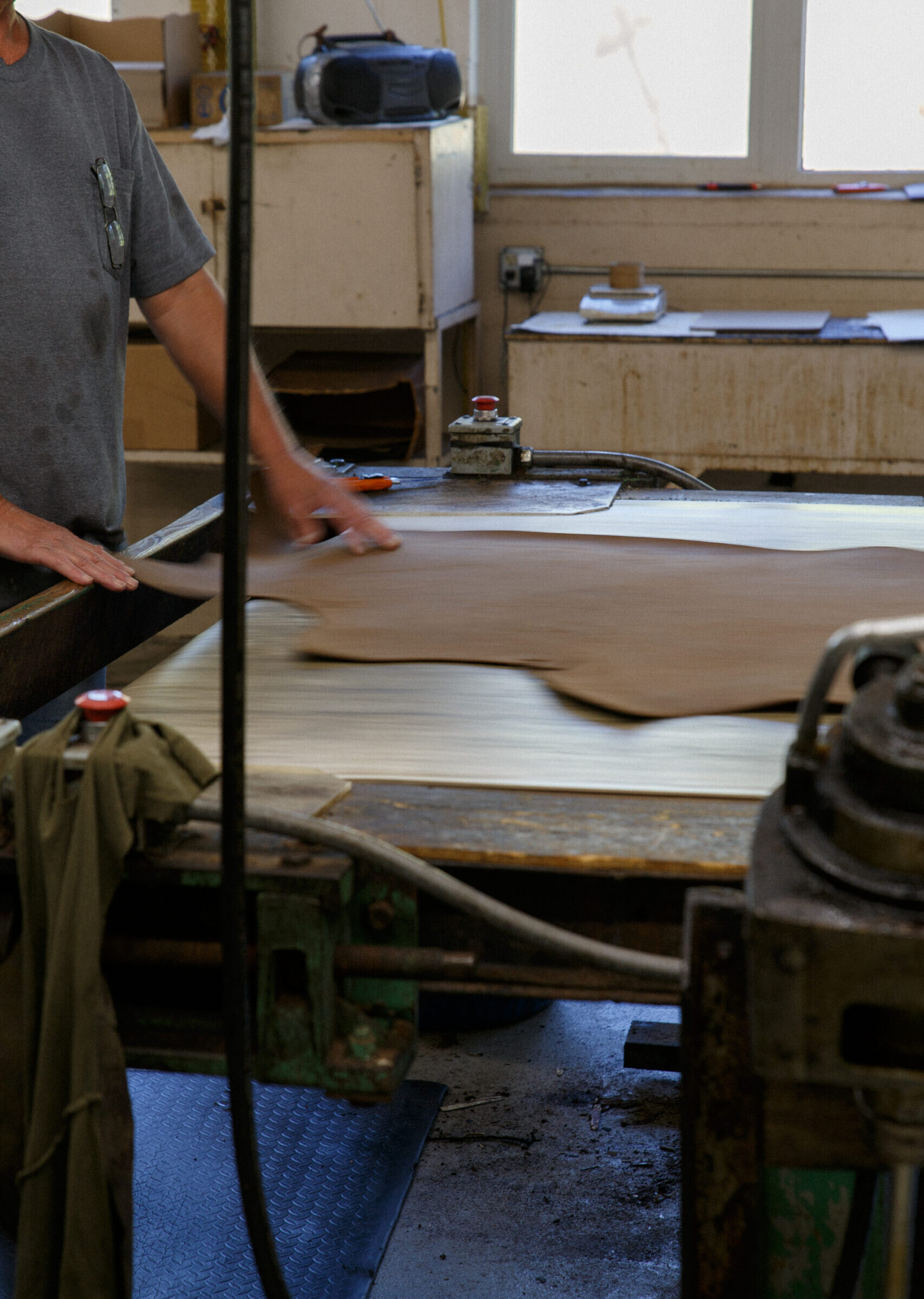 S.B. Foot 每年生产大约 1200 万平方英尺的皮革。考虑到制革工作的重复性和艰苦性,几乎很难相信这一产量。每天需要搬运几十甚至上百张整面的皮革,每一步都要对产品进行细致的检查。我们在那里看到的大多数人都在默默地专注而坚定地工作,与我们交谈过的人似乎都对他们所帮助创造的成果感到无比自豪。