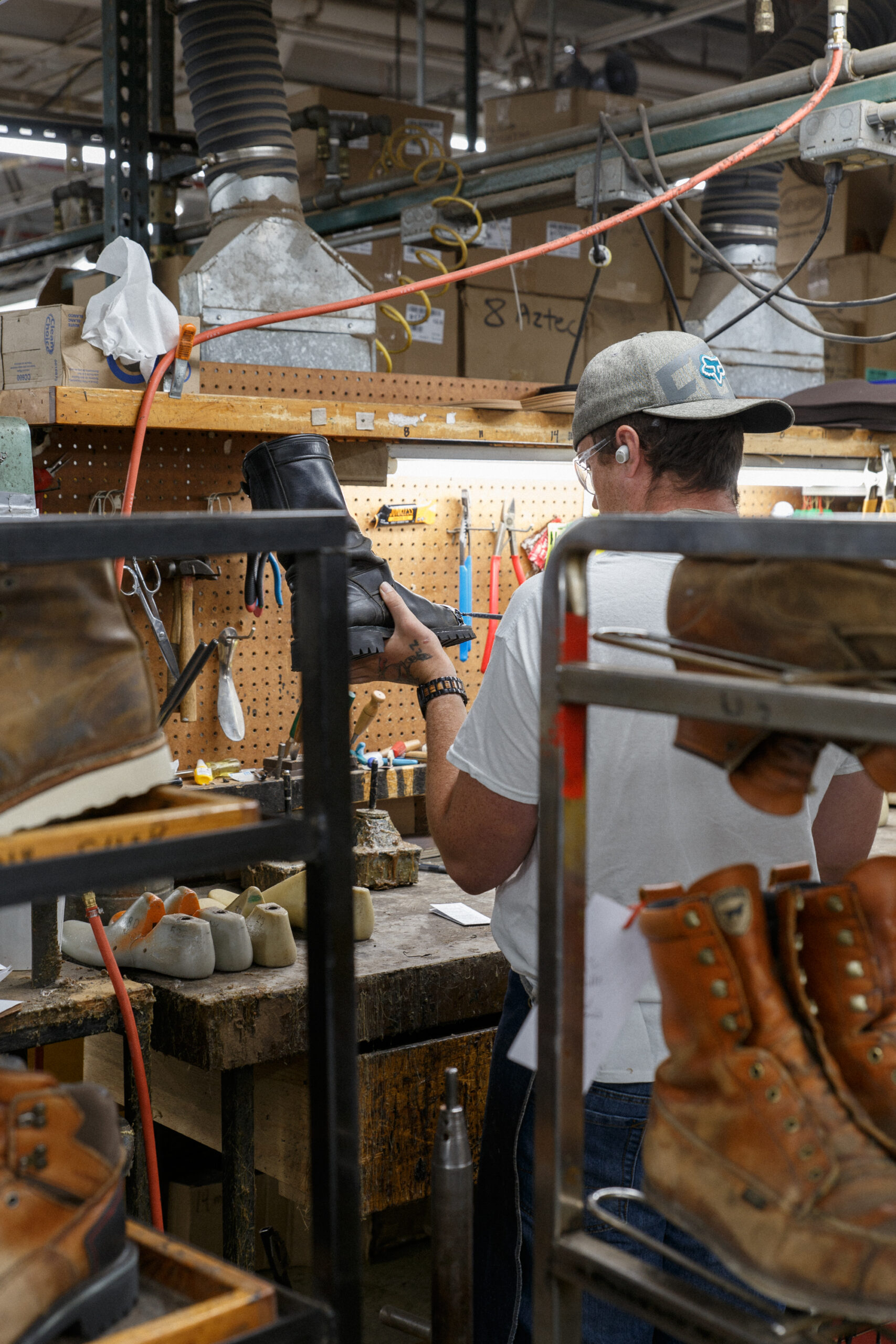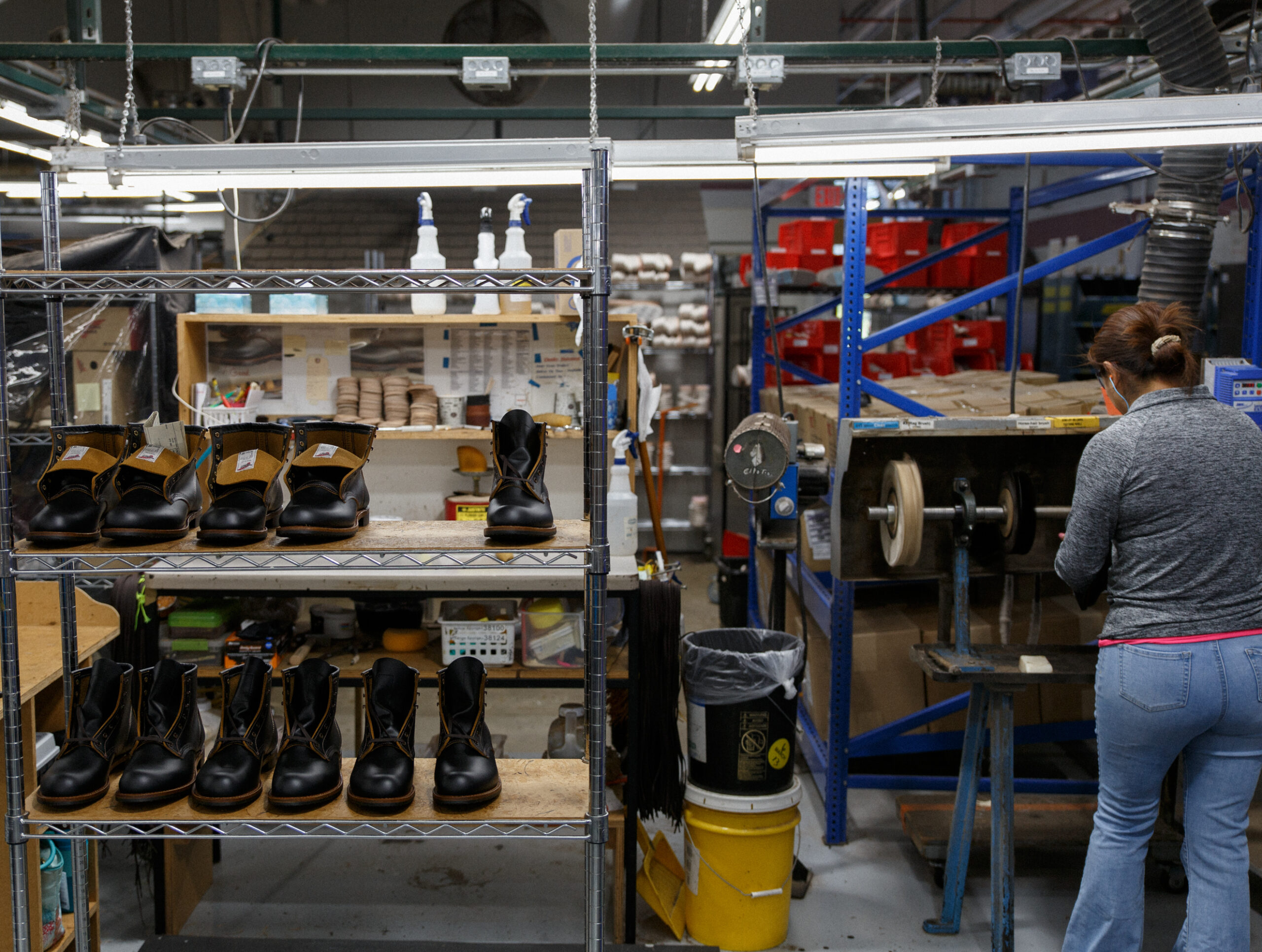 我看得出,与我们交谈过的鞋厂员工都有点疲惫–任何一种制鞋工作都不轻松–但他们还是很高兴能在这里工作。鞋厂中存在着一种明确无误的氛围,这种氛围让我们感受到这家工厂对红翼社区的人们来说非常重要,就像 S.B. Foot 的同行们一样,Burnside 的鞋匠们也为自己的工作感到无比自豪。