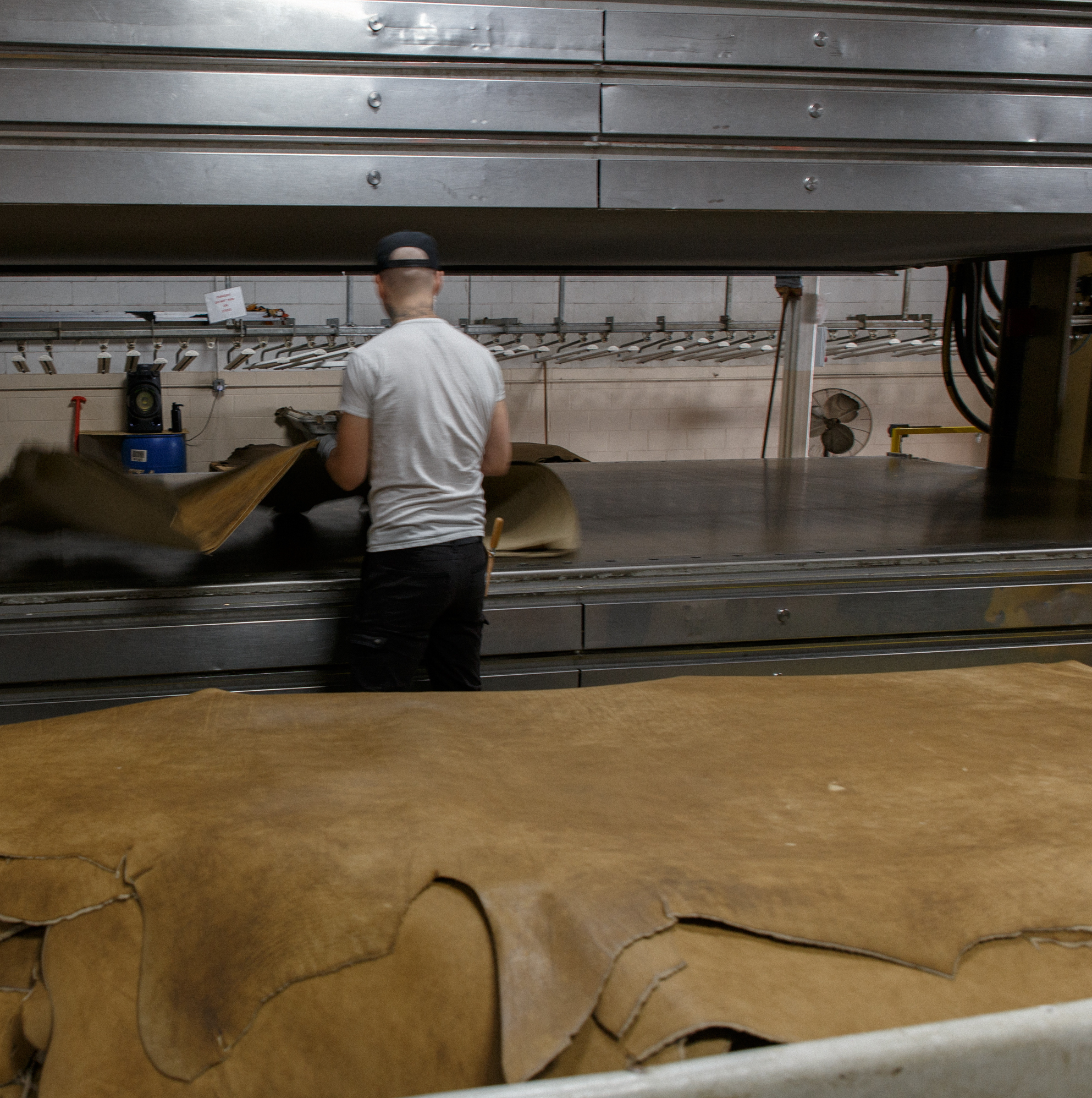 S.B. Foot 的牛皮主要来自红翼方圆 600 英里内的地区。但当牛皮到达制革厂时,它们已经是 “蓝湿皮”了–铬鞣革的早期基本阶段,一直处于湿润状态(由于使用了铬盐,所以是蓝色的),以保持新鲜。这种准备工作由位于南圣保罗的Twin City制革厂完成,该厂负责脱毛、存放、铬鞣等繁杂工作,从而将生皮变为蓝湿皮,最终成为 S.B. Foot 的众多皮革产品之一。