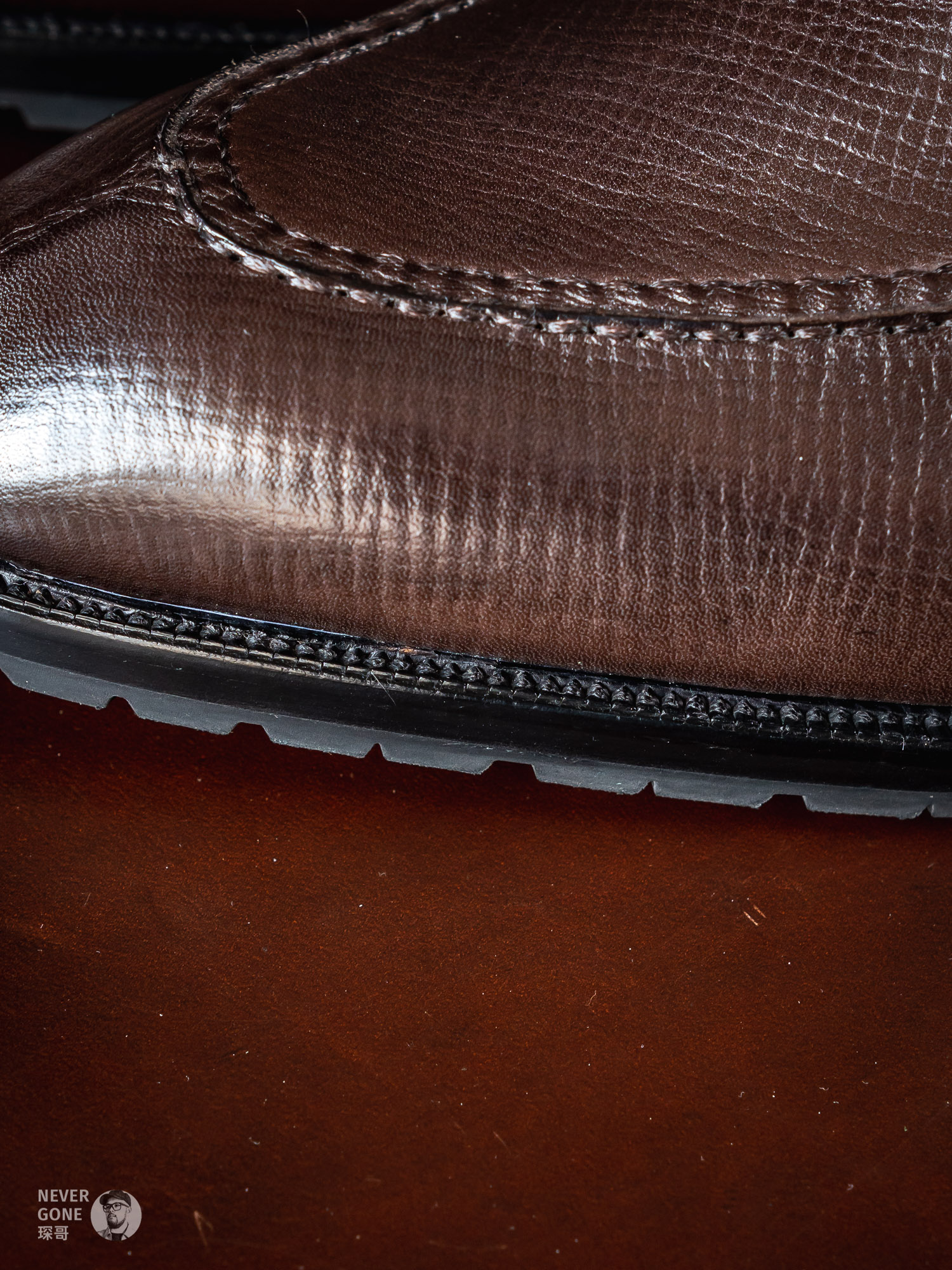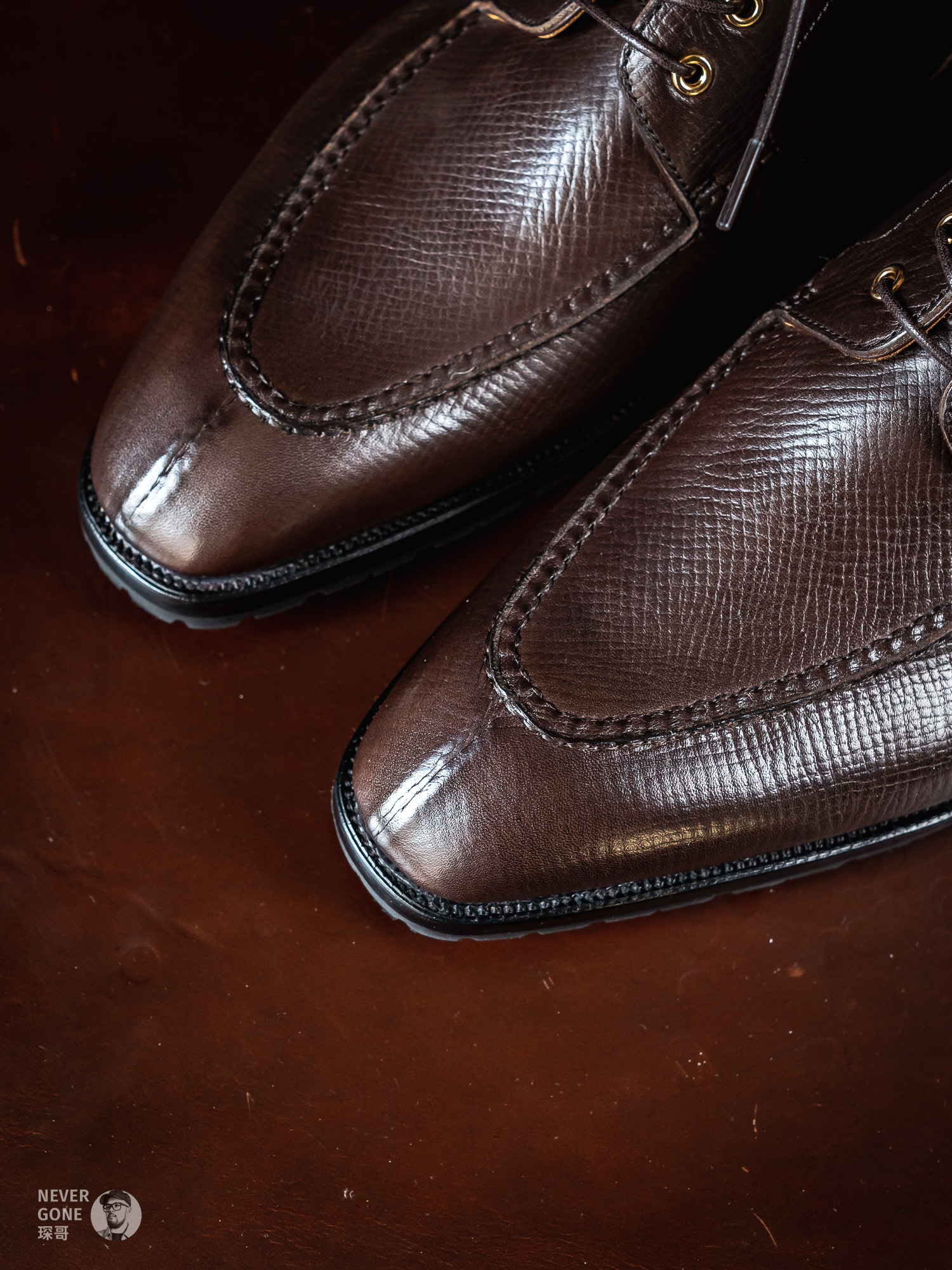 Utah这种压纹皮,基本上后期不会穿出很明显的旧化了,毕竟是正装鞋常用的小牛皮,讲究的就是一个历久弥新