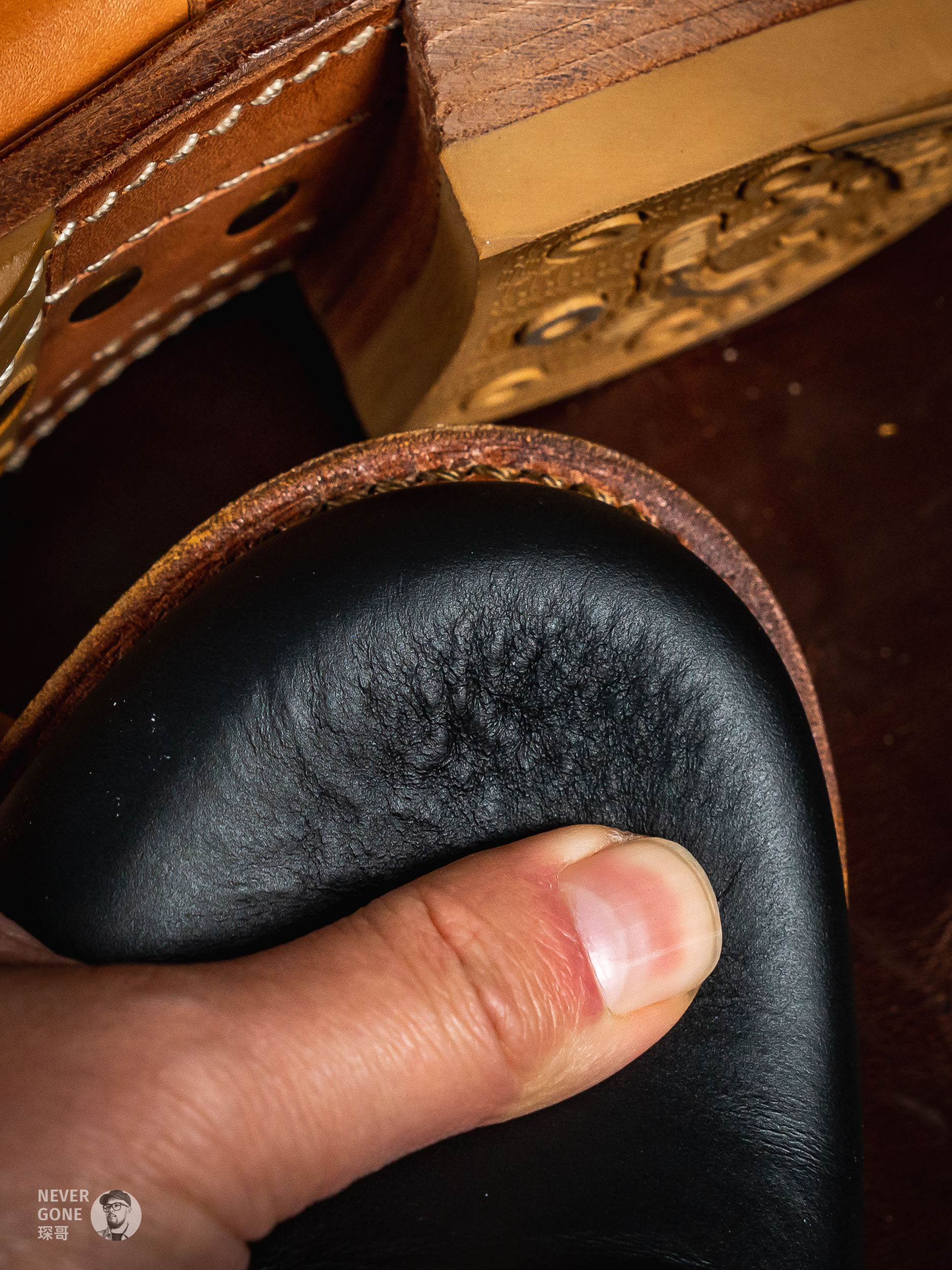 Gro-Cord Medallion Sole鞋底,其实就是把前掌皮大底铲薄了一部分,所以前掌厚度薄一些,更软一点点