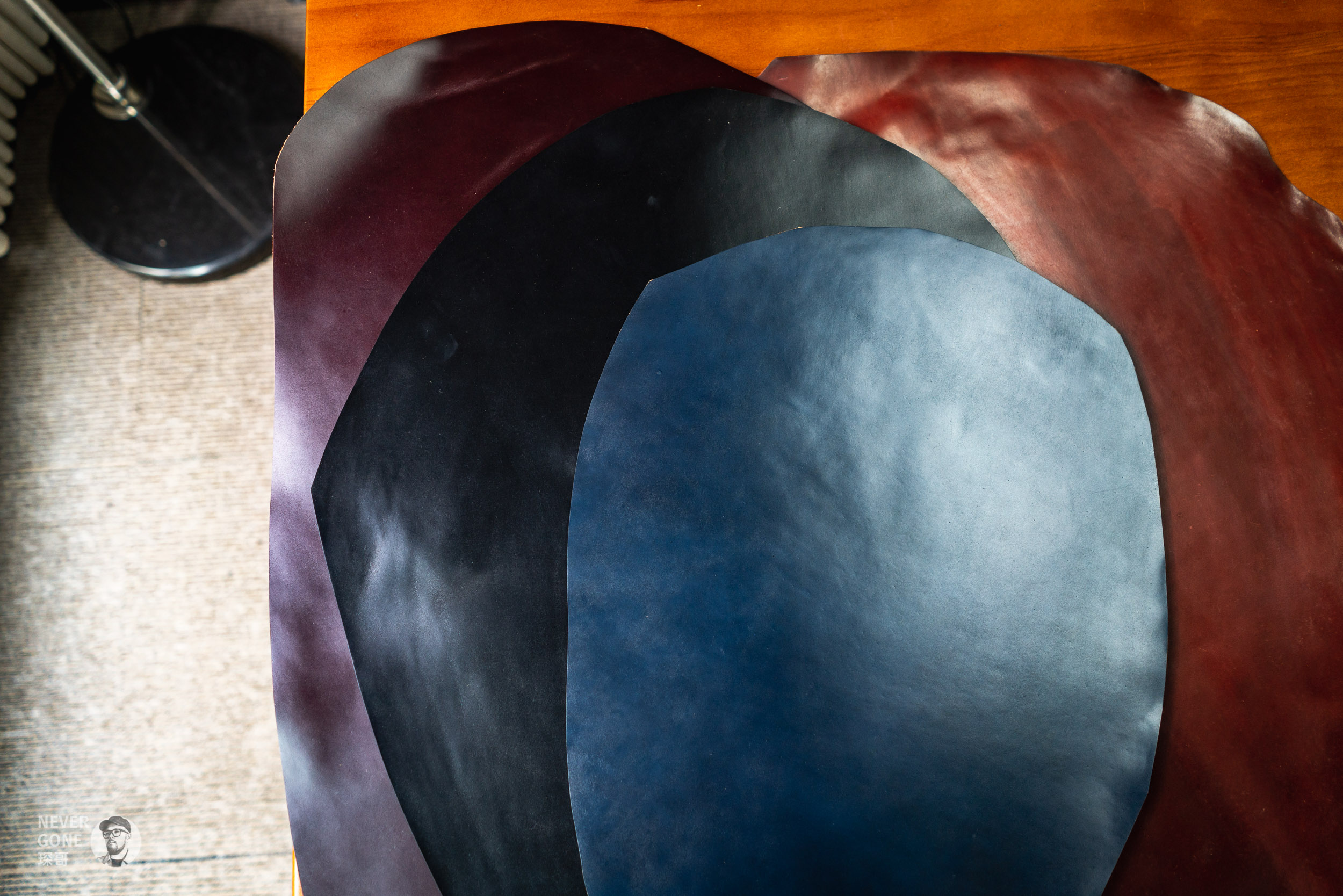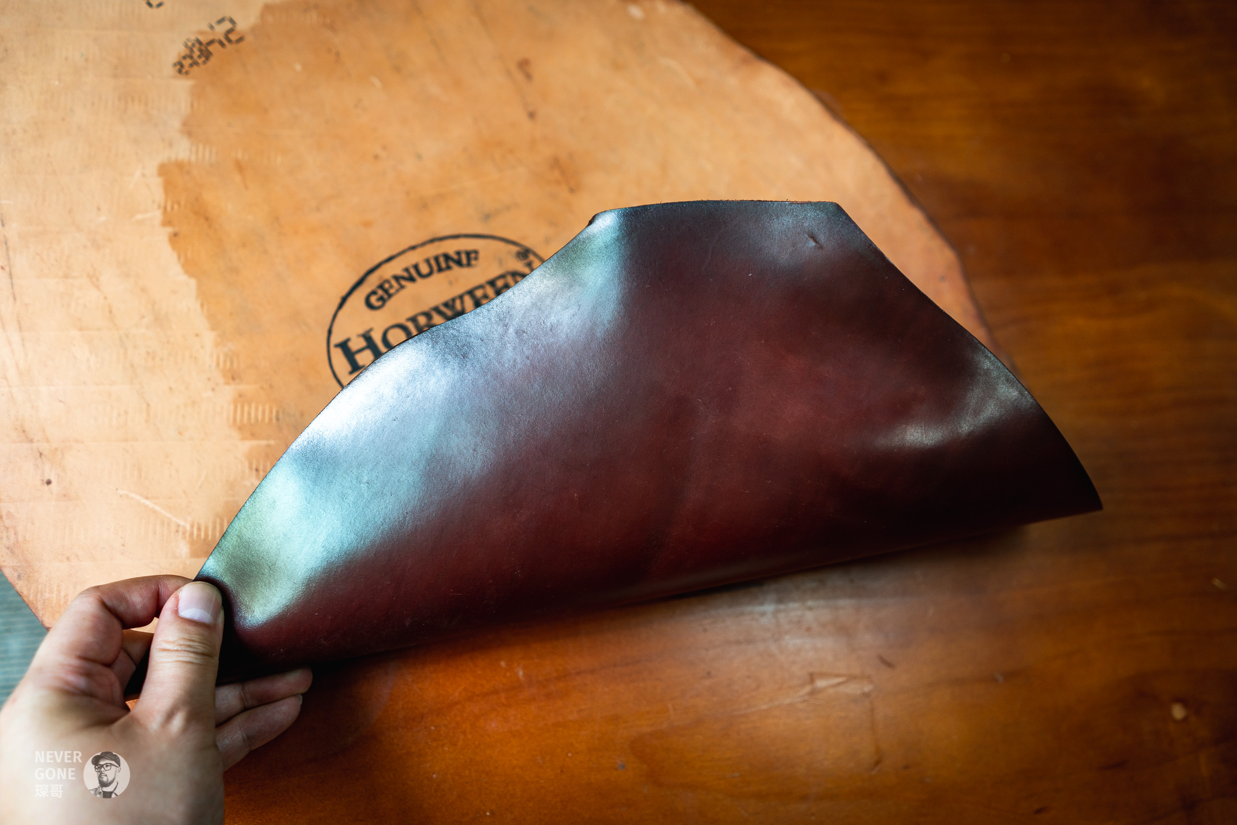 皮料是玛雅原色马臀,然后手工染色成深酒红。拿到手,觉得这个马臀比想象中的好不少,表面平整,没有无镀层马臀的那种毛糙感和浅色斑点。光泽度很高厚度足够,硬挺度与肉感也很强,感觉他们对马臀皮的处理挺在行的,而且还提供终身免费保养服务(每年2次),适合新入坑马臀的玩家