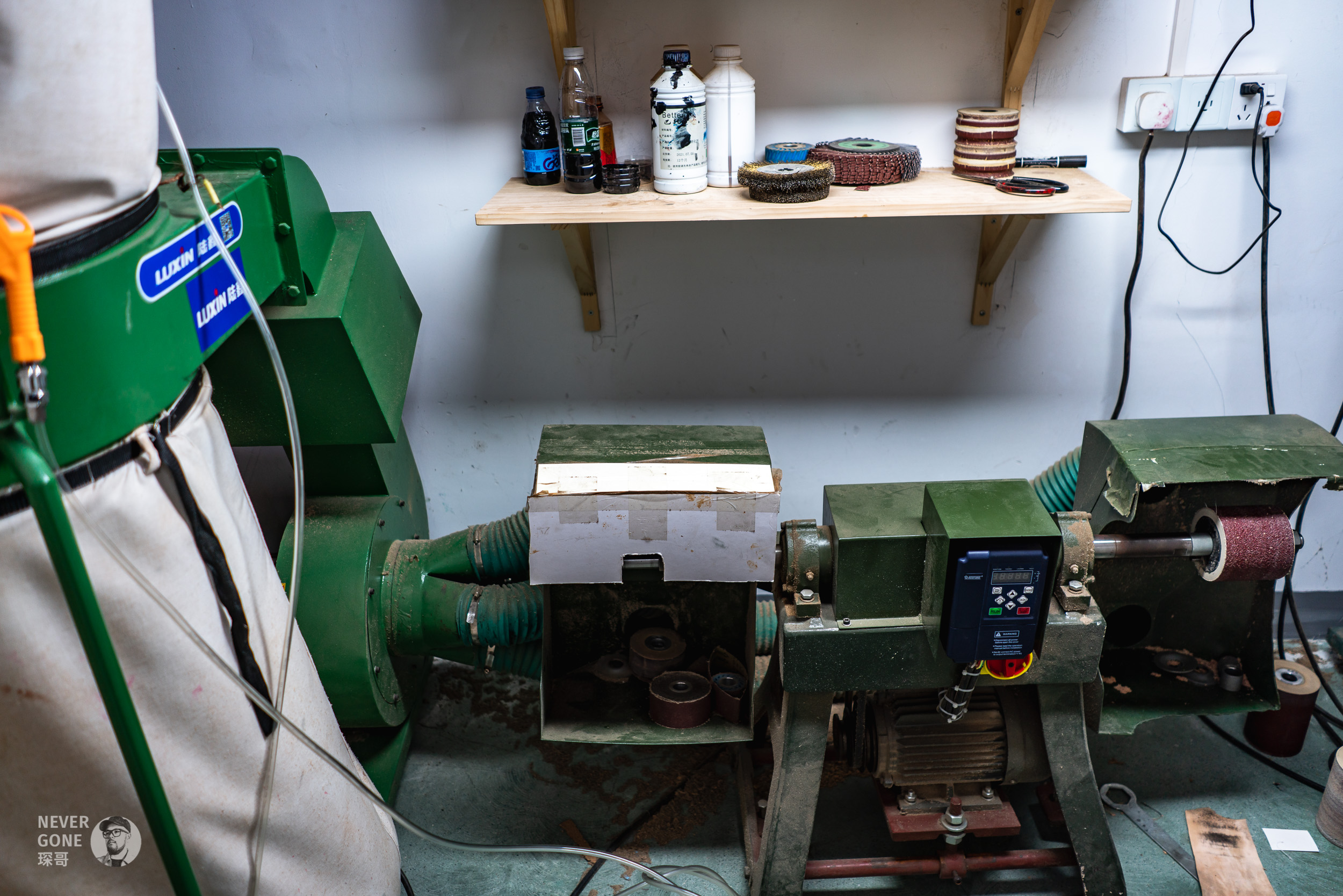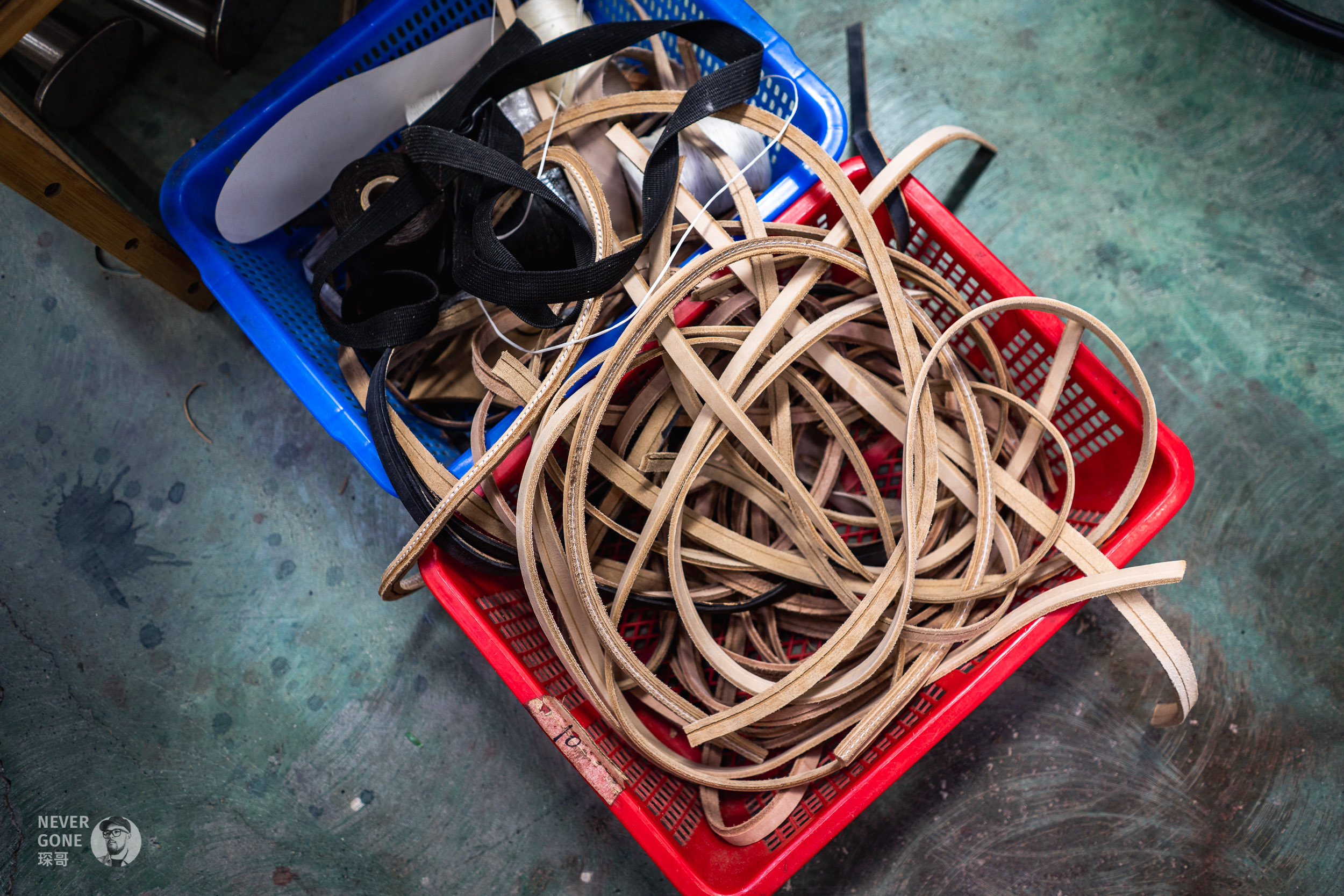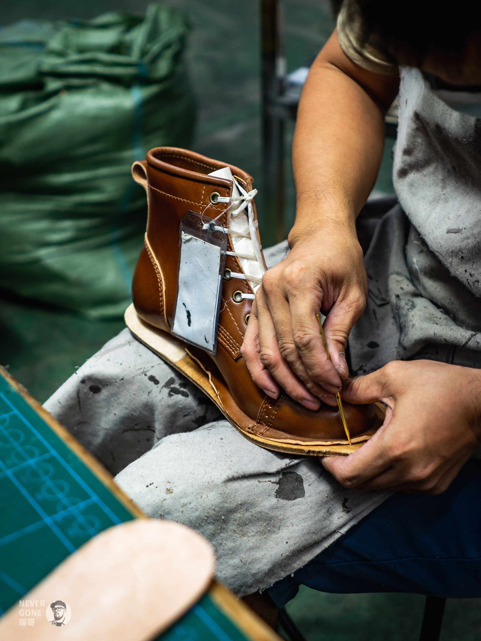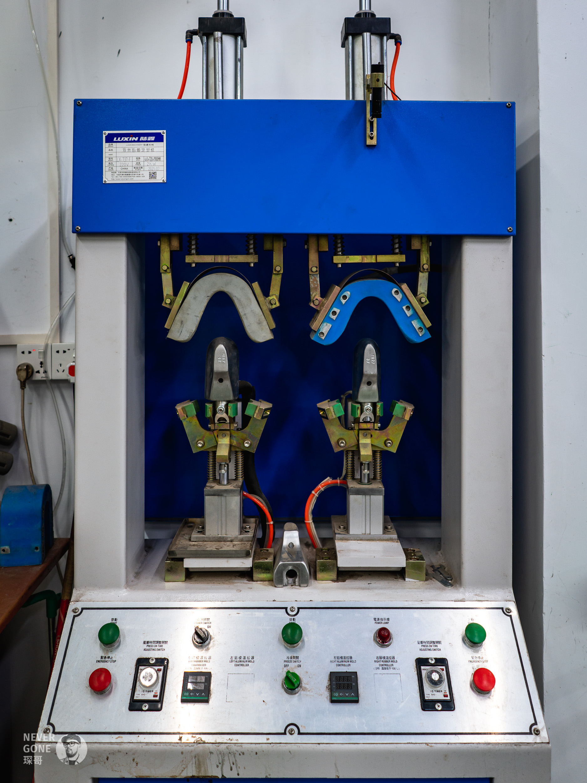 因为全手缝,所以用到的机器很少,就后踵定型机,压机,砂轮机之类的