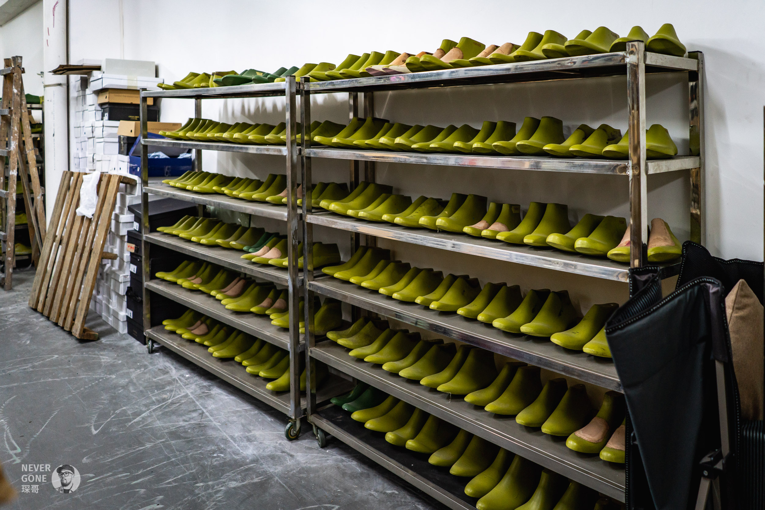 首先来到办公室,这边摆满了鞋。屈老板说自己从2006年就开始做鞋,而且18年了没换过别的行业,过去一直在做皮鞋类外贸出口生意,十几年来做过各种各样的鞋。这几年受到Less is more的影响,再加上环境的变化才开始更加专注做自己的品牌